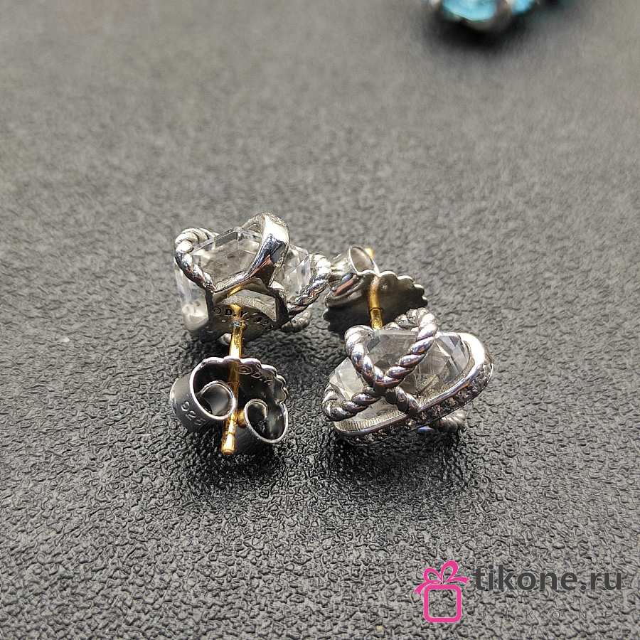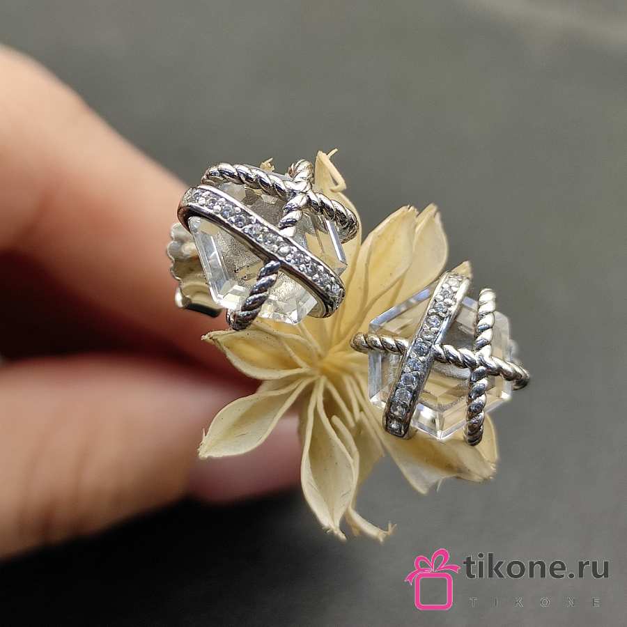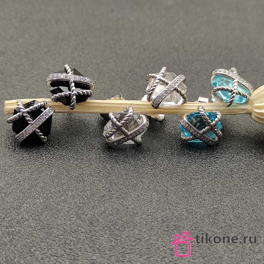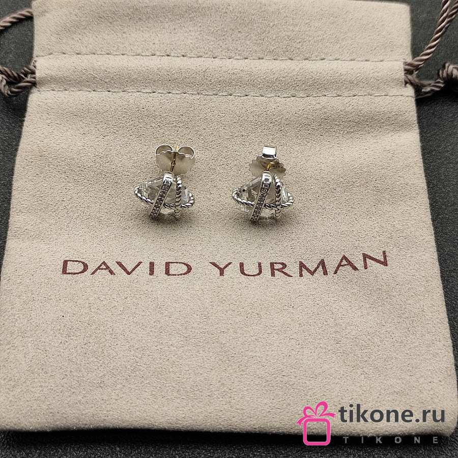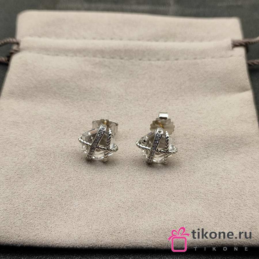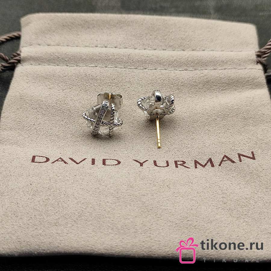 David Yurman Cable Wrap Stud Earrings Sterling Silver with Crystal and Diamonds 11mm