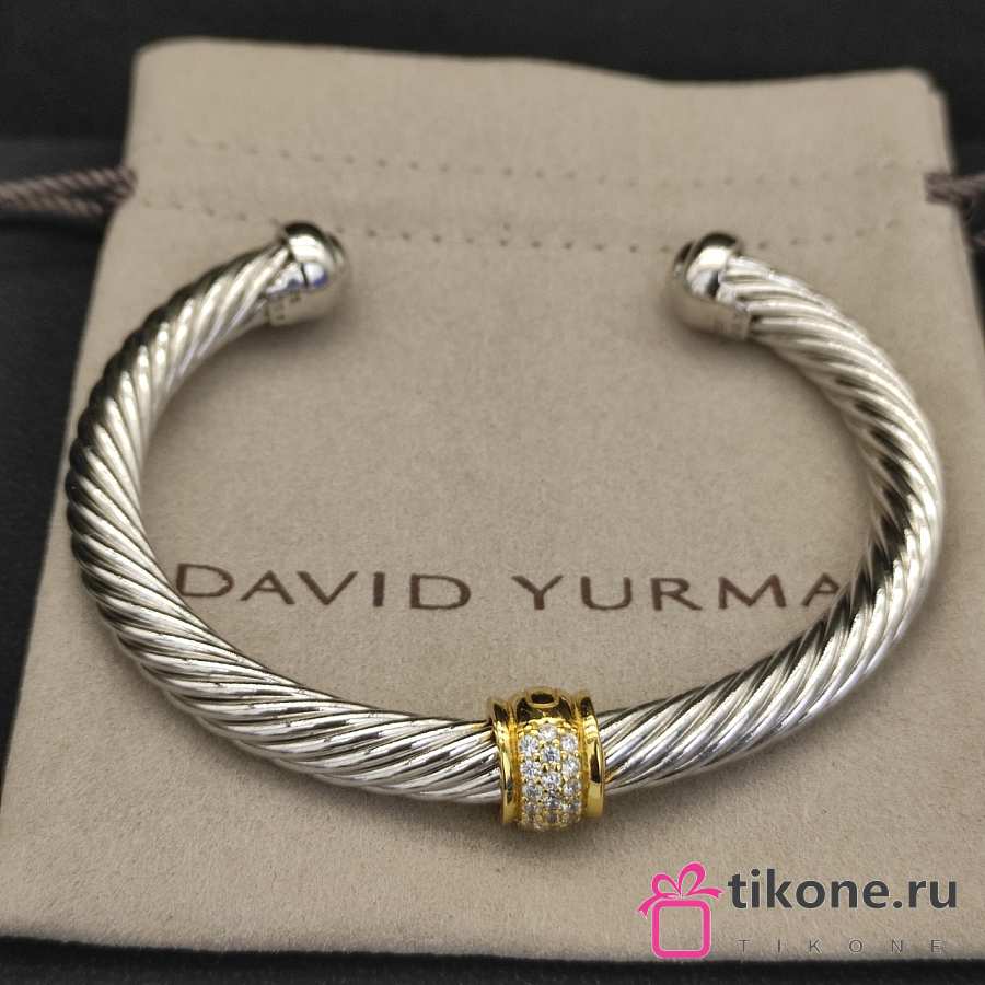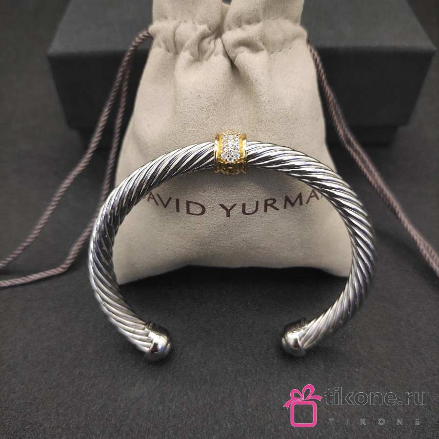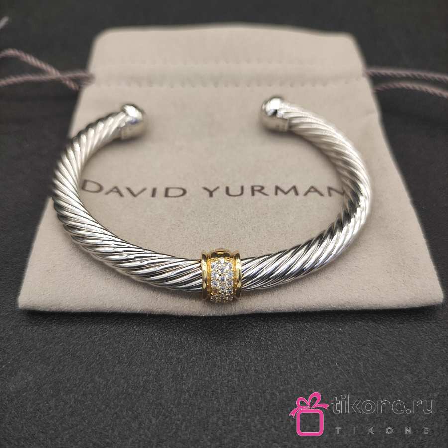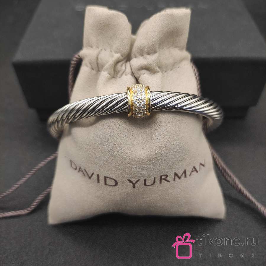 David Yurman Classic Cable Station Bracelet Sterling Silver with 18K Yellow Gold and Pavé Diamonds 7mm