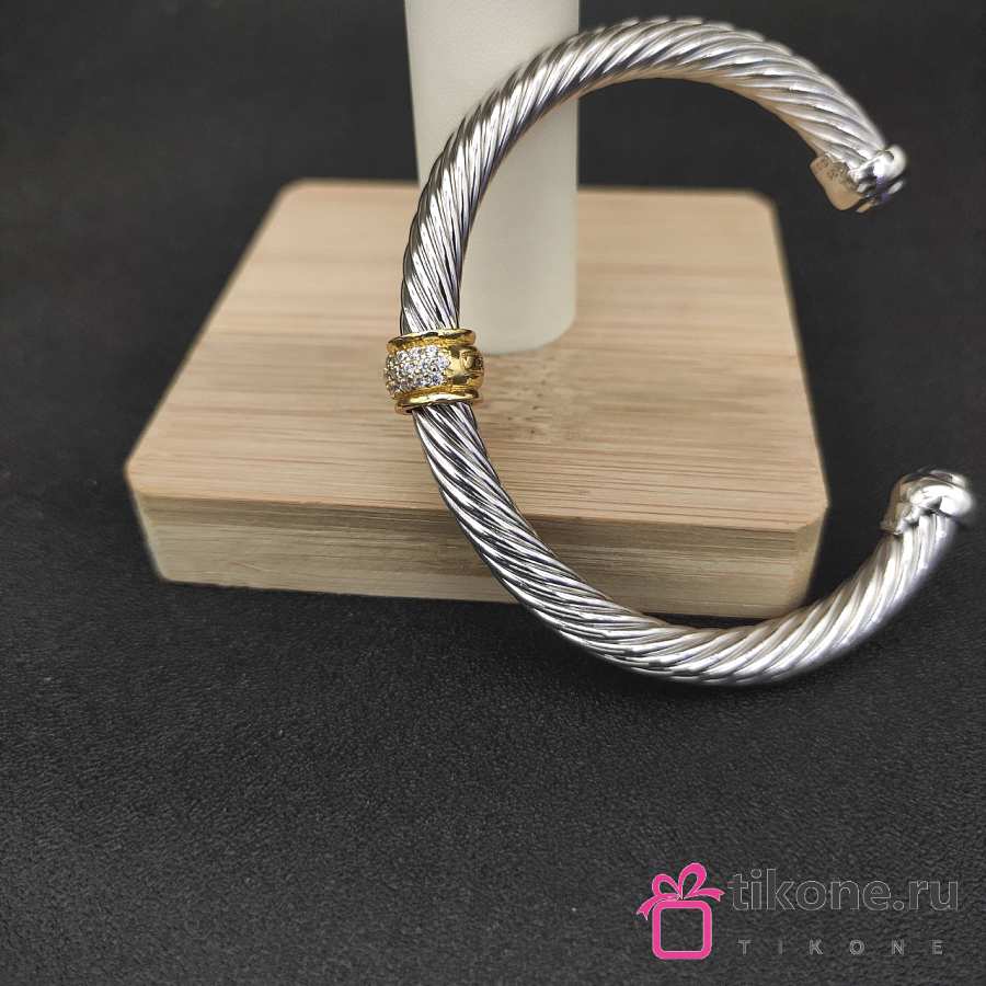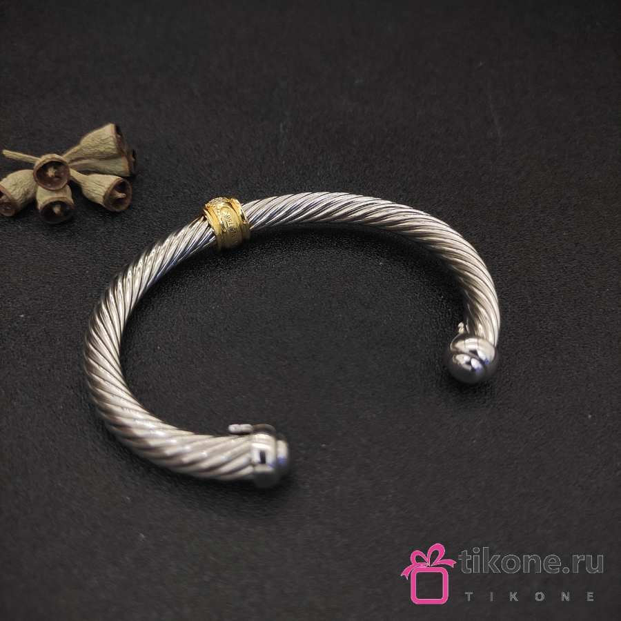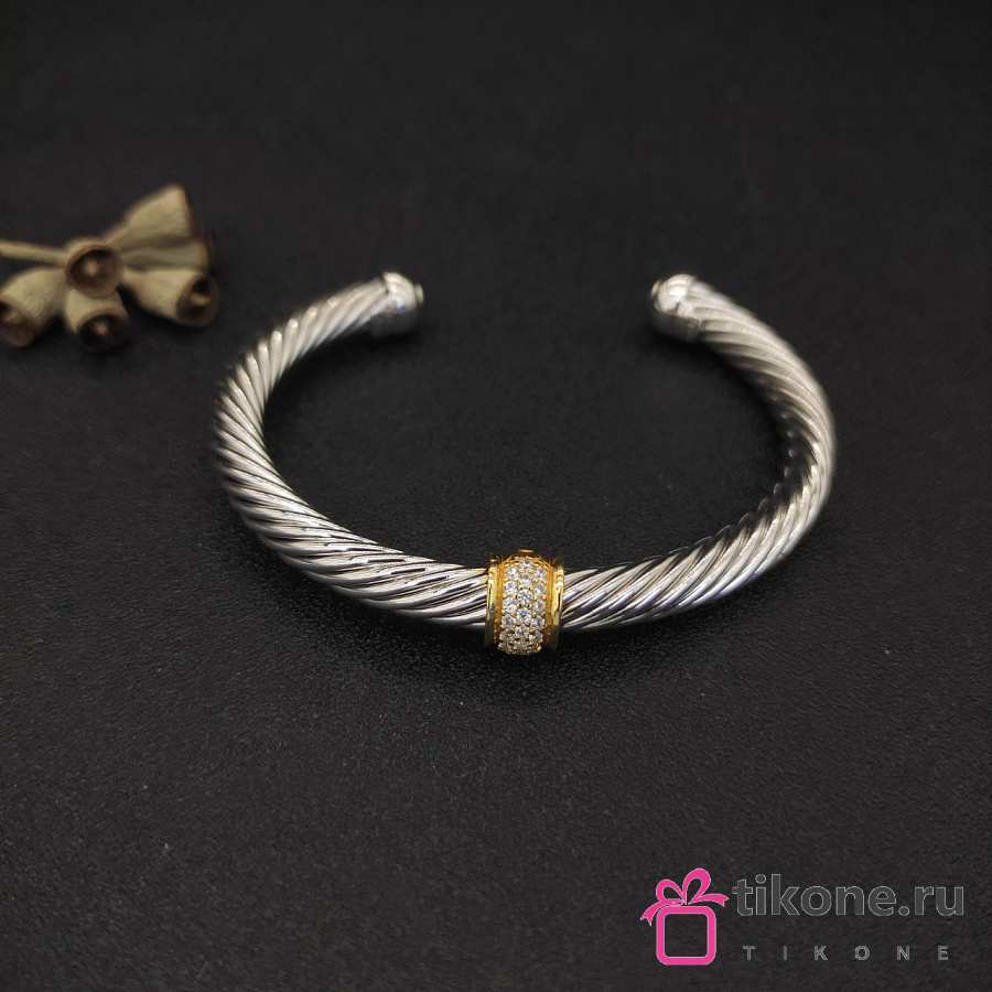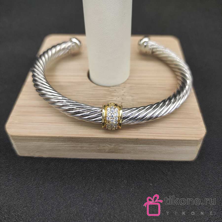 David Yurman Classic Cable Station Bracelet Sterling Silver with 18K Yellow Gold and Pavé Diamonds 7mm