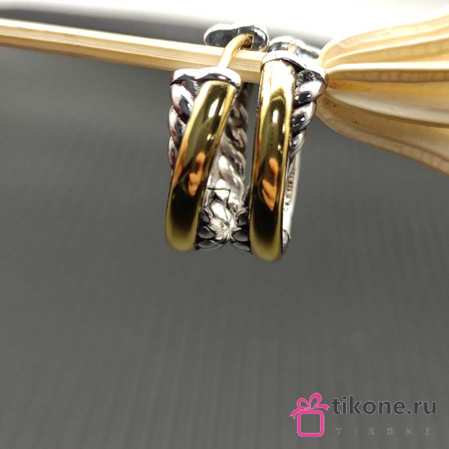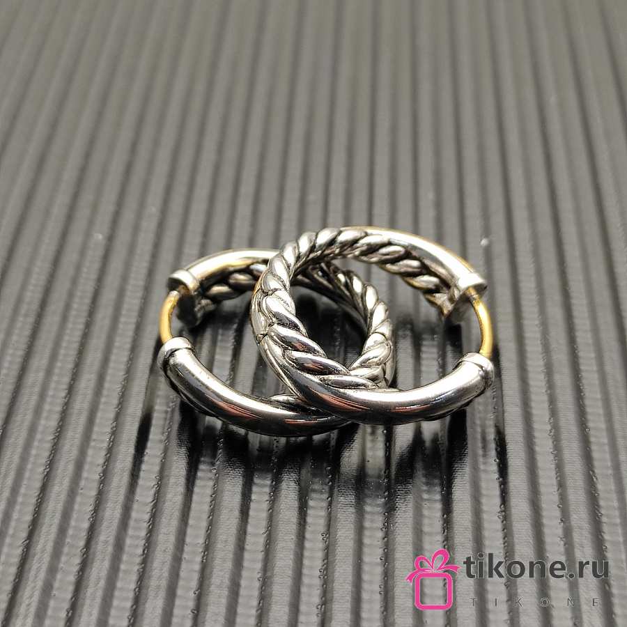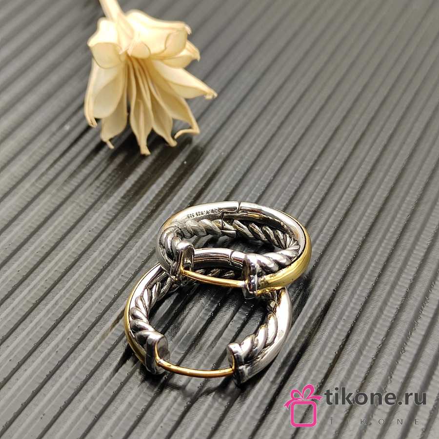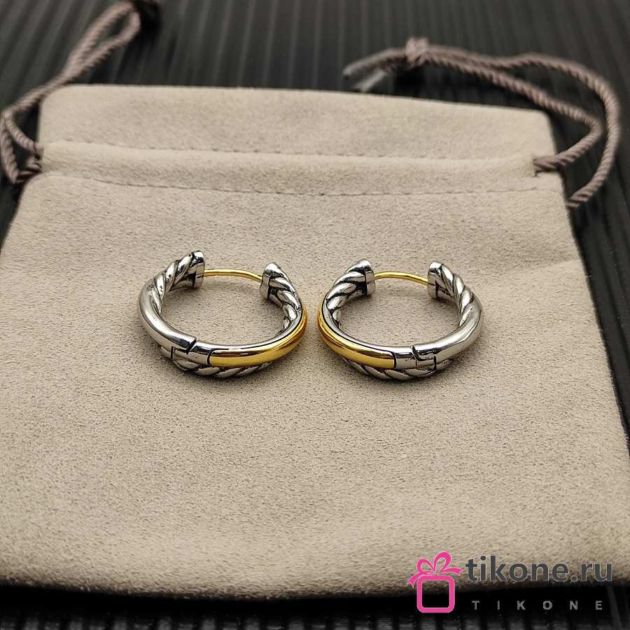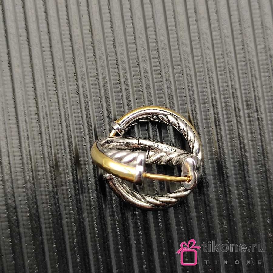 David Yurman Crossover Hoop Earrings Sterling Silver with 14ct Yellow Gold 22.3mm