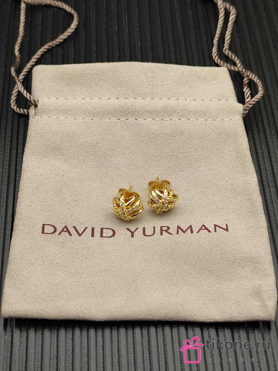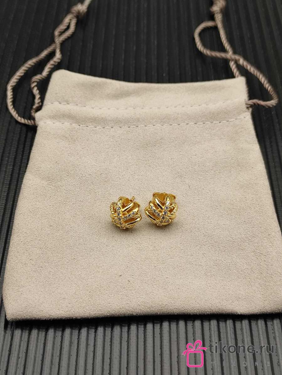 David Yurman Crossover Stud Earrings 18K Yellow Gold with Diamonds 11mm
