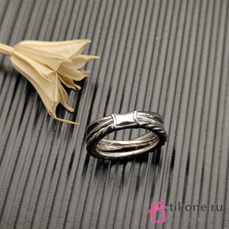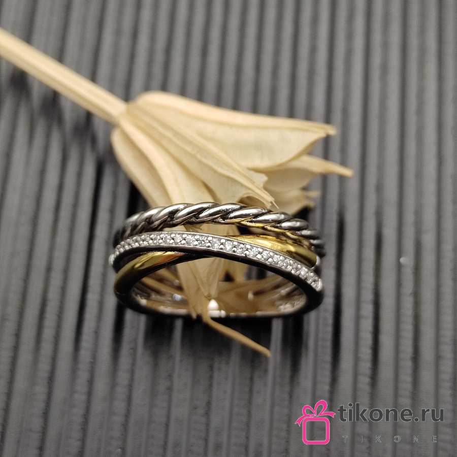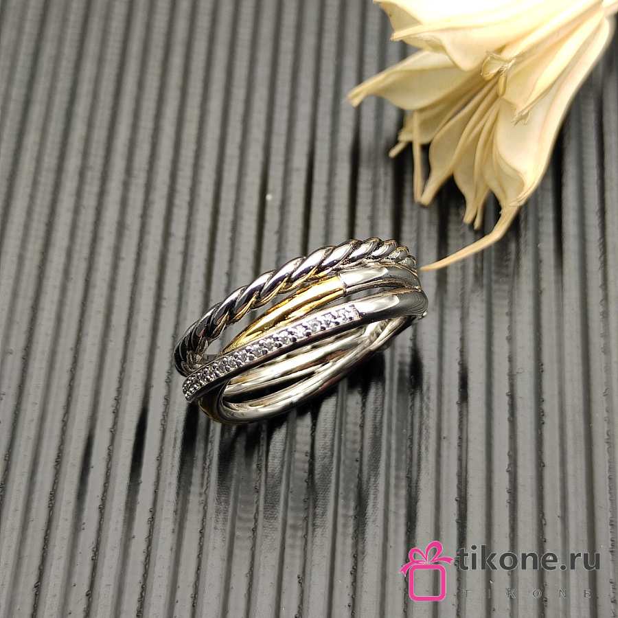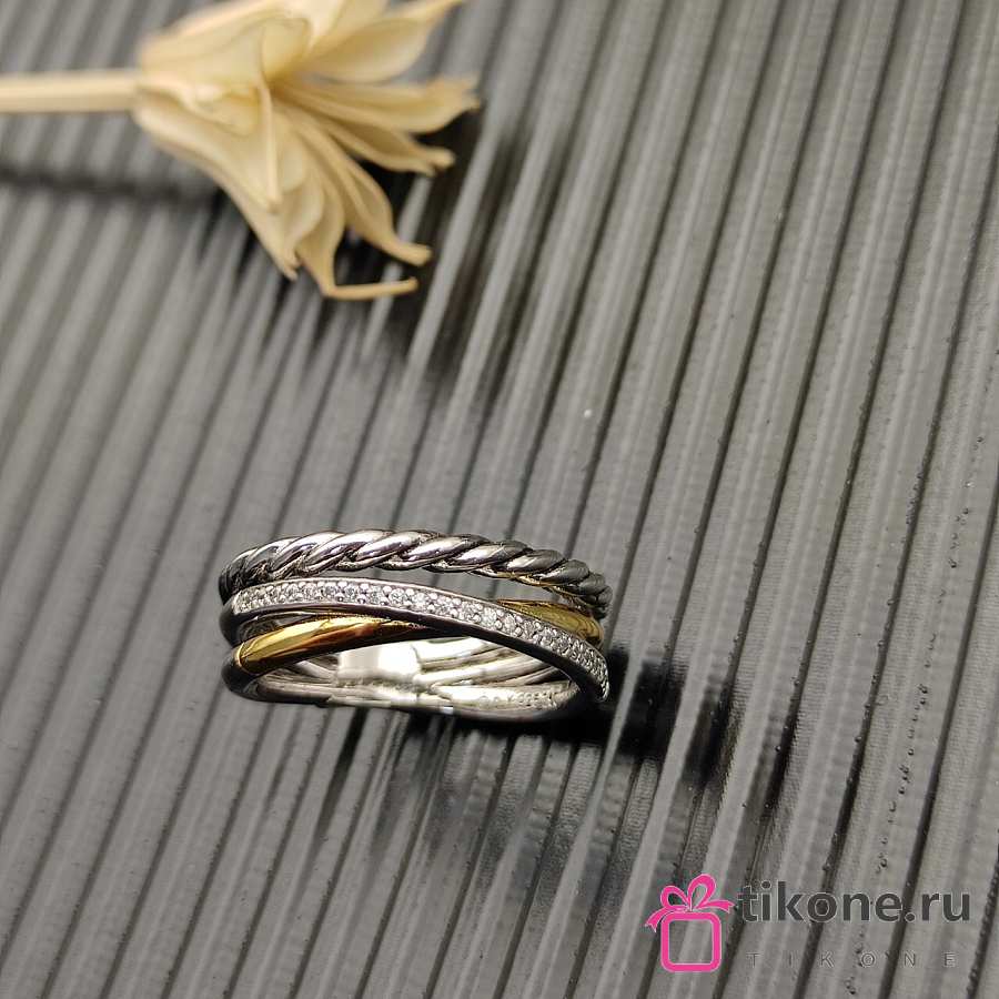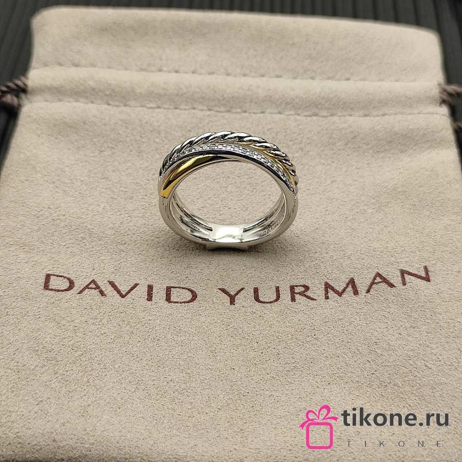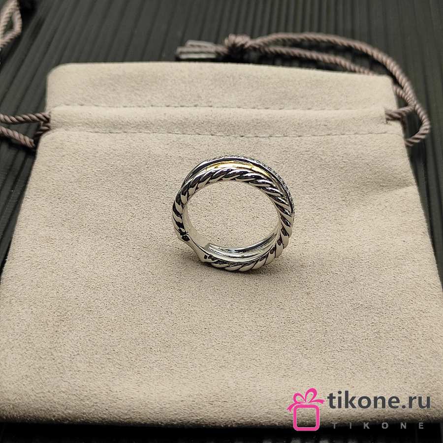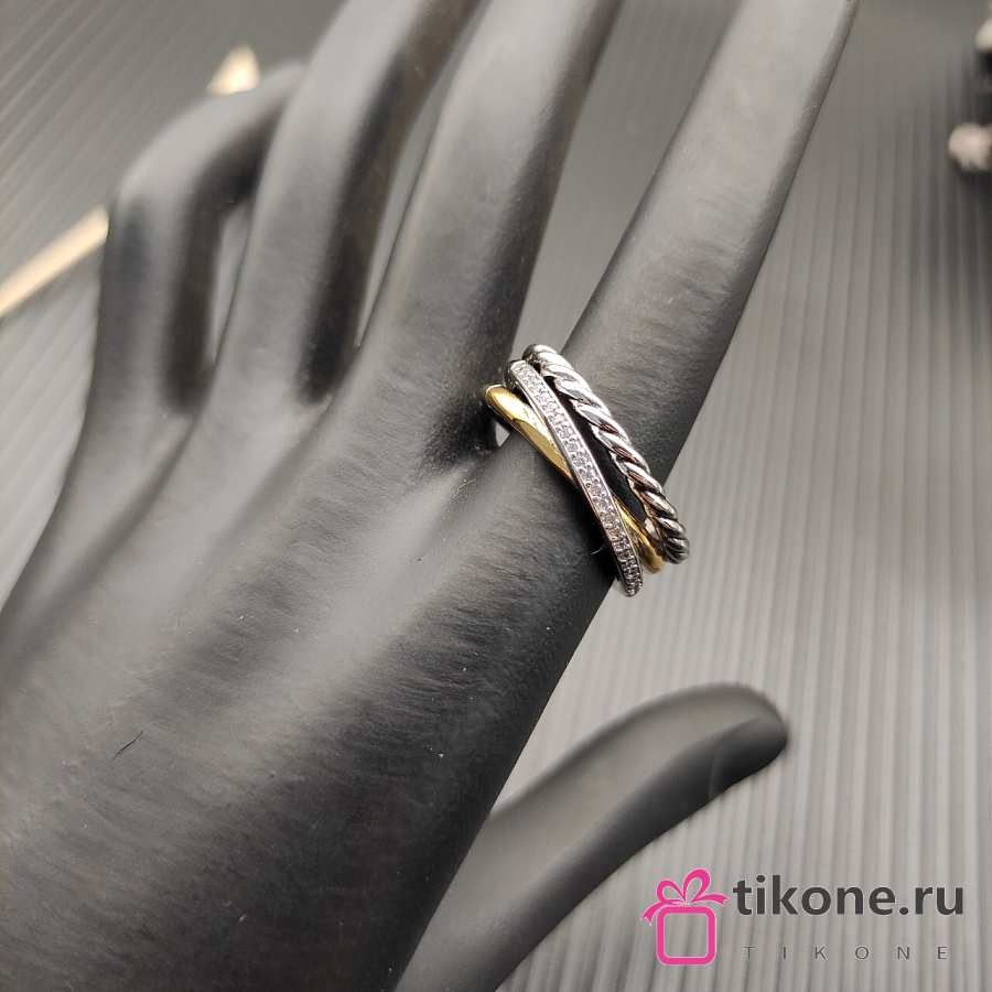 David Yurman Crossover Three Row Ring Sterling Silver with 18K Yellow Gold and Diamond 7mm