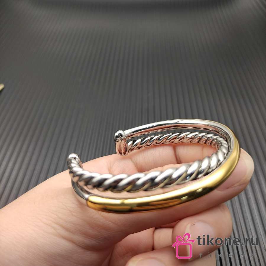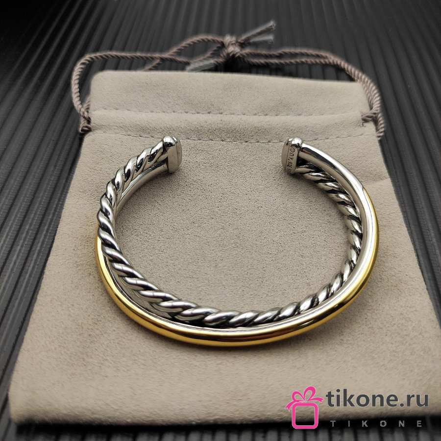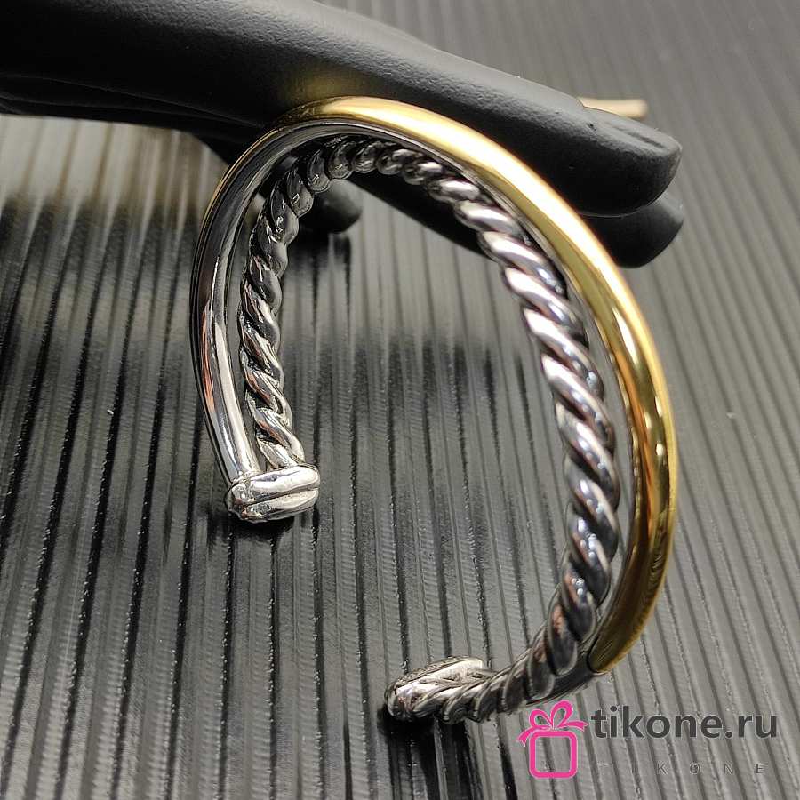 David Yurman Crossover Two Row Cuff Bracelet Sterling Silver with 14K Yellow Gold 10.7mm