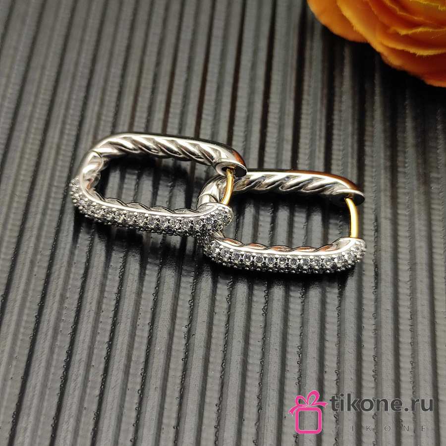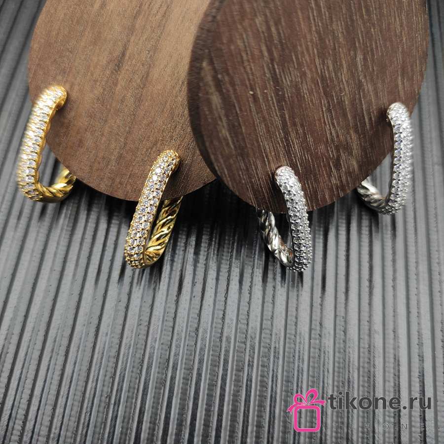 David Yurman DY Madison Smooth Hoop Earrings in 18K Yellow/ White Gold with Diamonds 24.3mm