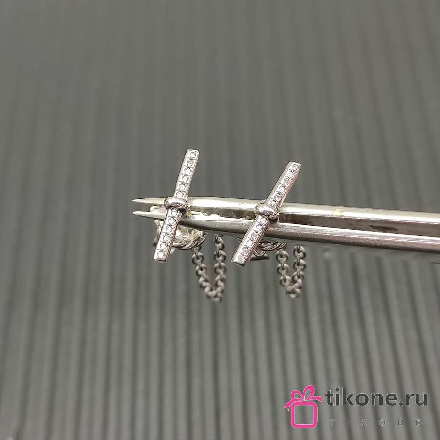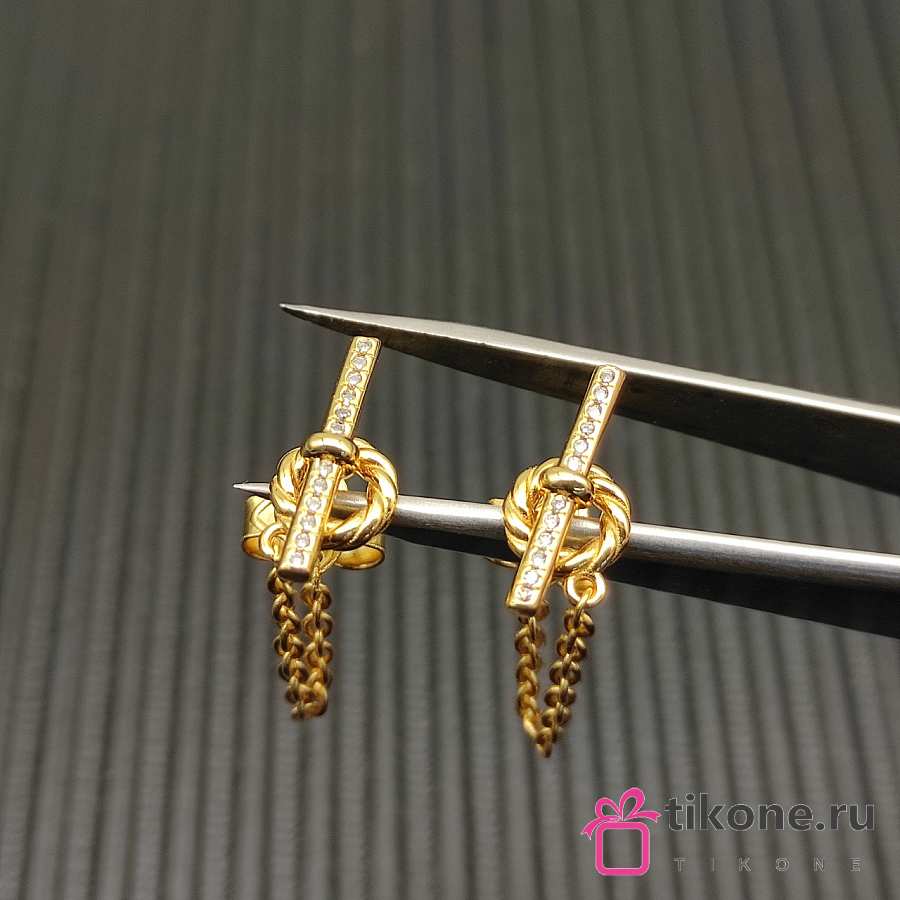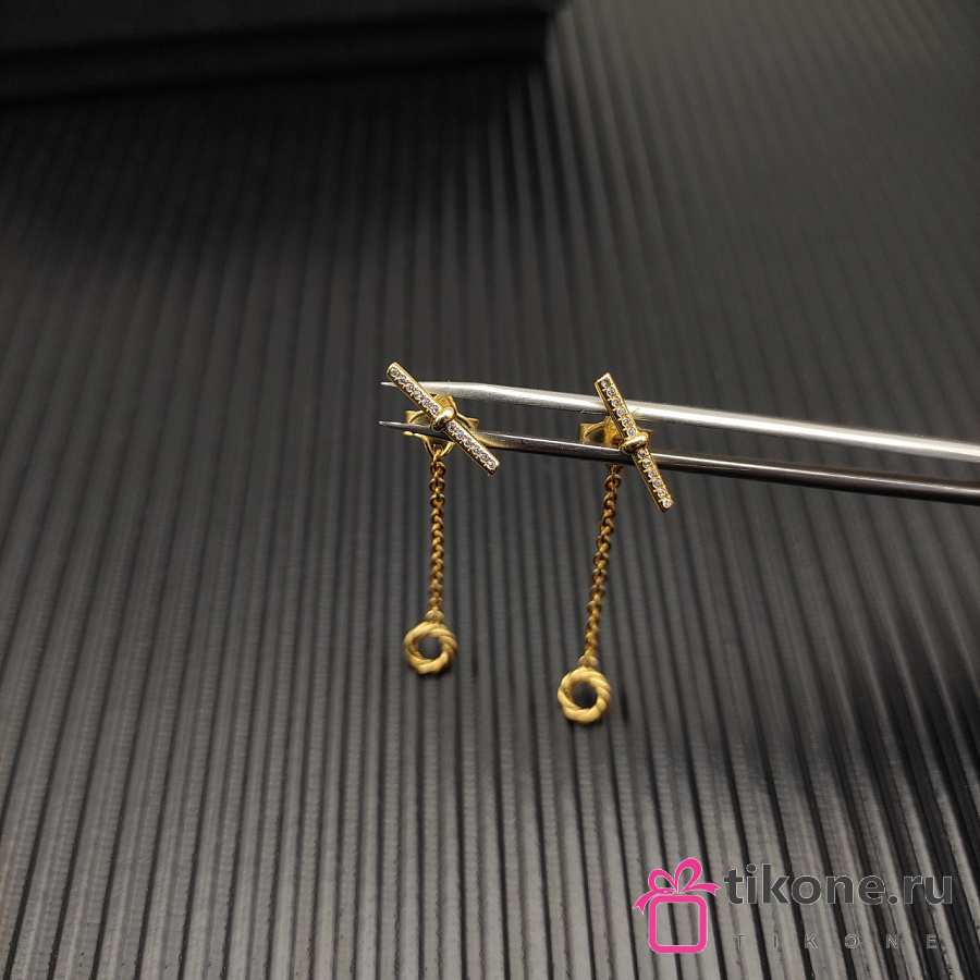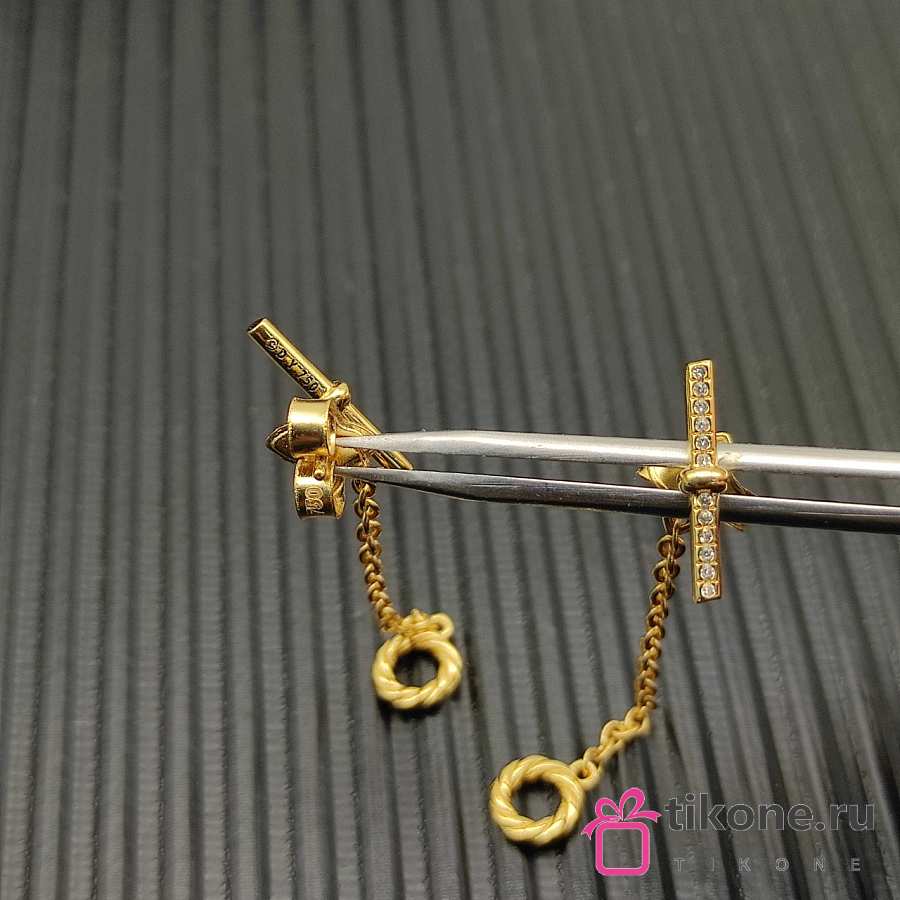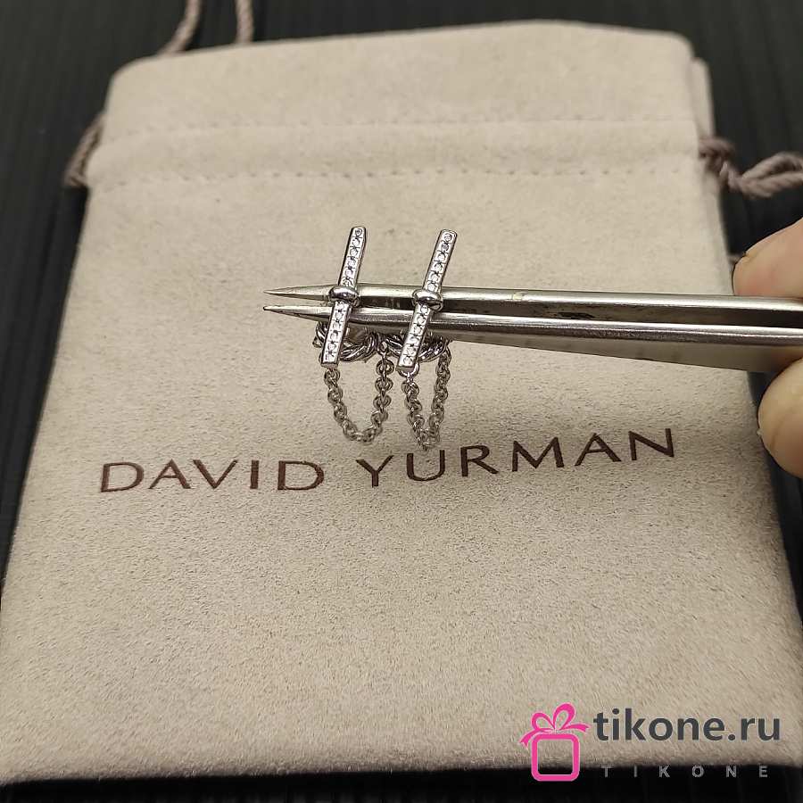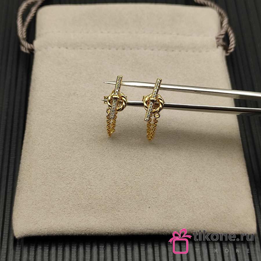 David Yurman DY Mercer Petite Toggle Chain Stud Earrings 18K Yellow/ White Gold with Diamonds 38.2mm