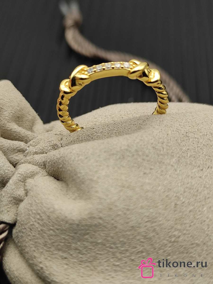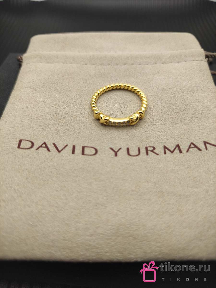 David Yurman Petite Helena Wrap Band Ring 18K Yellow Gold with Diamonds 4mm