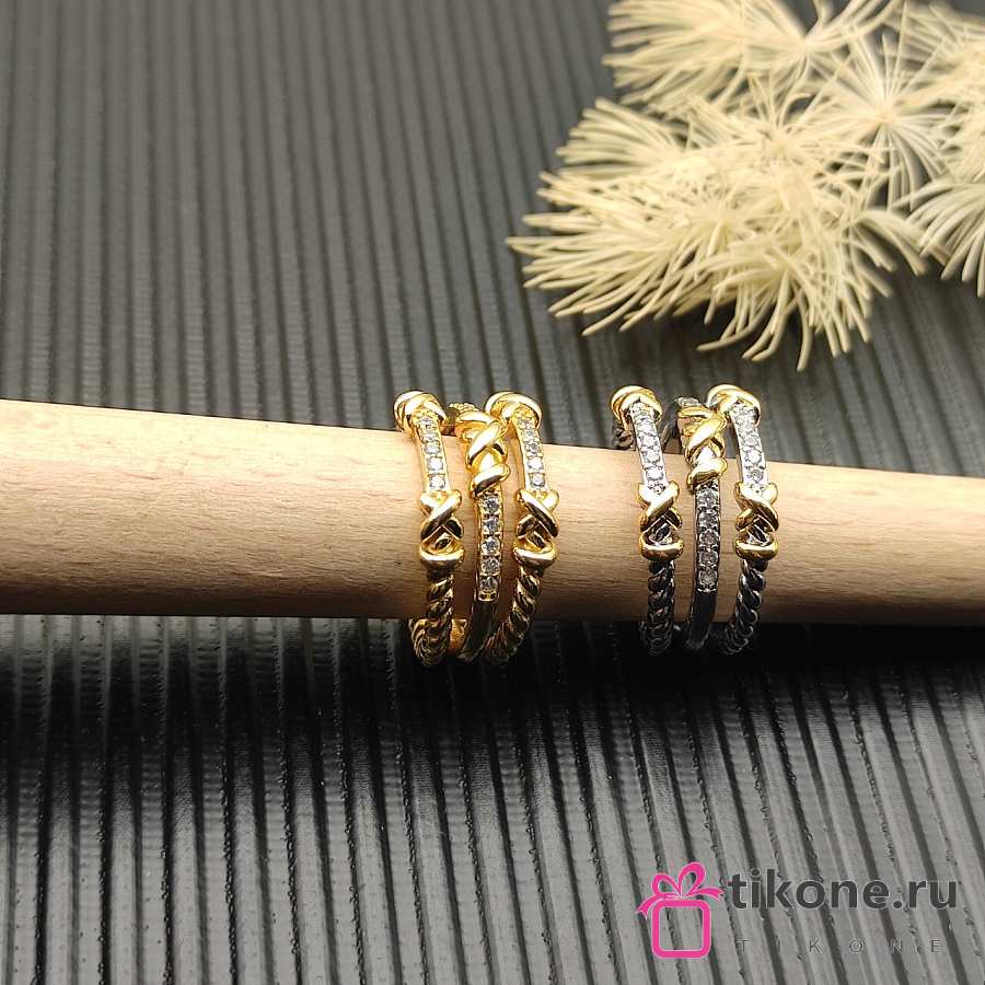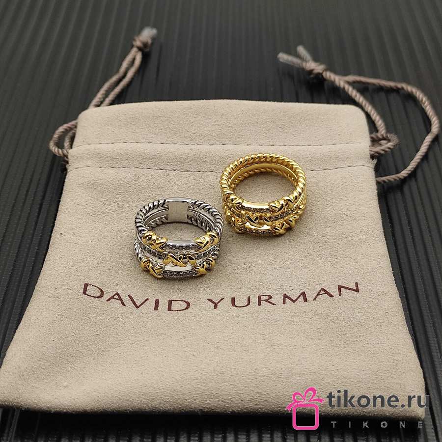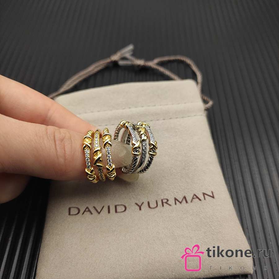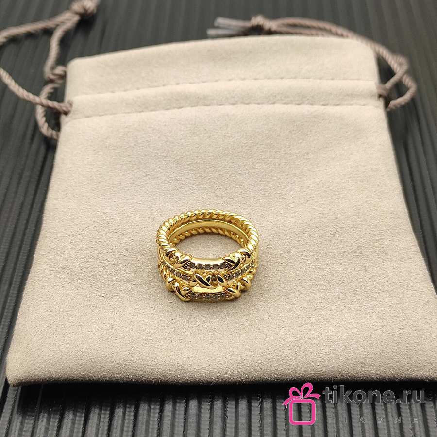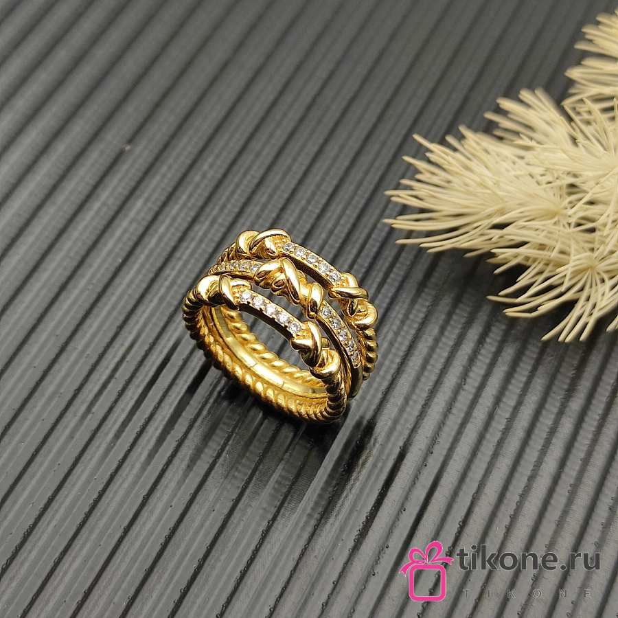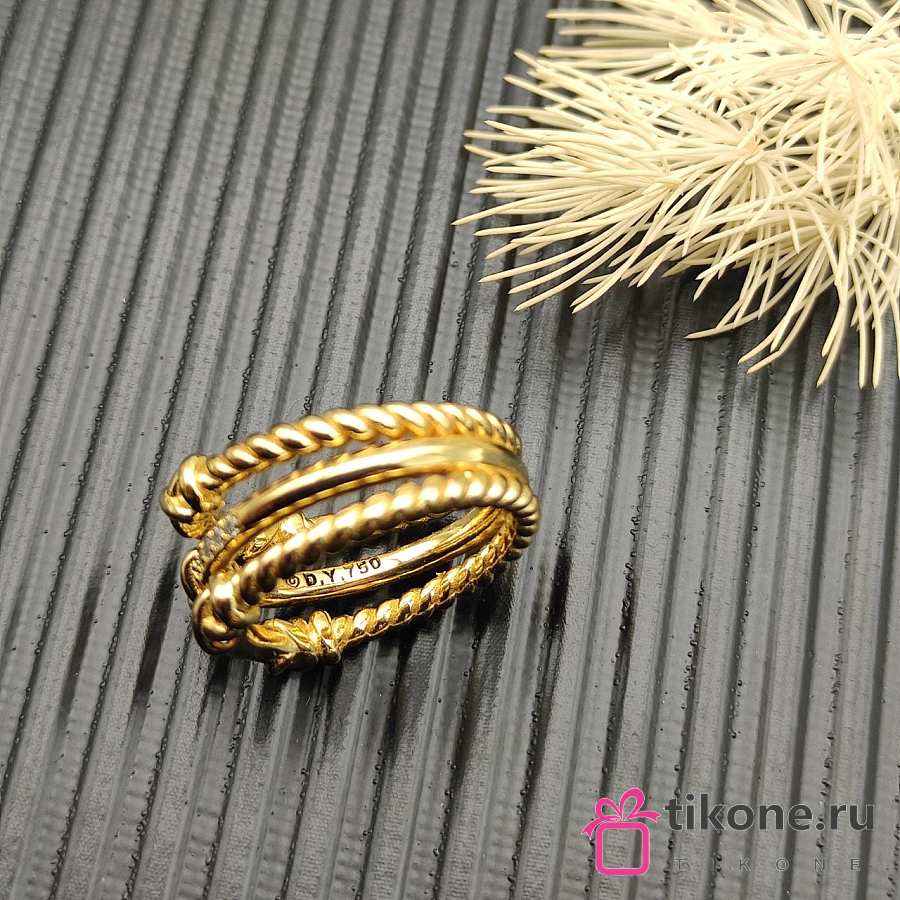 David Yurman Petite Helena Wrap Three Row Ring 18k Yellow Gold With Diamonds 12mm