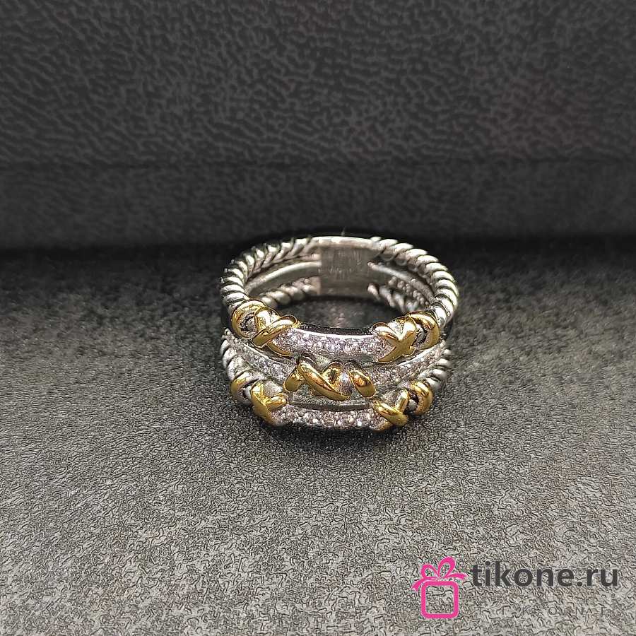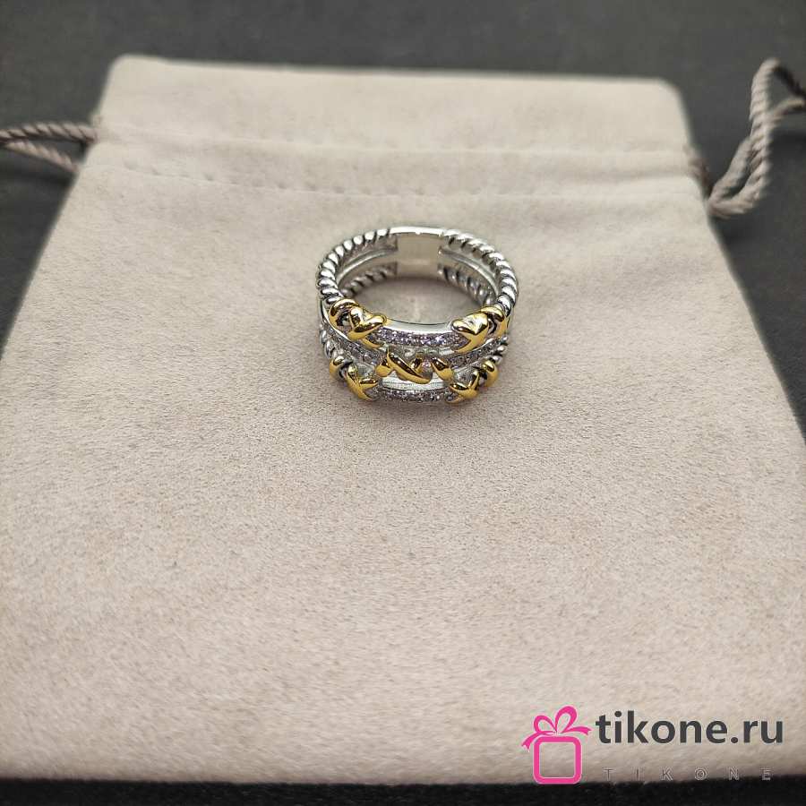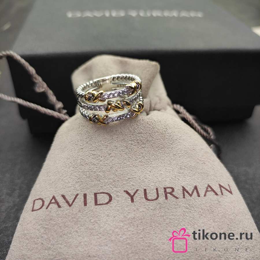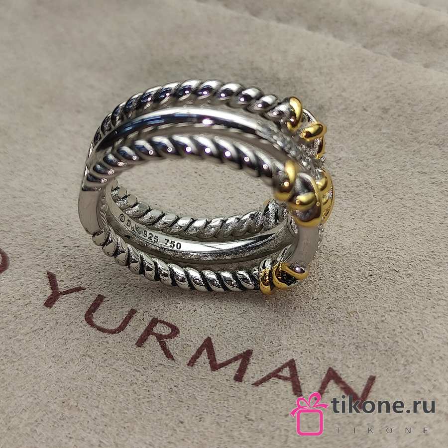 David Yurman Petite Helena Wrap Three Row Ring Sterling Silver With 18k Yellow Gold And Diamonds 12mm