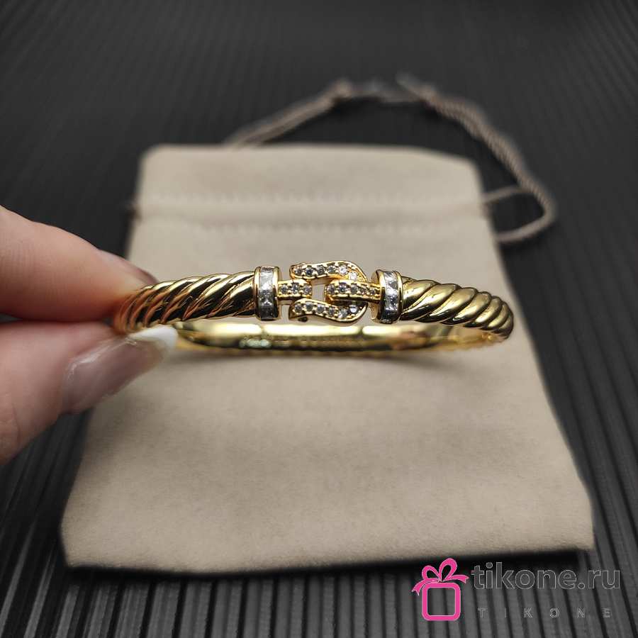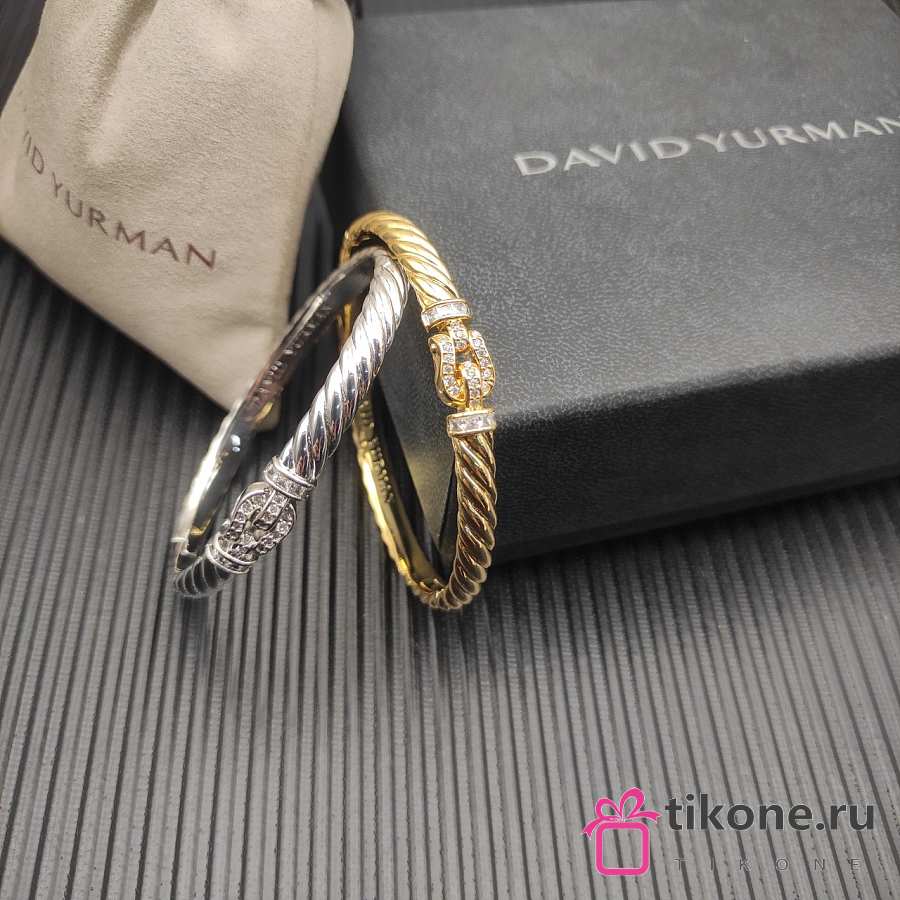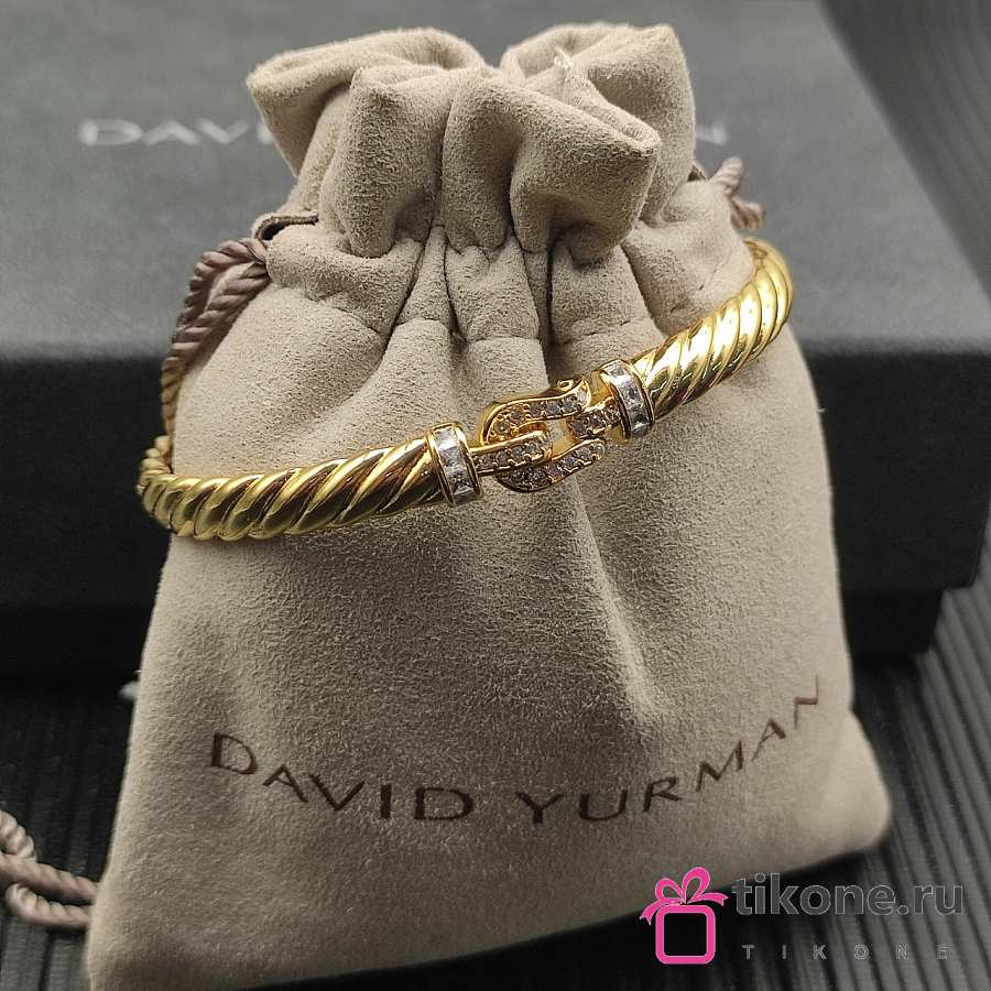 David Yurman Sculpted Cable Buckle Bracelet 18K Yellow/ White Gold with Diamonds 6.2mm