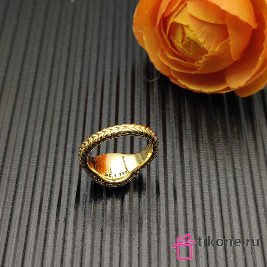 David Yurman Sculpted Cable Pinky Ring 18K Yellow Gold with Diamonds 13mm