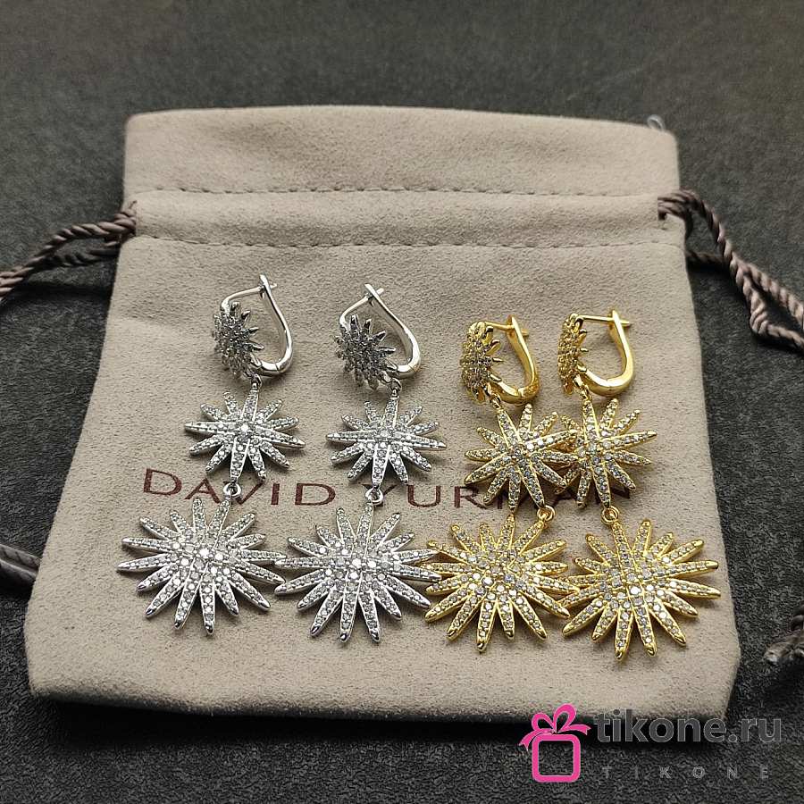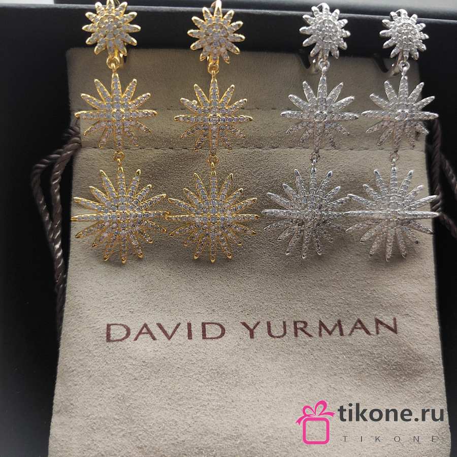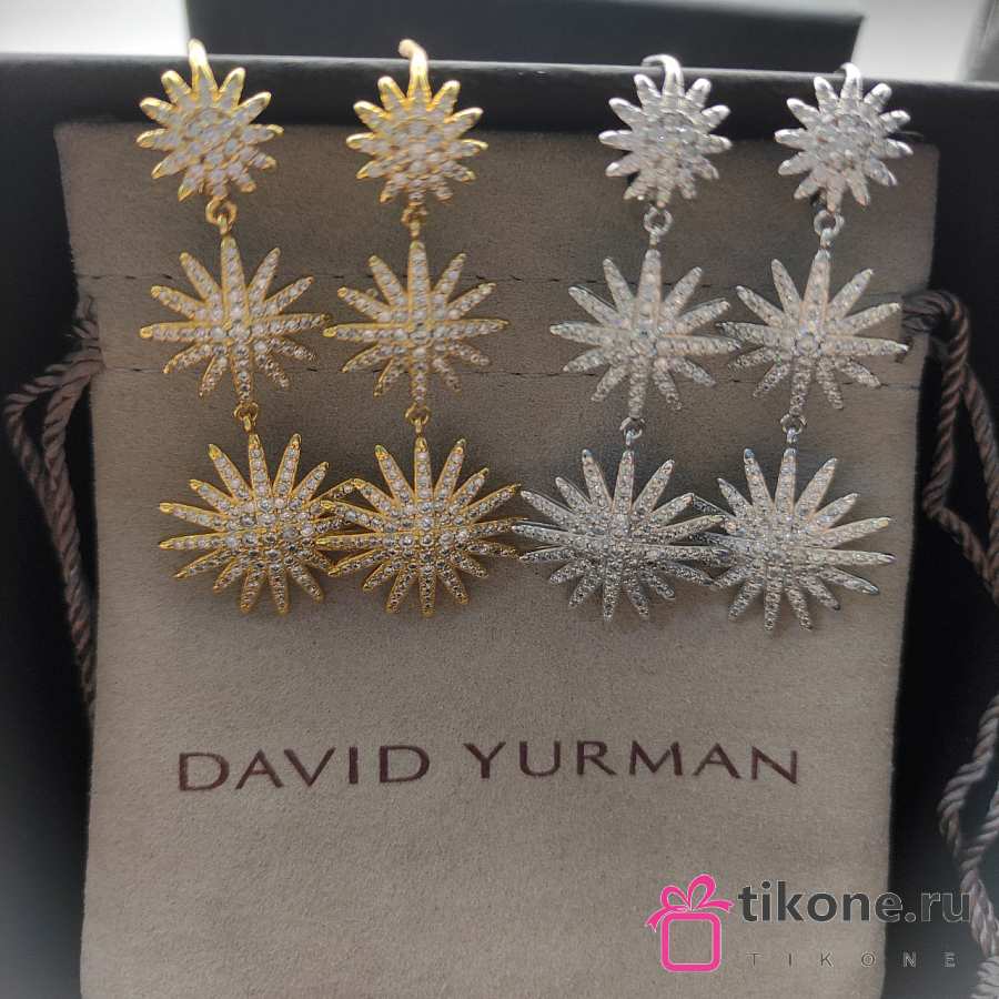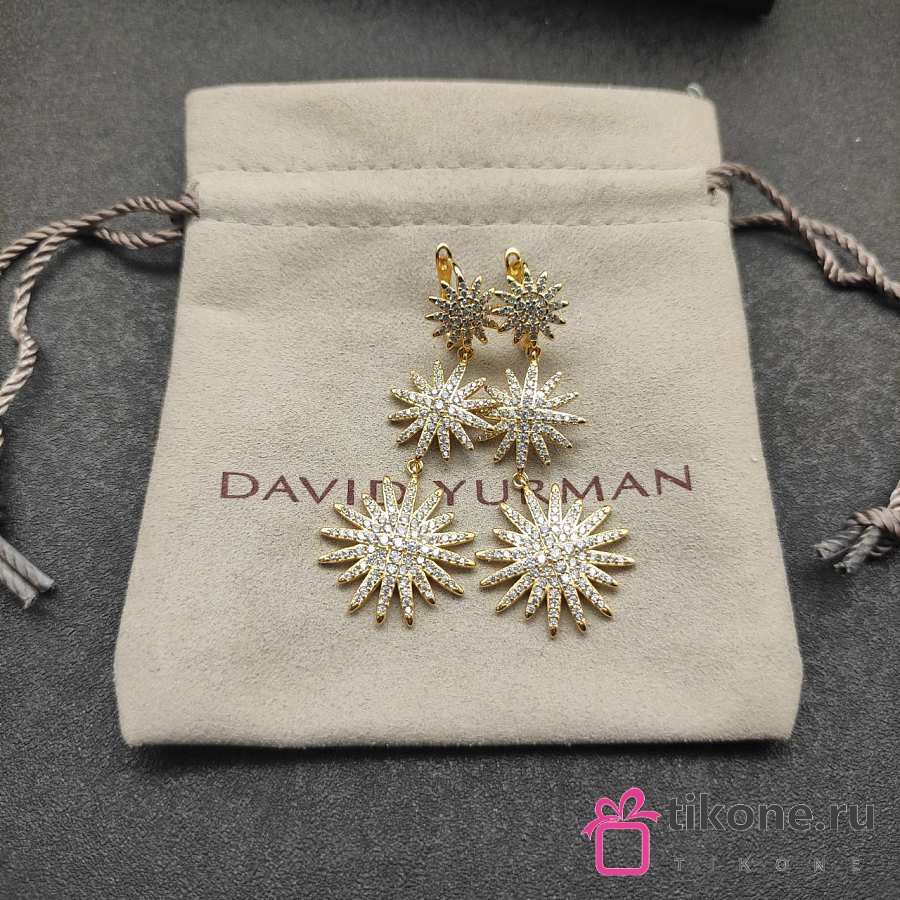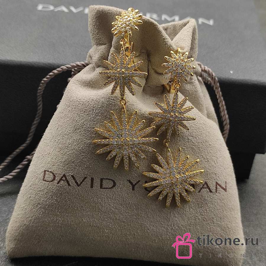 David Yurman Starburst Triple Drop Earrings 18K Yellow/ White Gold with Diamonds 51mm