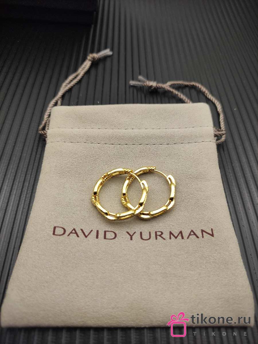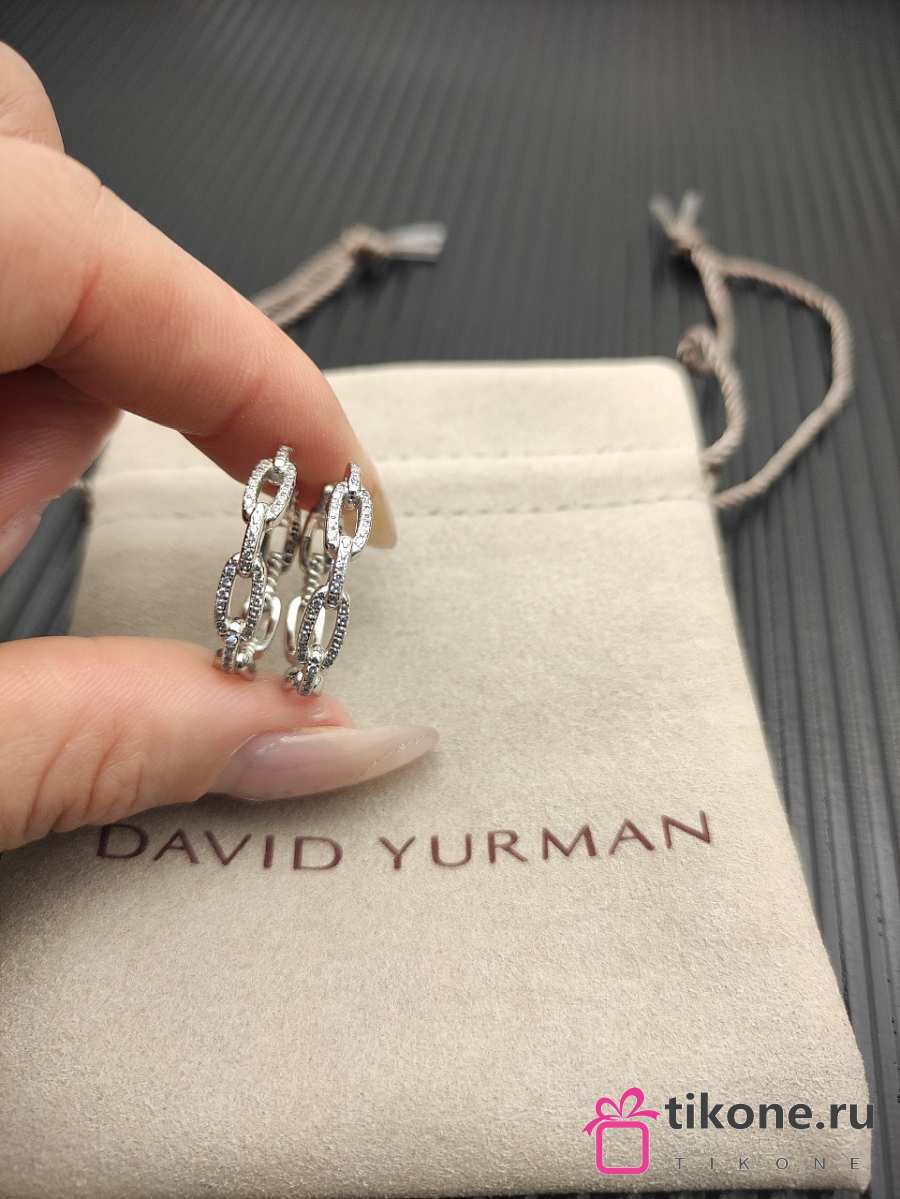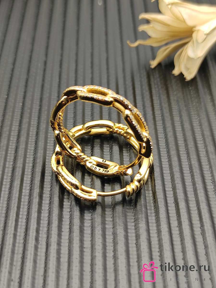 David Yurman Stax Chain Link Huggie Hoop Earrings 18K Yellow/ White Gold with Diamonds 12.5mm