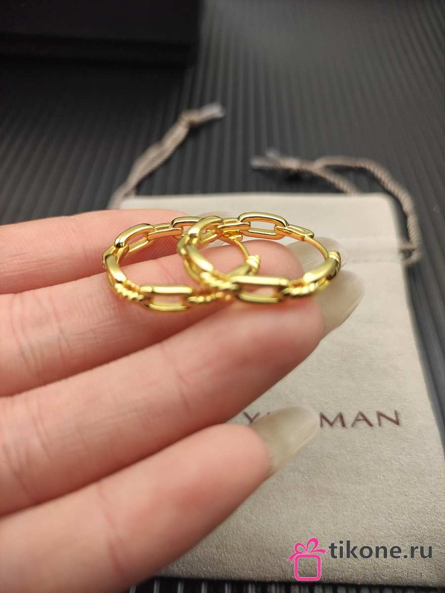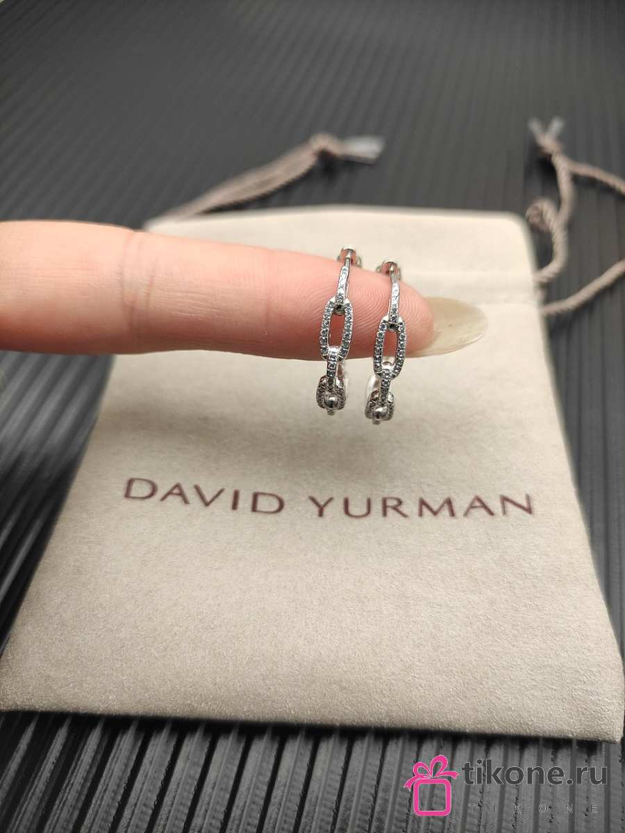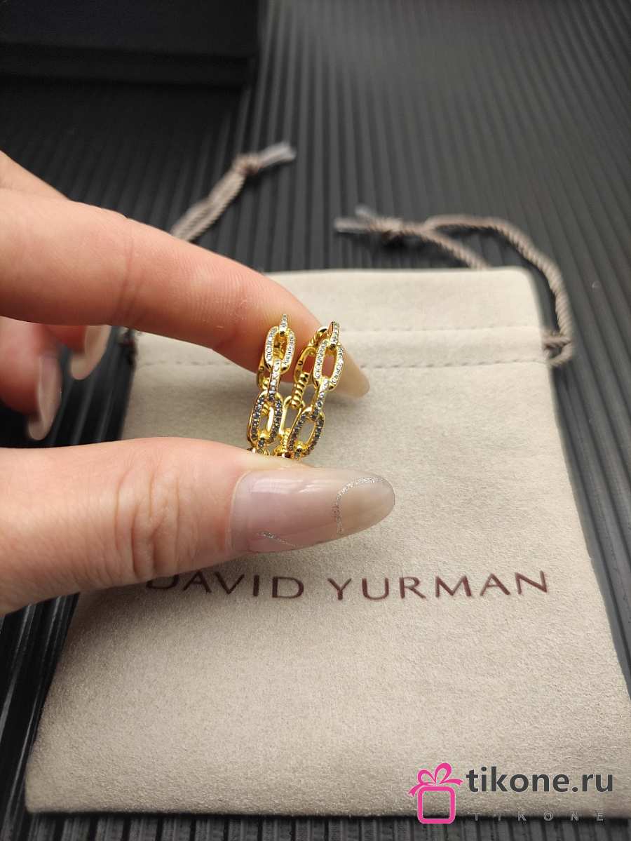 David Yurman Stax Chain Link Huggie Hoop Earrings 18K Yellow/ White Gold with Diamonds 12.5mm