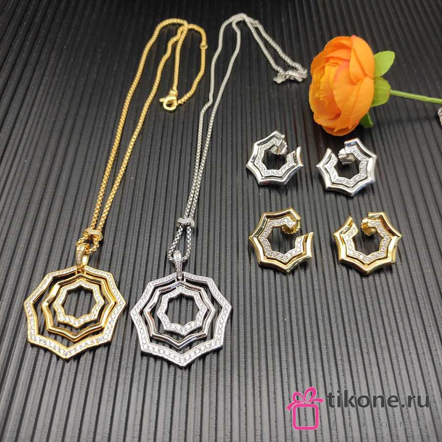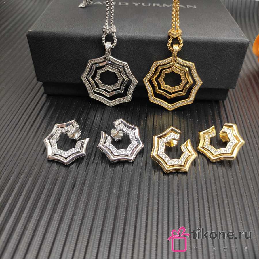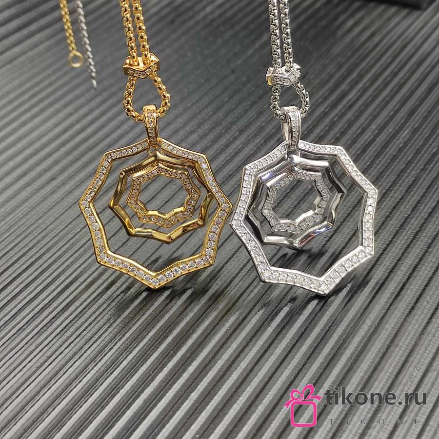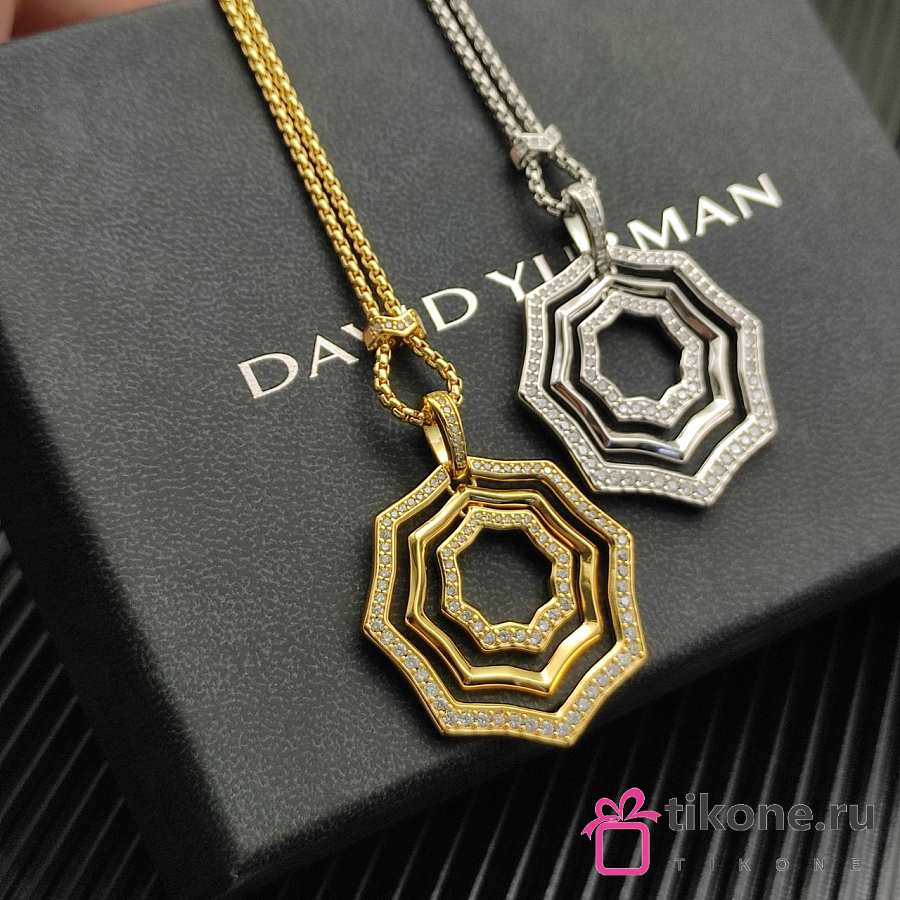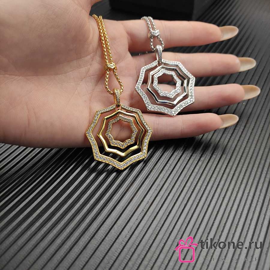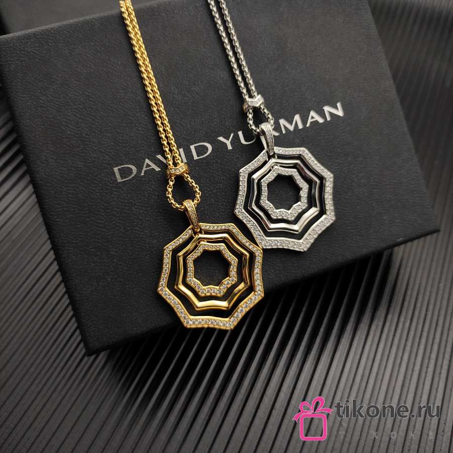 David Yurman Zig Zag Stax Pendant Necklace Yellow/ White Gold with Diamonds 28mm