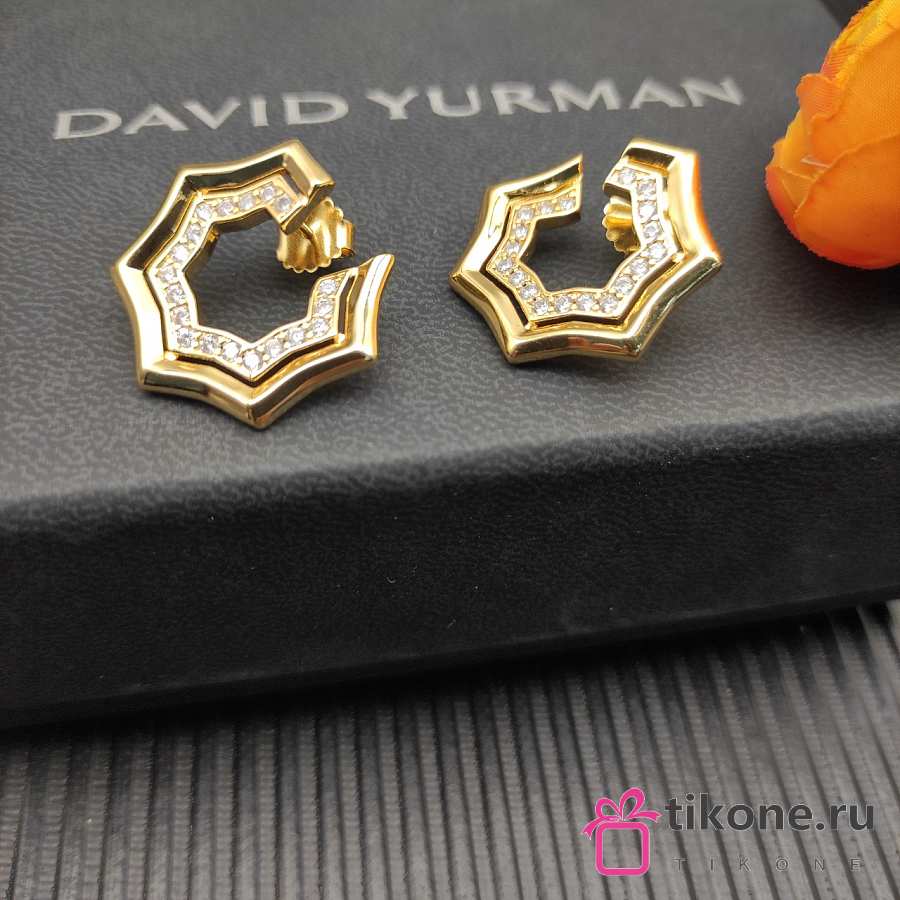 David Yurman Zig Zag Stax Two Row Hoop Earrings Yellow/ White Gold with Diamonds 27mm