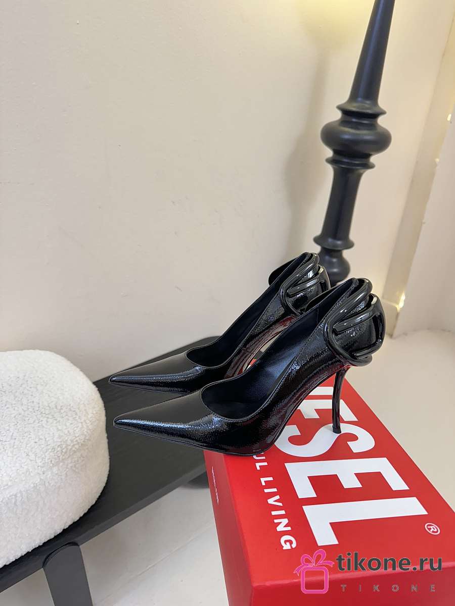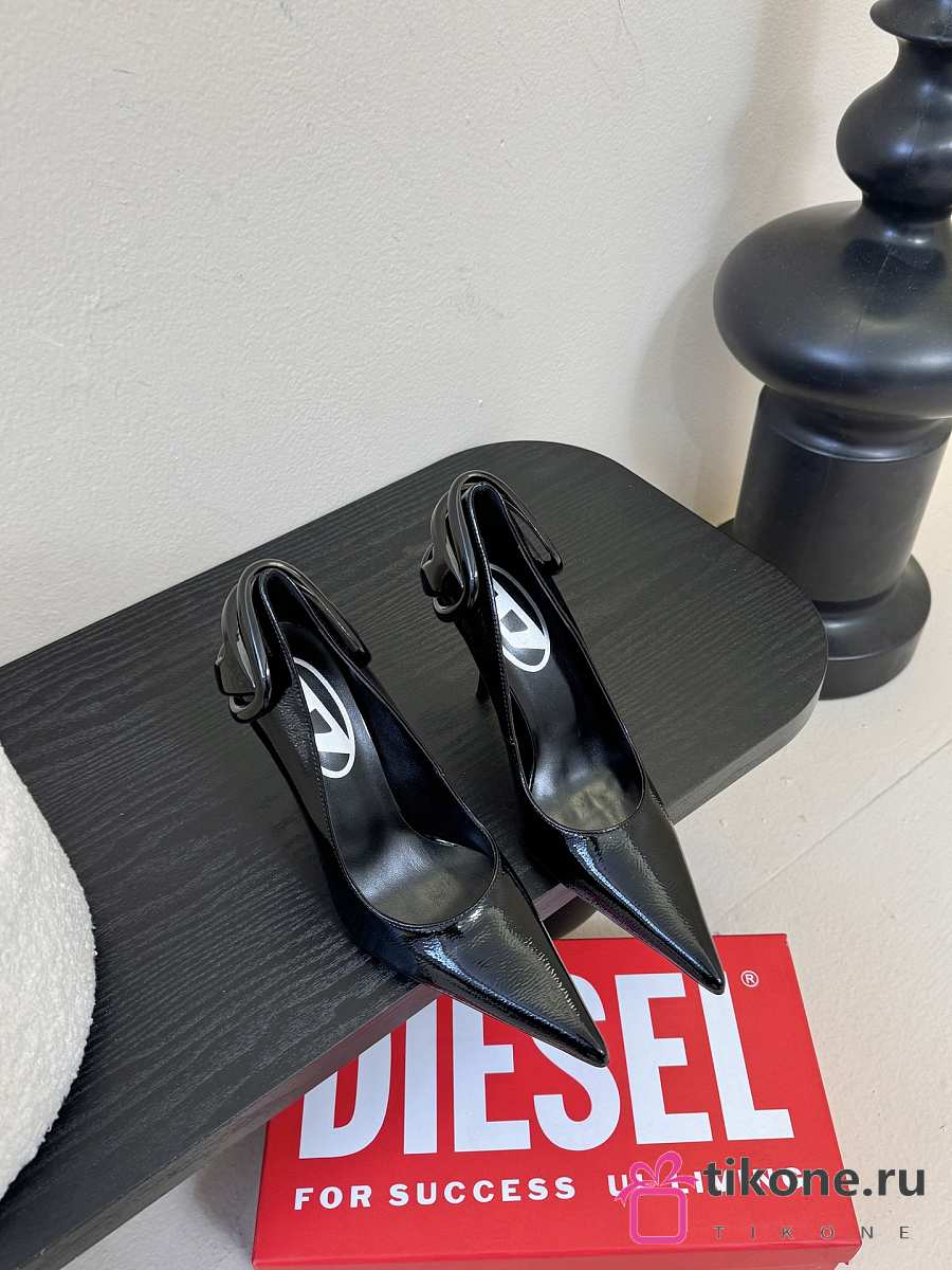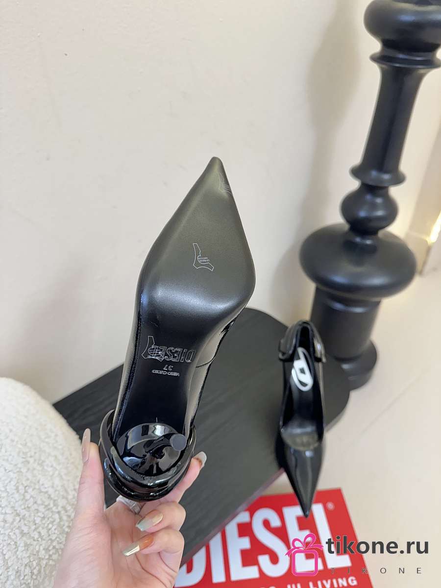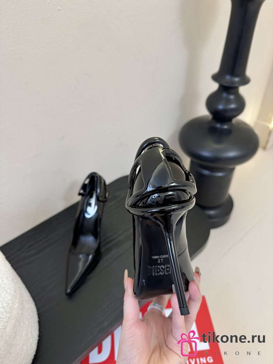 Diesel D-Ten & Half Pumps In Patent Pull-Up Leather Black 10.5cm