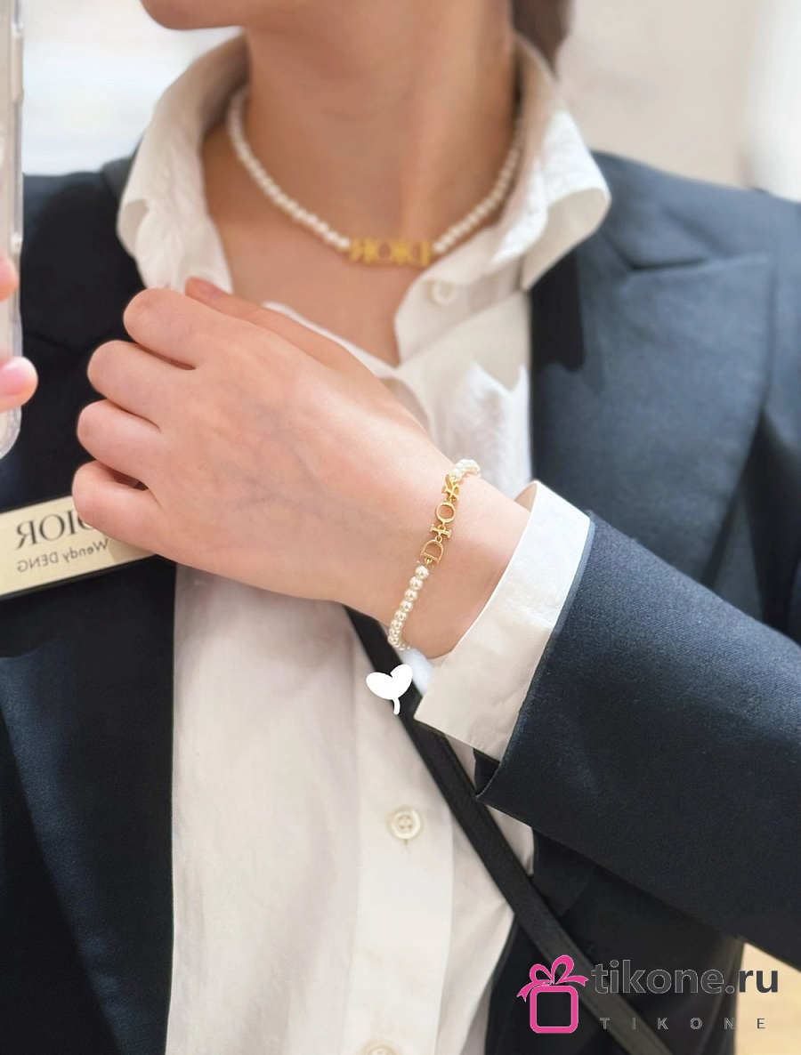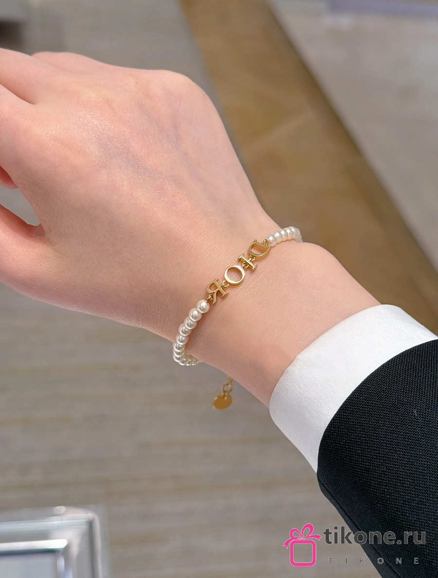 Dio(r)evolution Bracelet Gold Finish Metal and White Resin Pearls