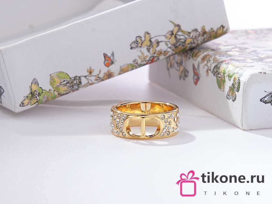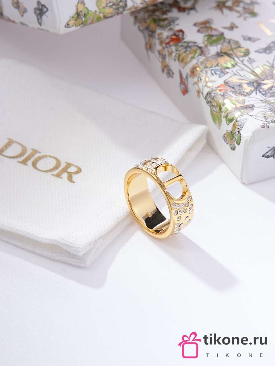 Dior 30 Montaigne Ring Gold Finish Metal and Silver Tone Crystals
