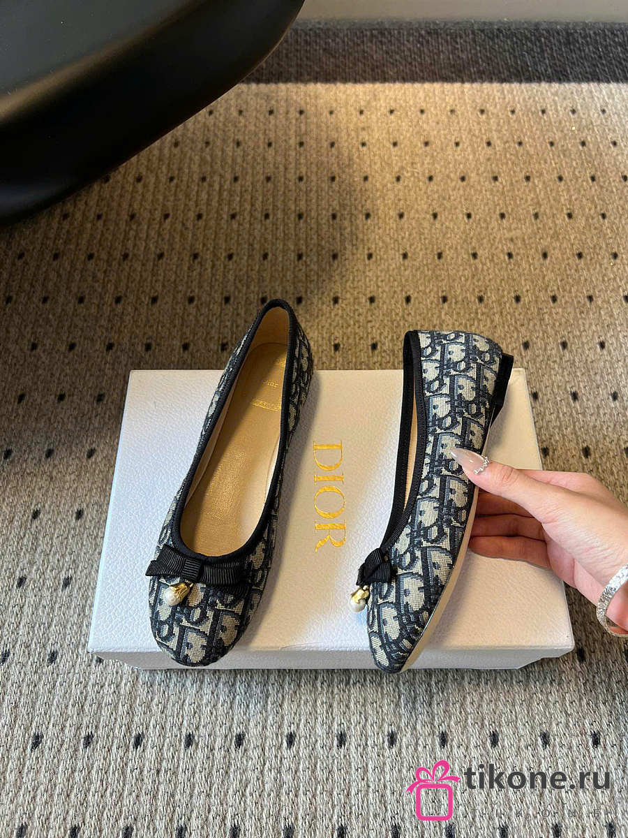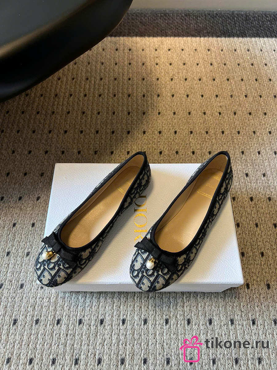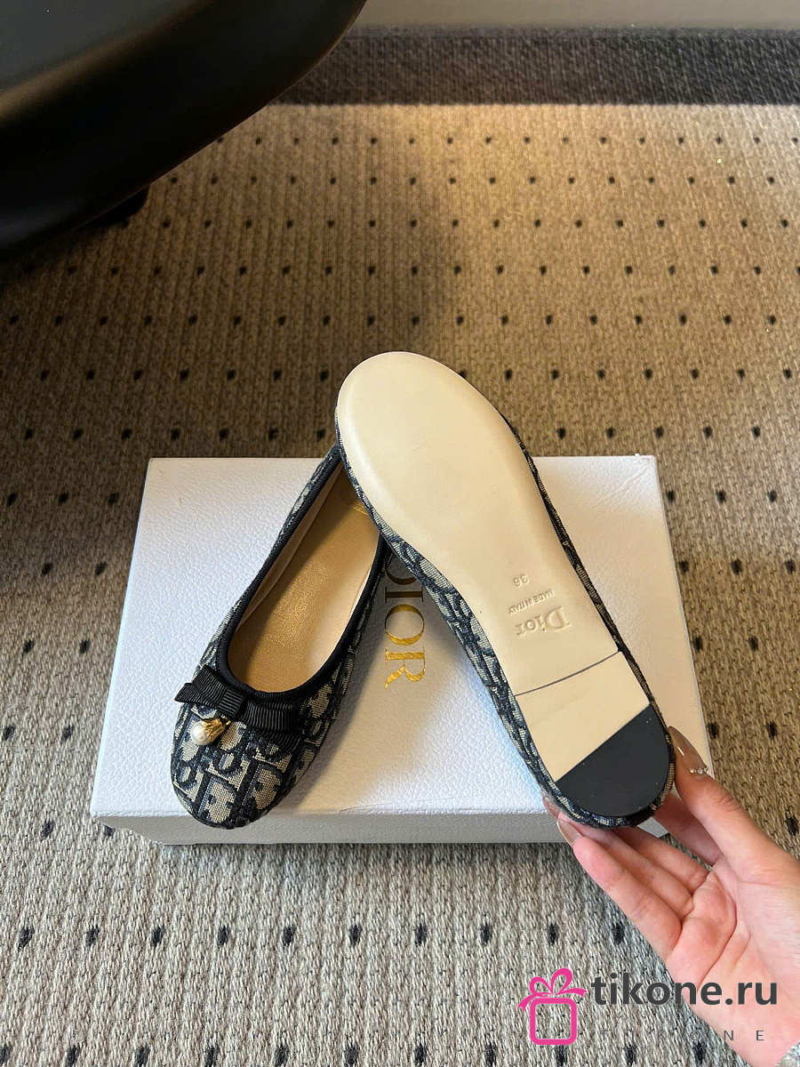 Dior Ballet Flat Cotton Embroidered with Deep Blue Dior Oblique Motif