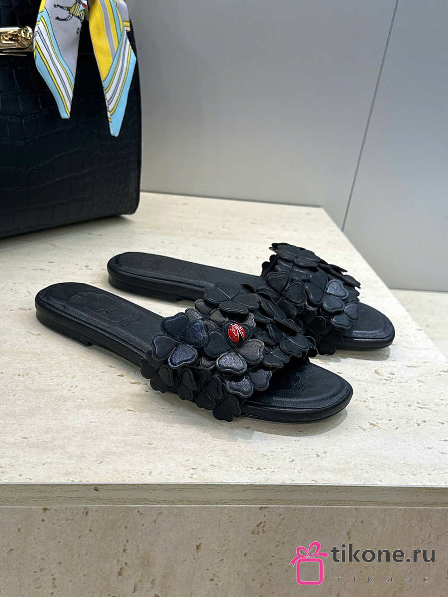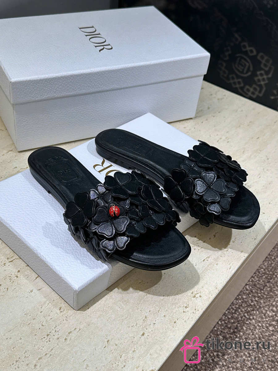 Dior Bloom Slide Black Dior Clover Embroidered Lambskin