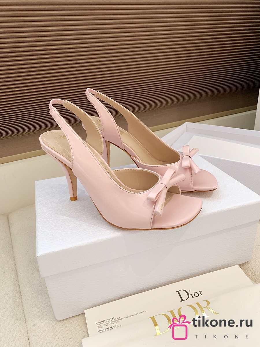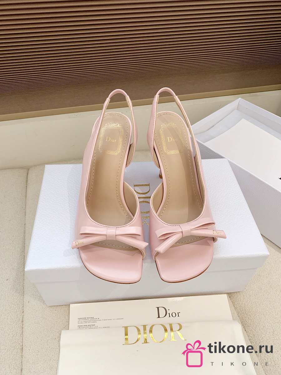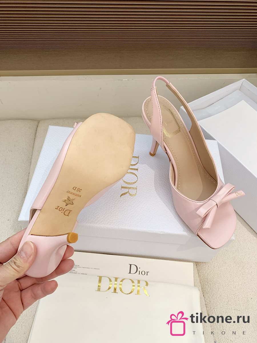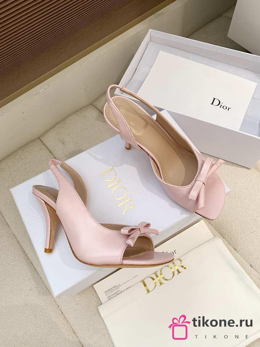 Dior Bow Heeled Slingback Sandal Rose Soupir Lambskin 7.5cm