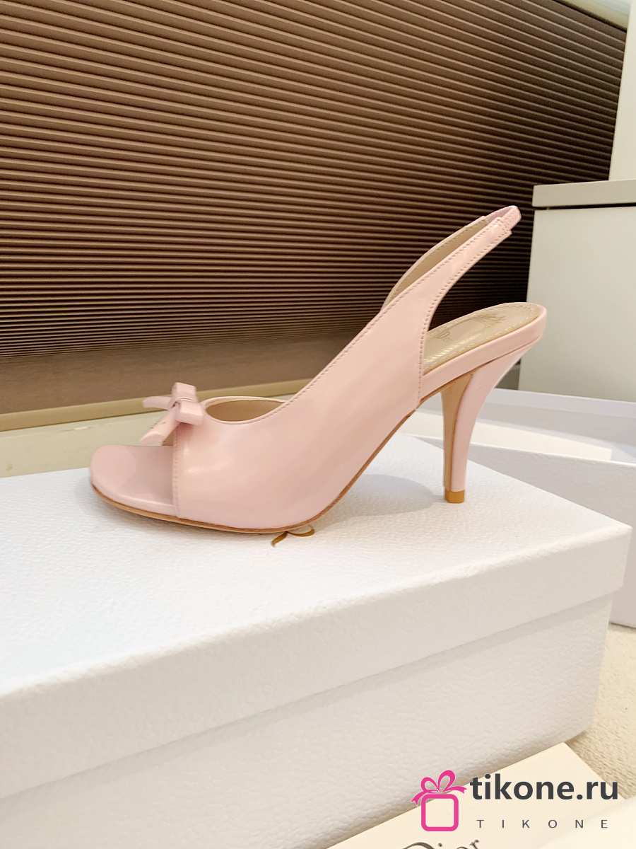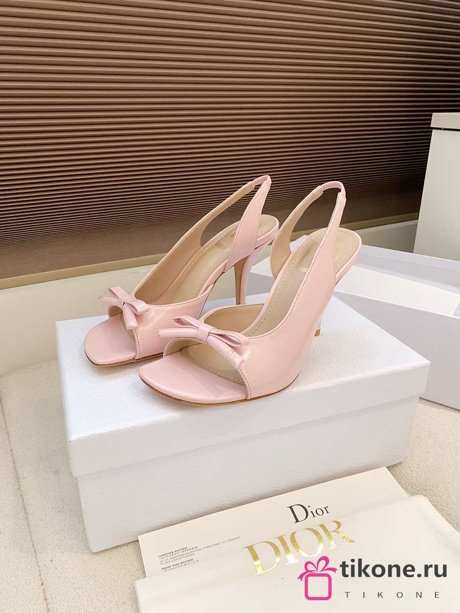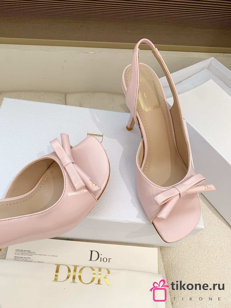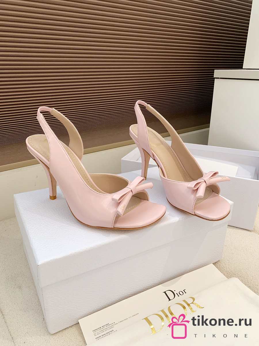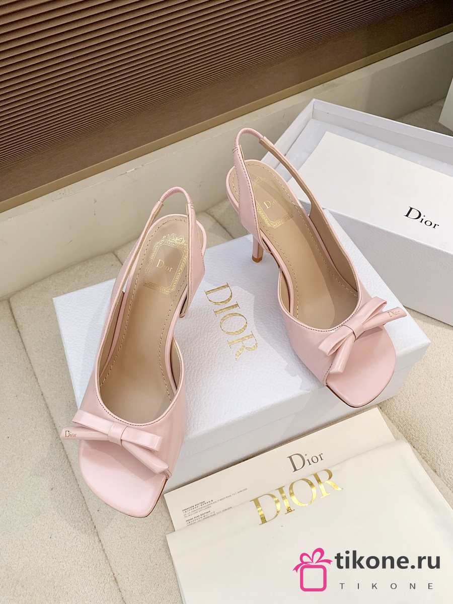Dior Bow Heeled Slingback Sandal Rose Soupir Lambskin 7.5cm