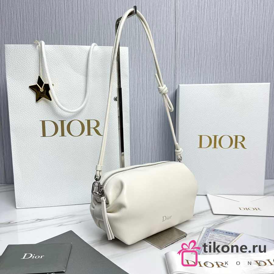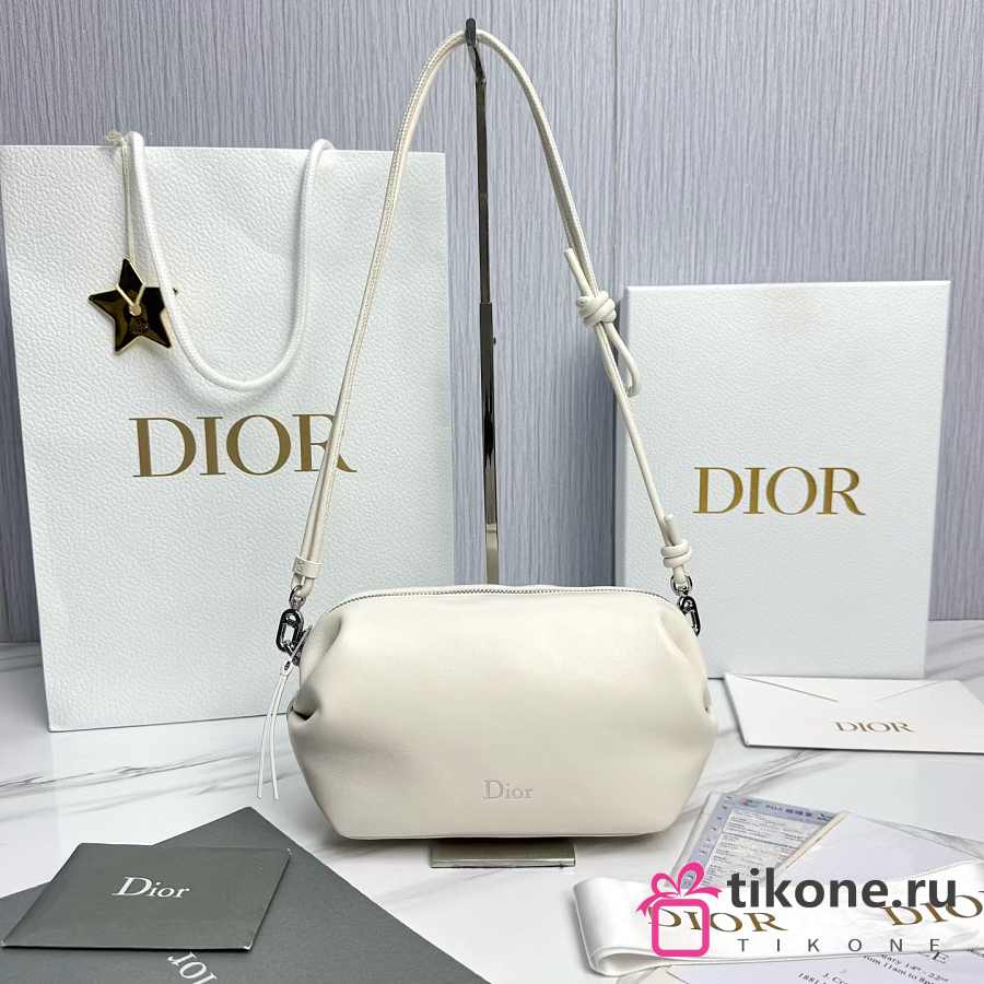 Dior Bow Pouch White Supple Lambskin - 20x11x8cm