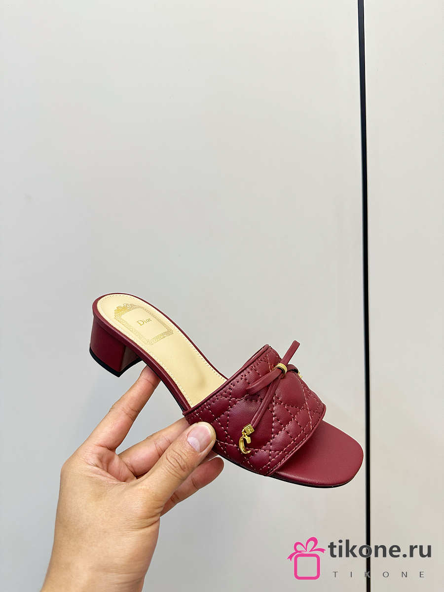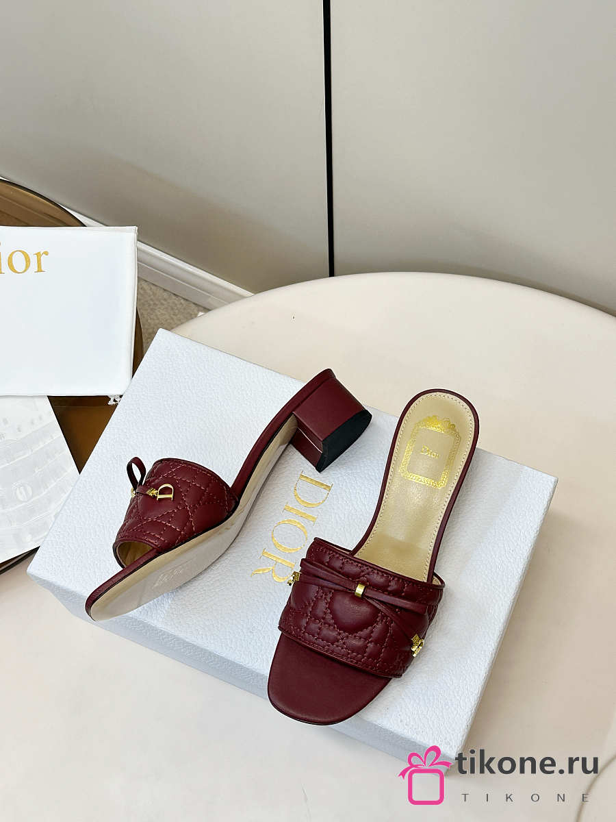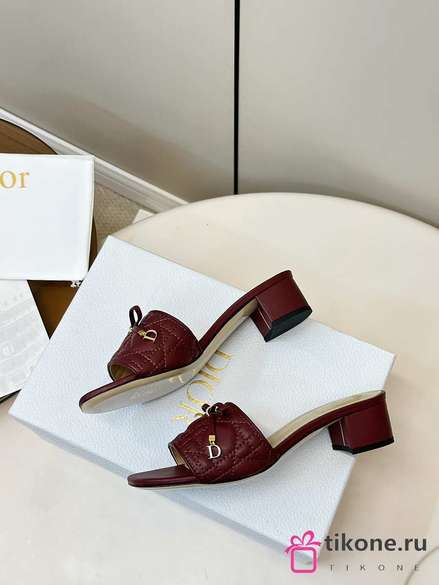 Dior Cannage Heeled Slide Burgundy Quilted Cannage Lambskin 3.5cm