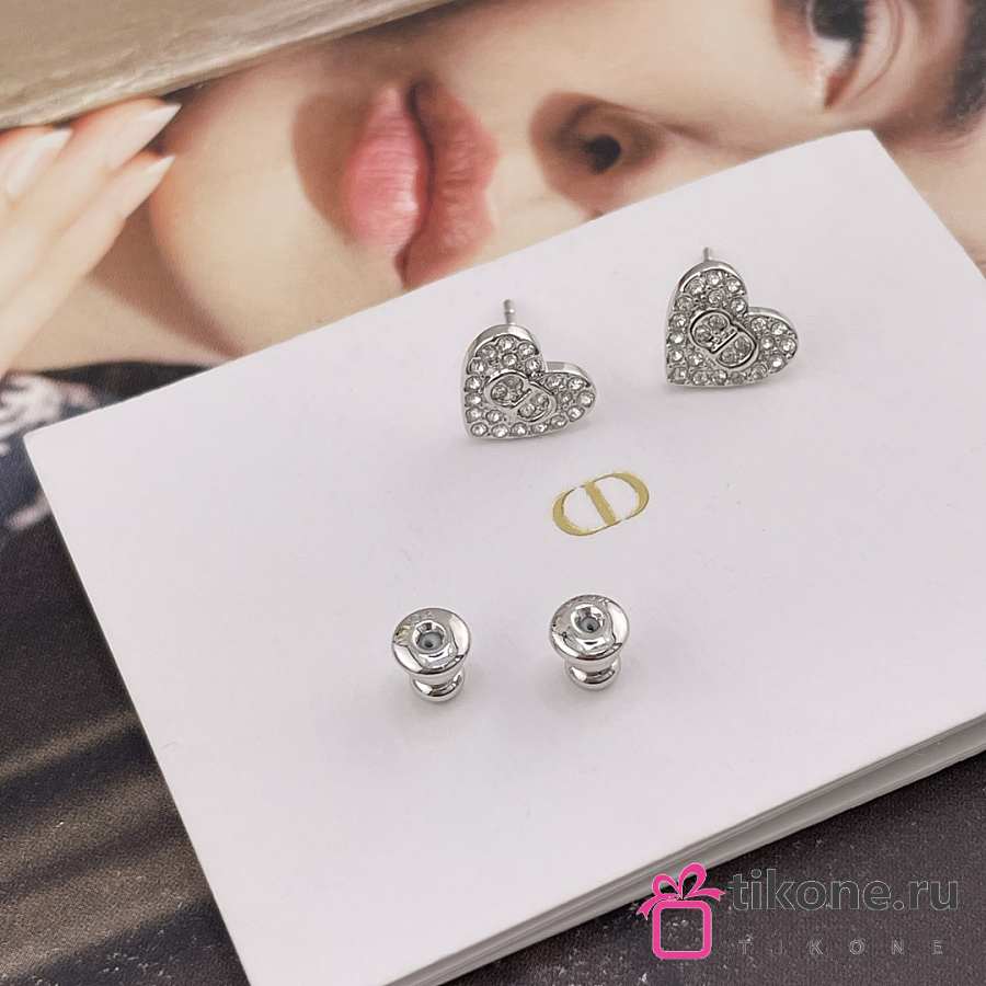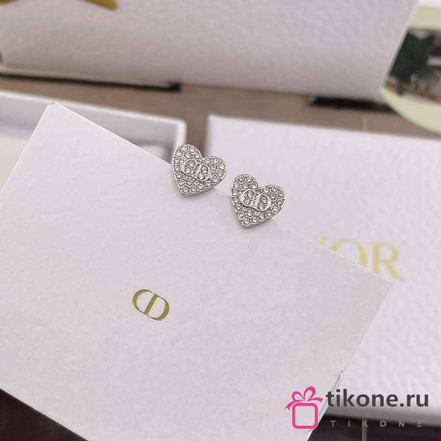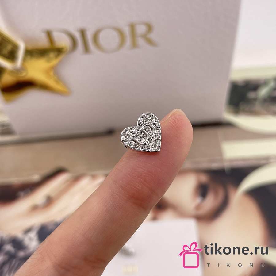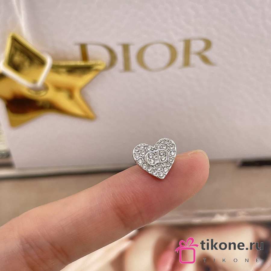Dior Clair D Lune Stud Earrings Silver Finish Metal and White Crystals