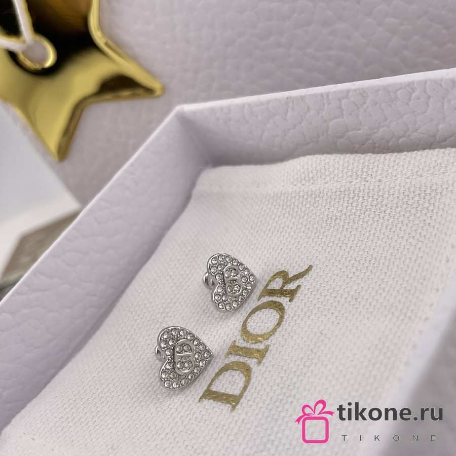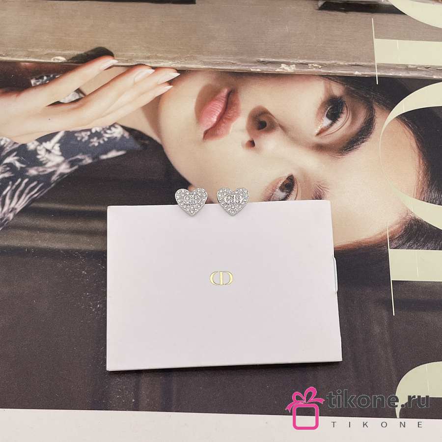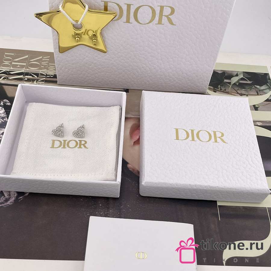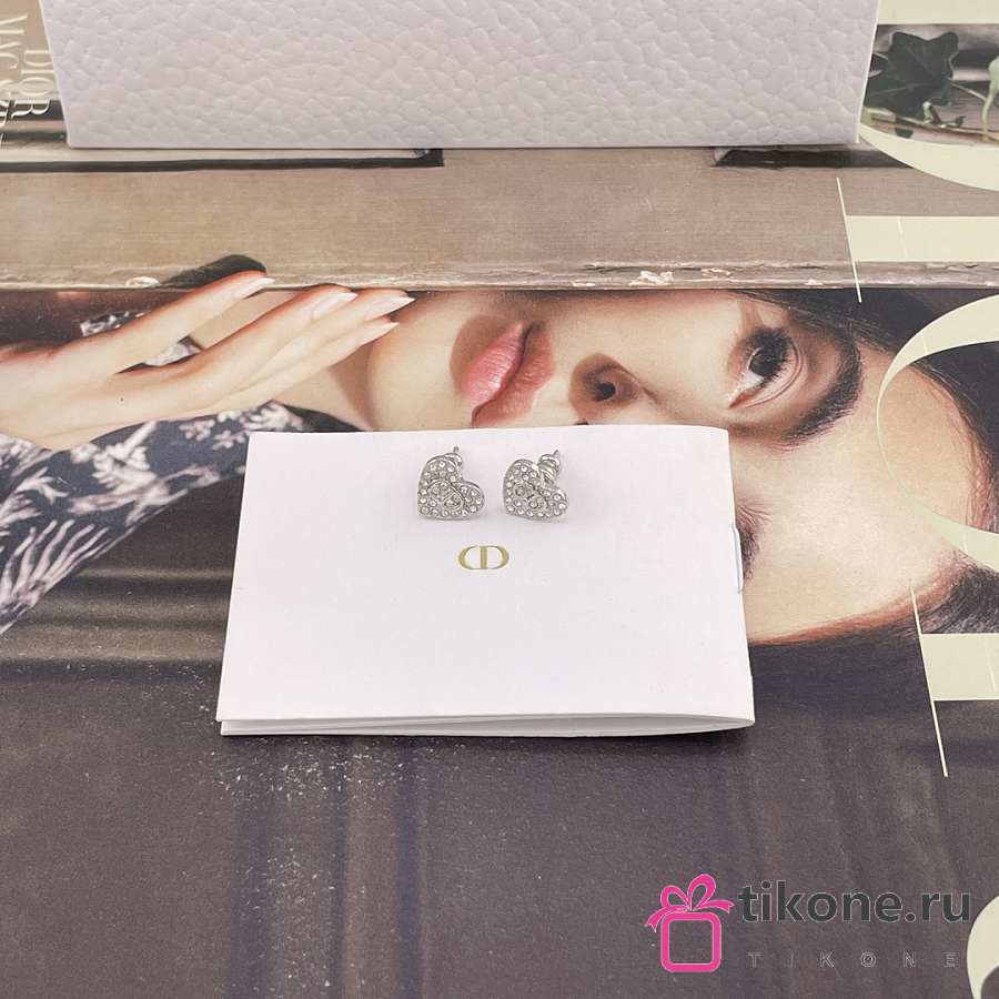 Dior Clair D Lune Stud Earrings Silver Finish Metal and White Crystals