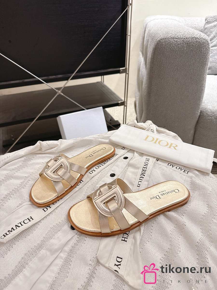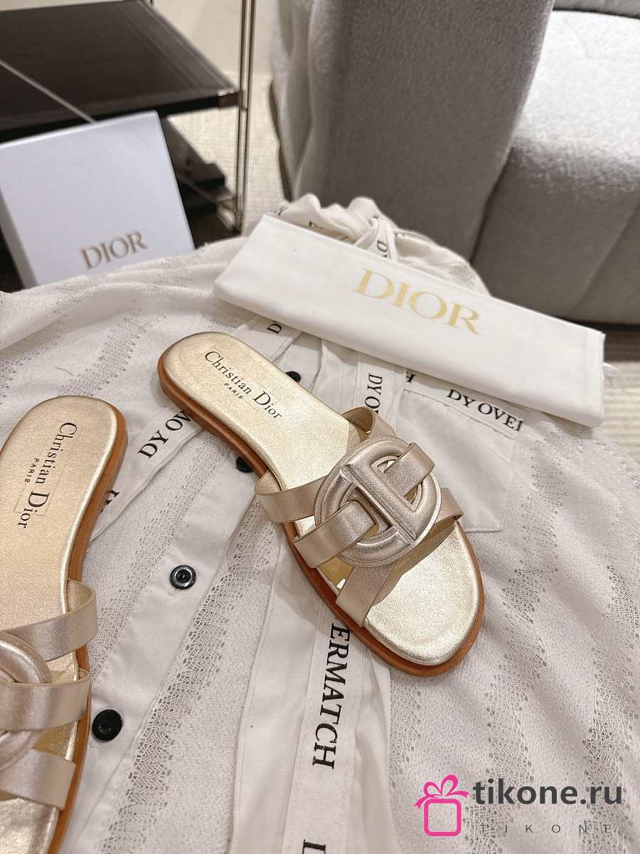 Dior D-Club Slide Gold Tone Laminated Calfskin