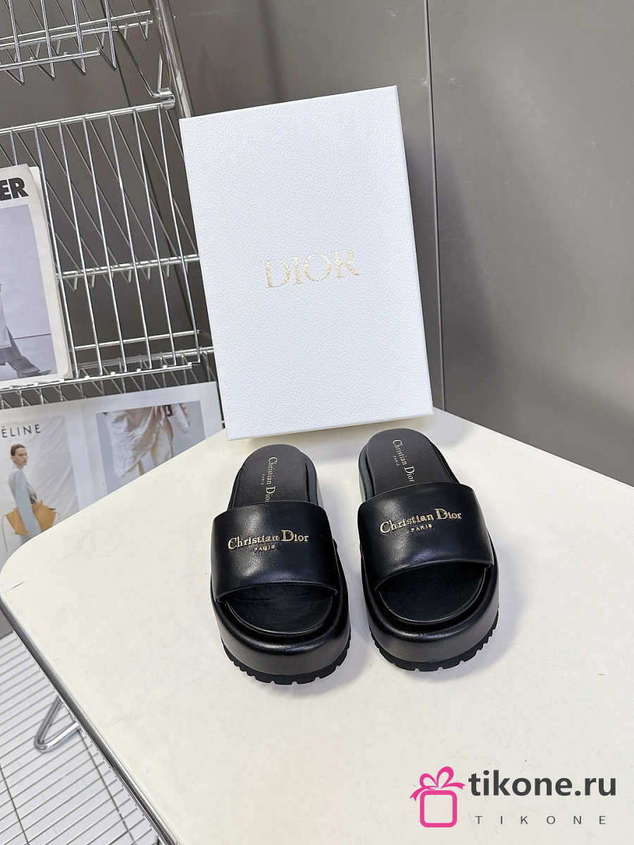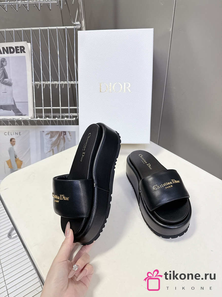 Dior D-Lane Platform Slide Black Padded Lambskin