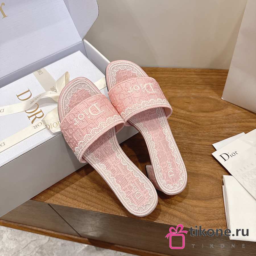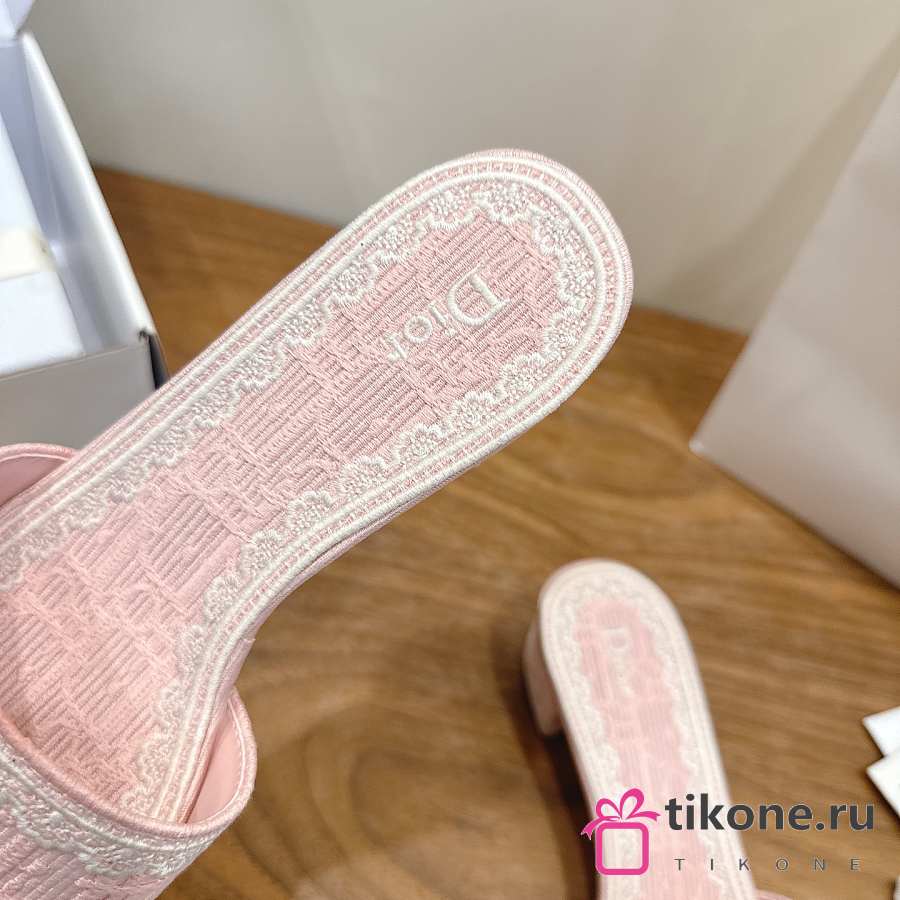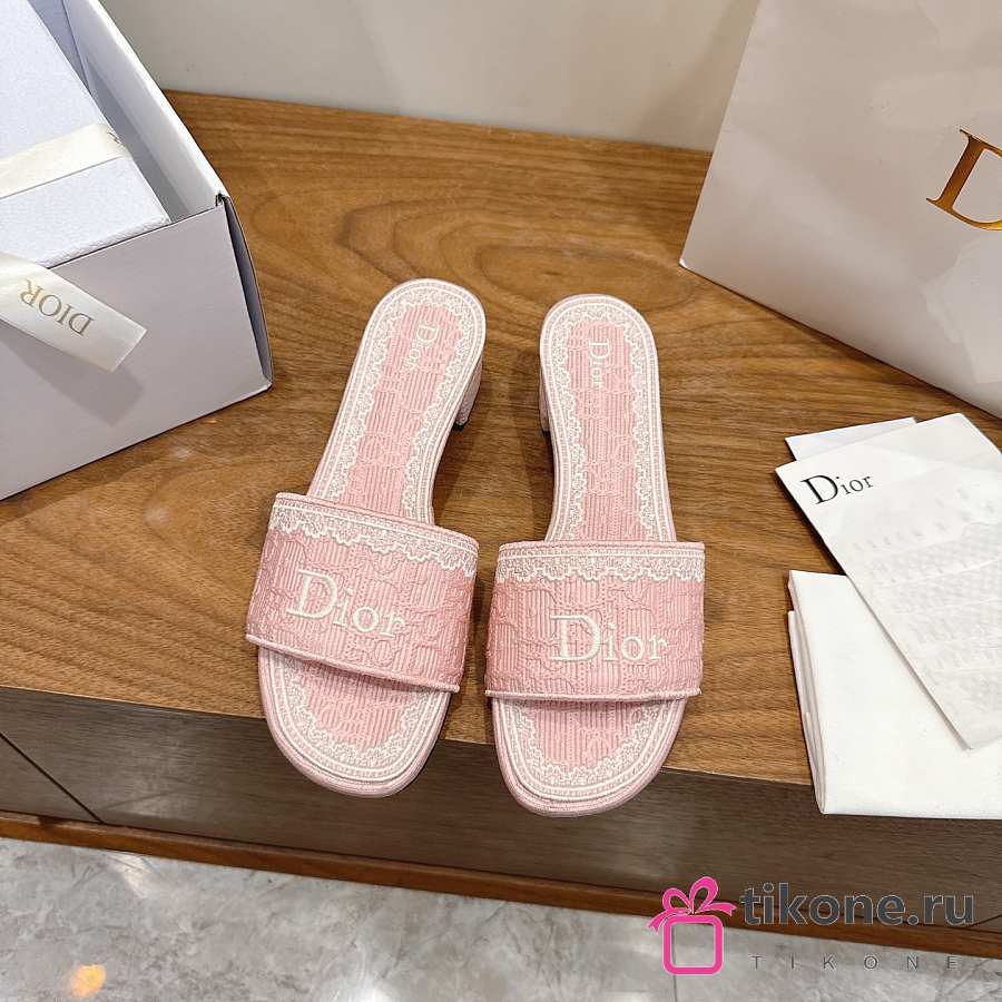 Dior Dentelle Heeled Slide Rose Soupir Dior Oblique Embroidered Cotton and White Lace 3.5cm