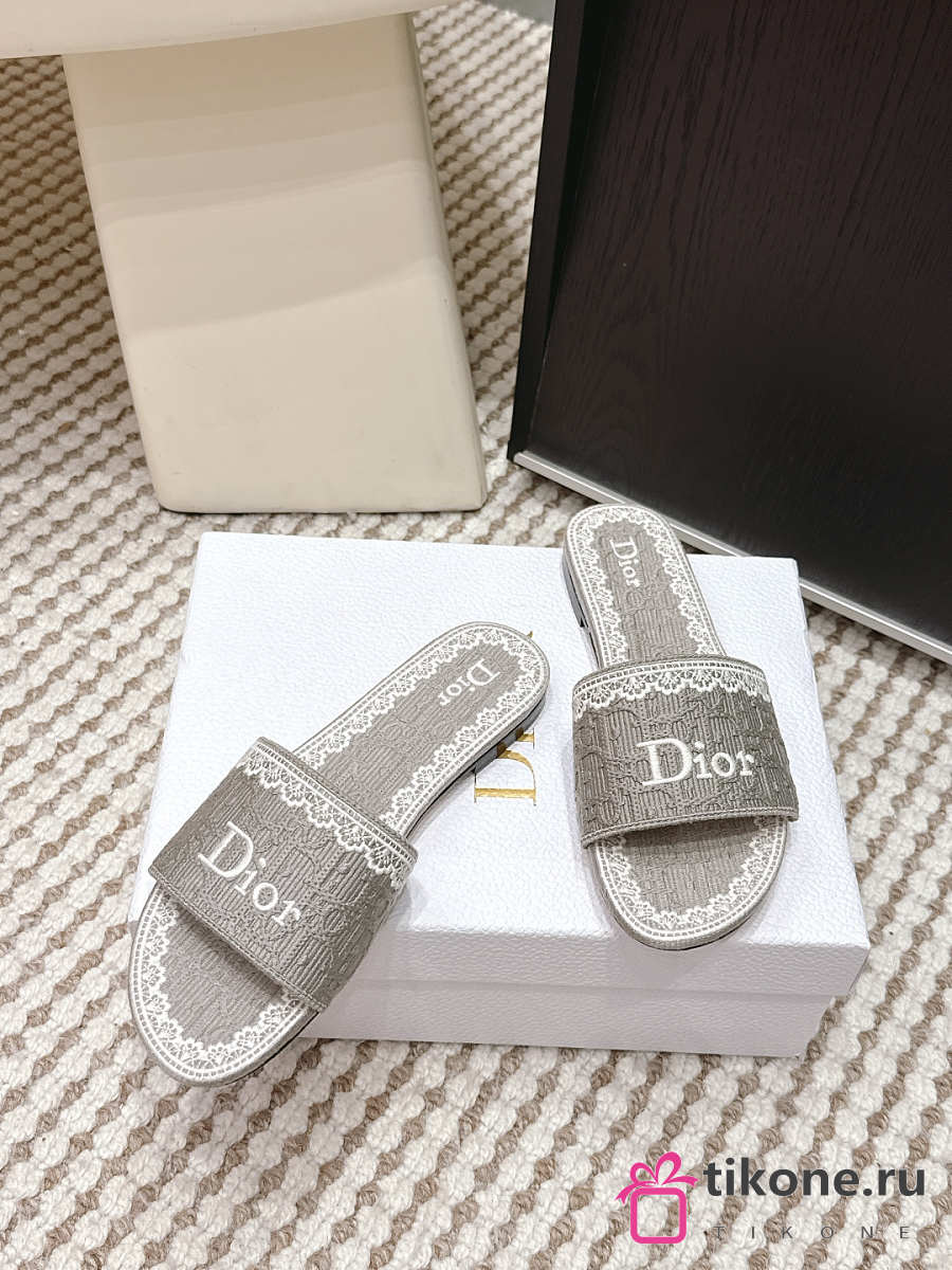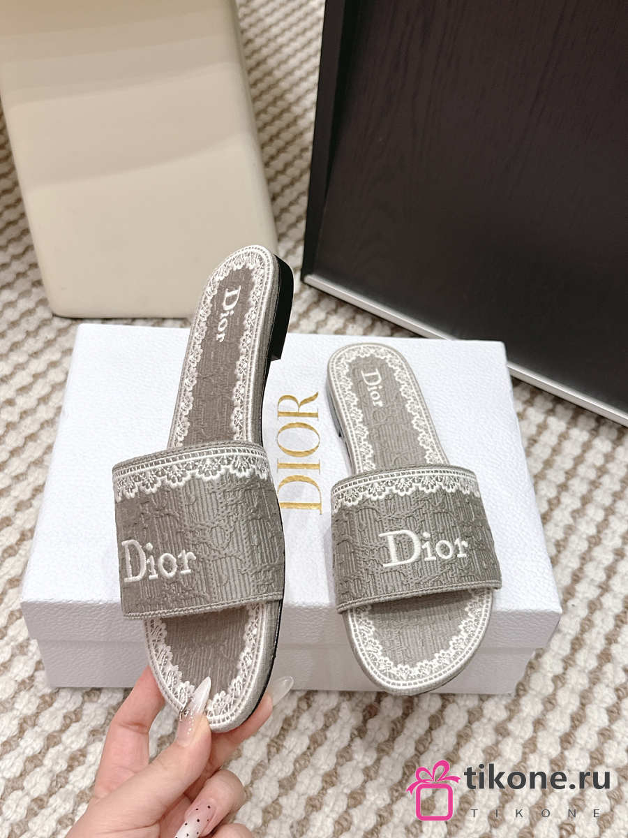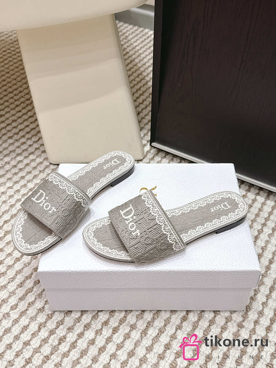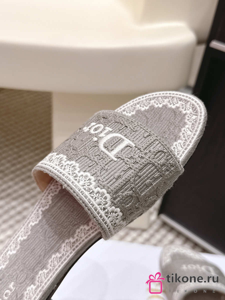 Dior Dentelle Slide Gray Dior Oblique Embroidered Cotton and White Lace