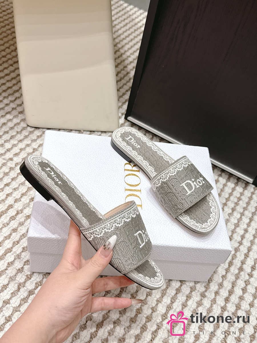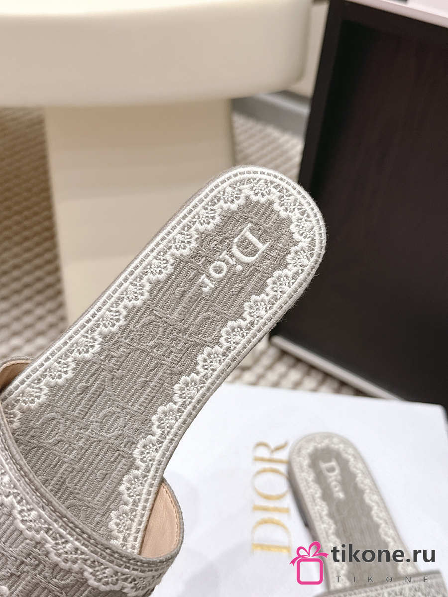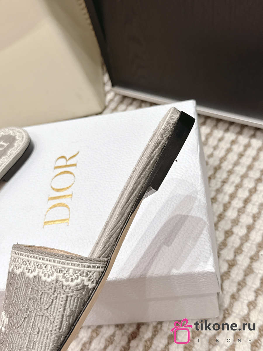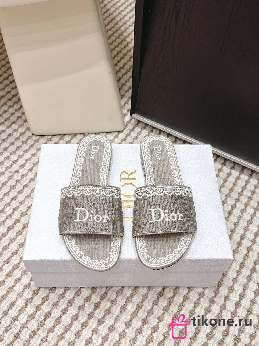 Dior Dentelle Slide Gray Dior Oblique Embroidered Cotton and White Lace