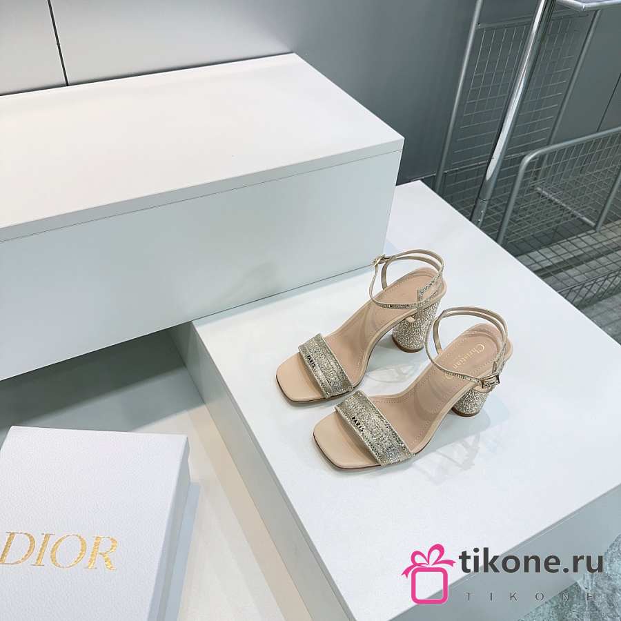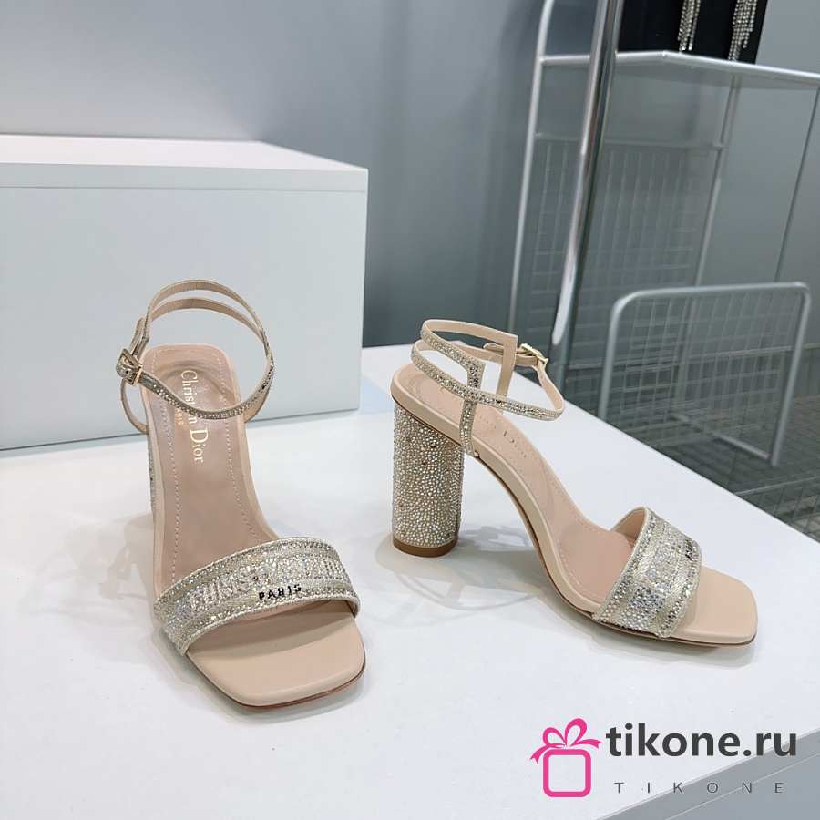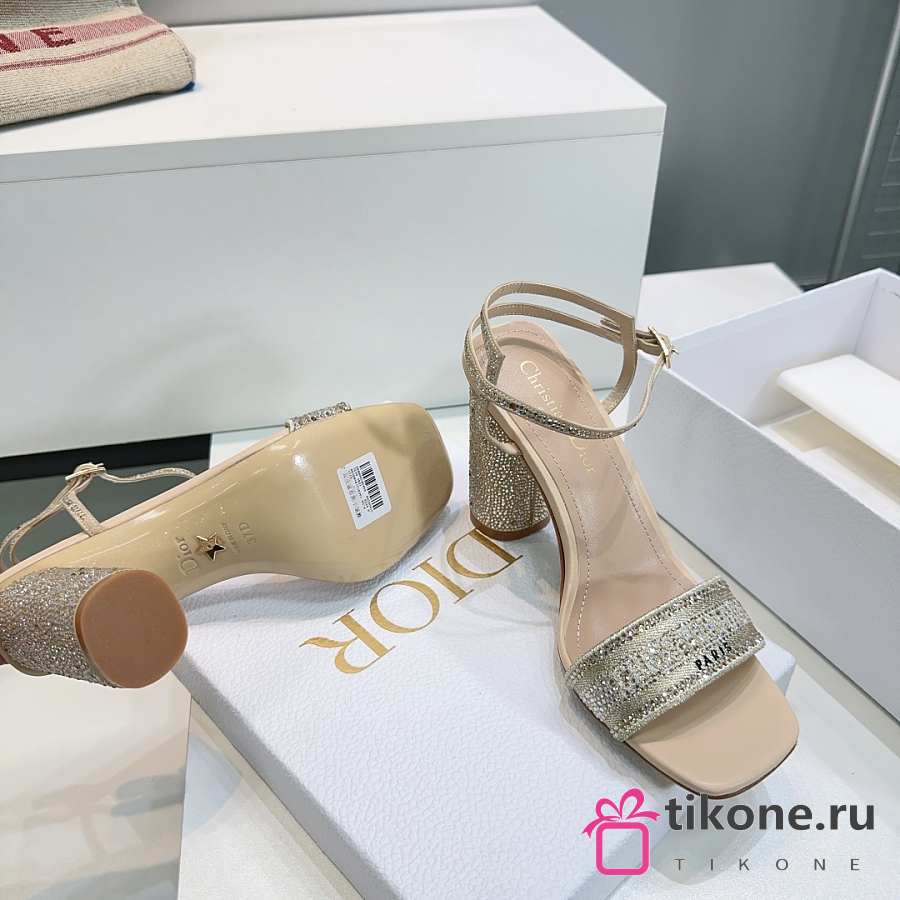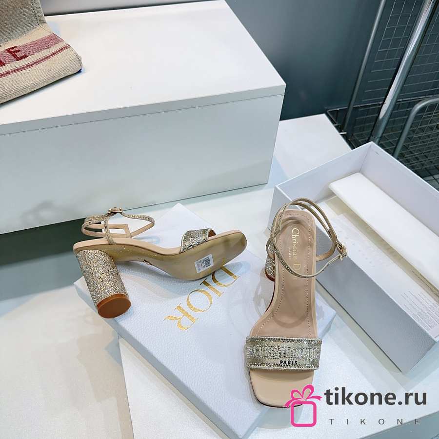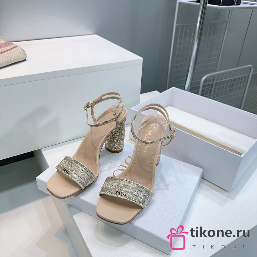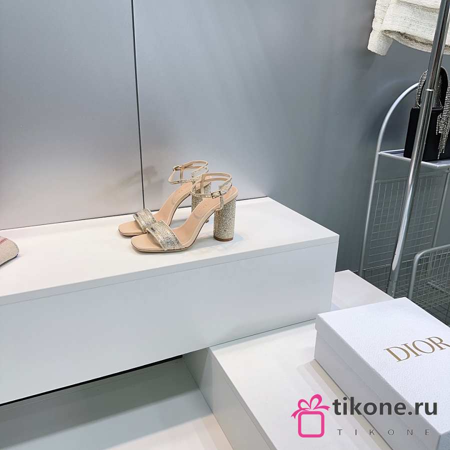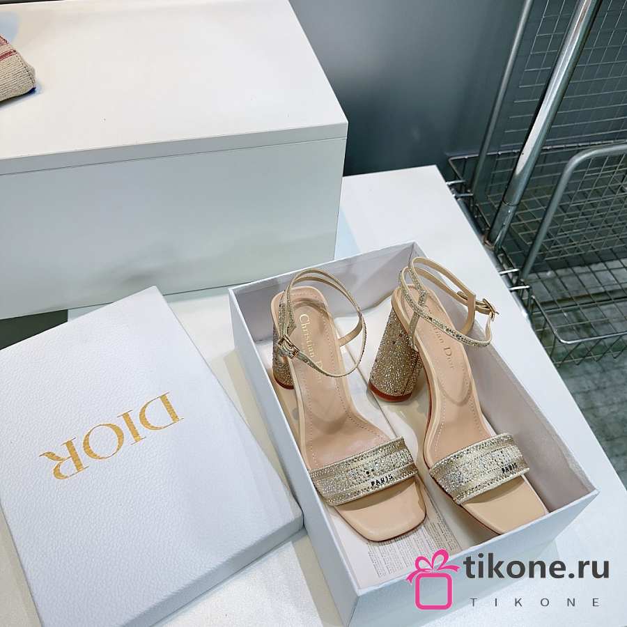 Dior Dway Heeled Sandal Cotton Embroidered with Metallic Thread and Gold-Tone Strass