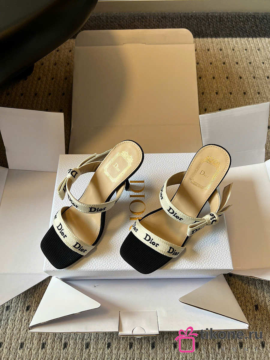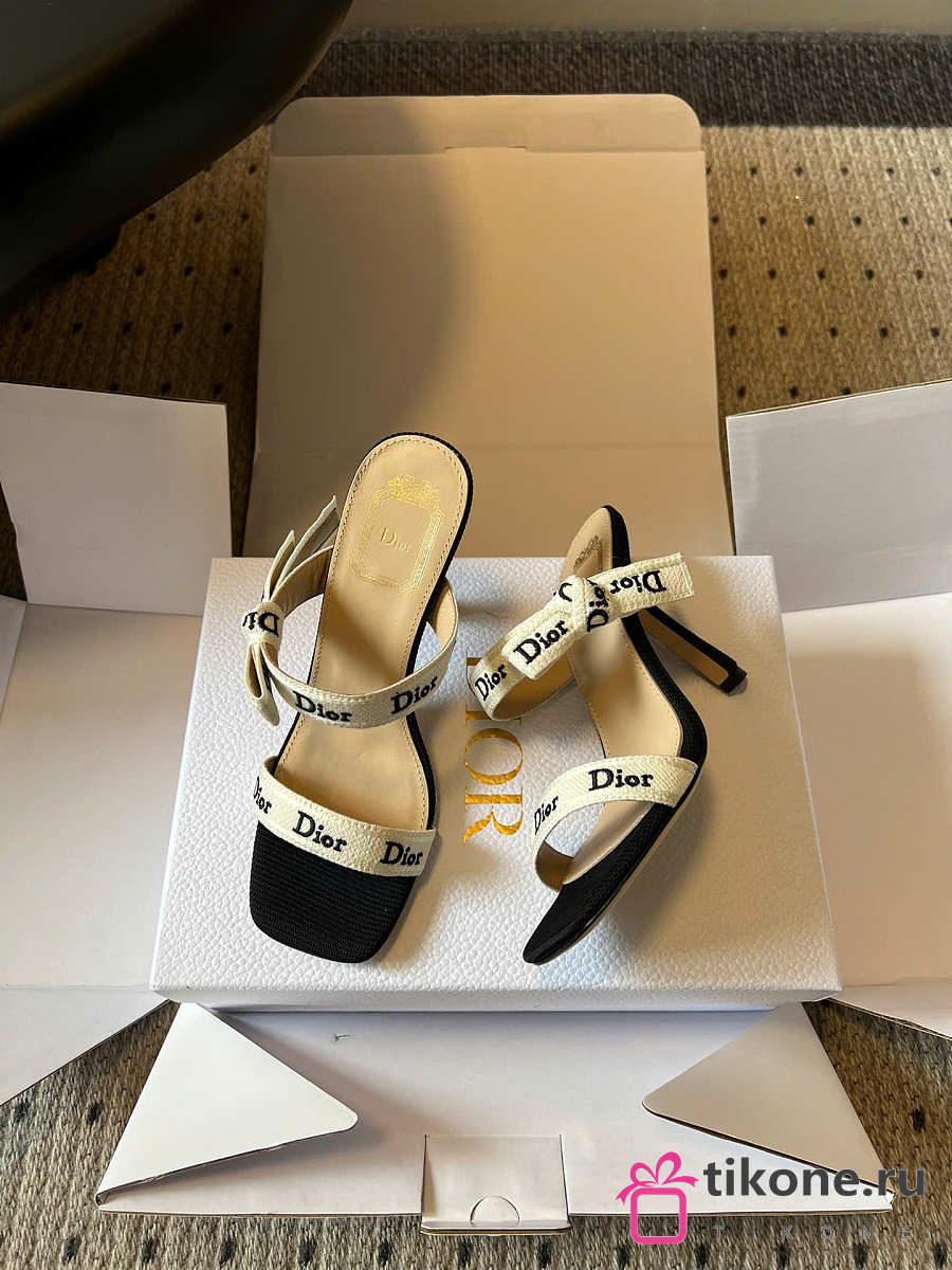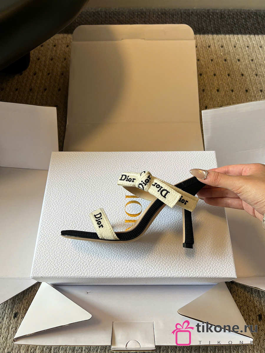 Dior Heeled Sandal with J'Adior Straps Black Embroidered Cotton 10cm