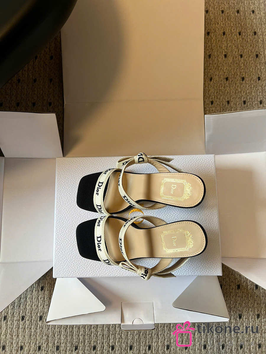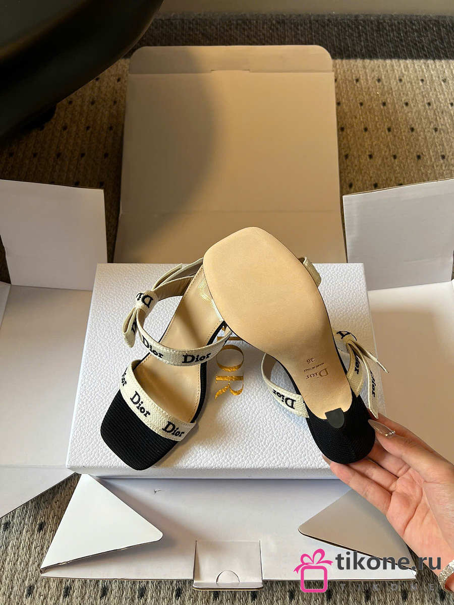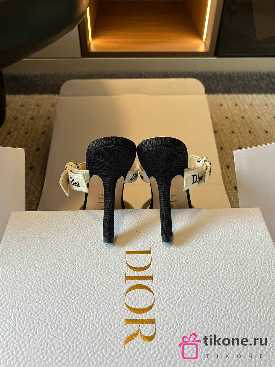 Dior Heeled Sandal with J'Adior Straps Black Embroidered Cotton 10cm