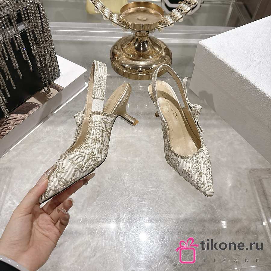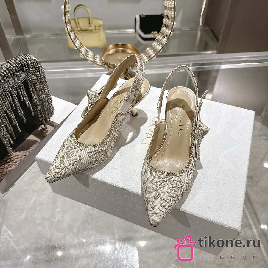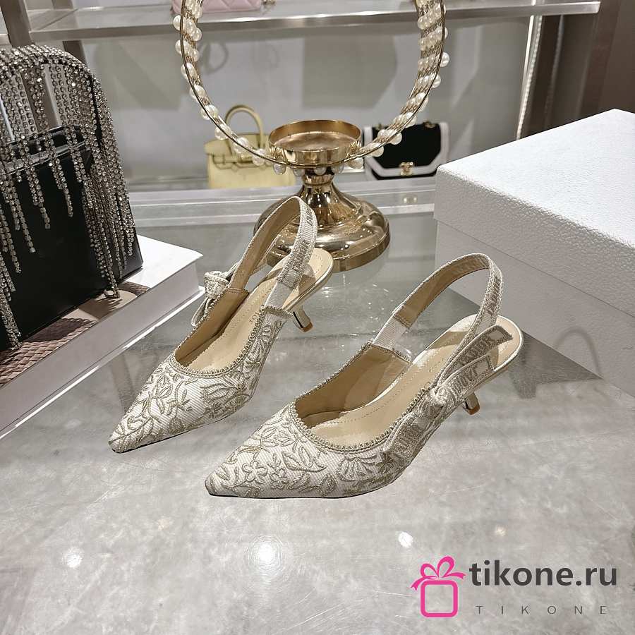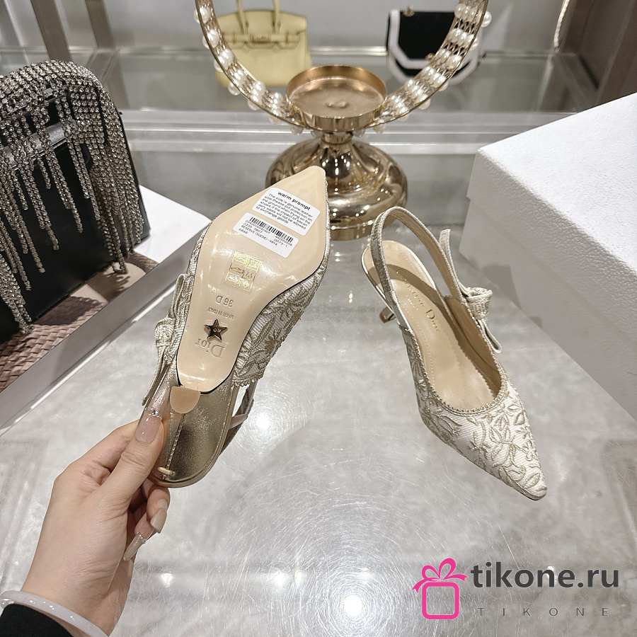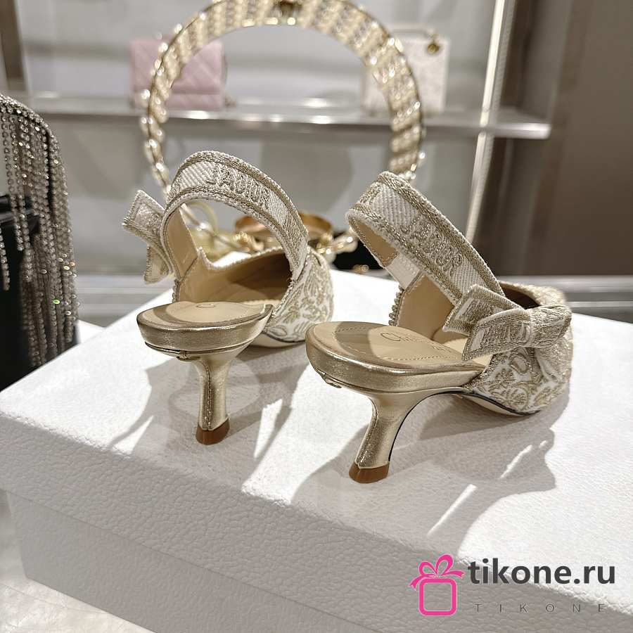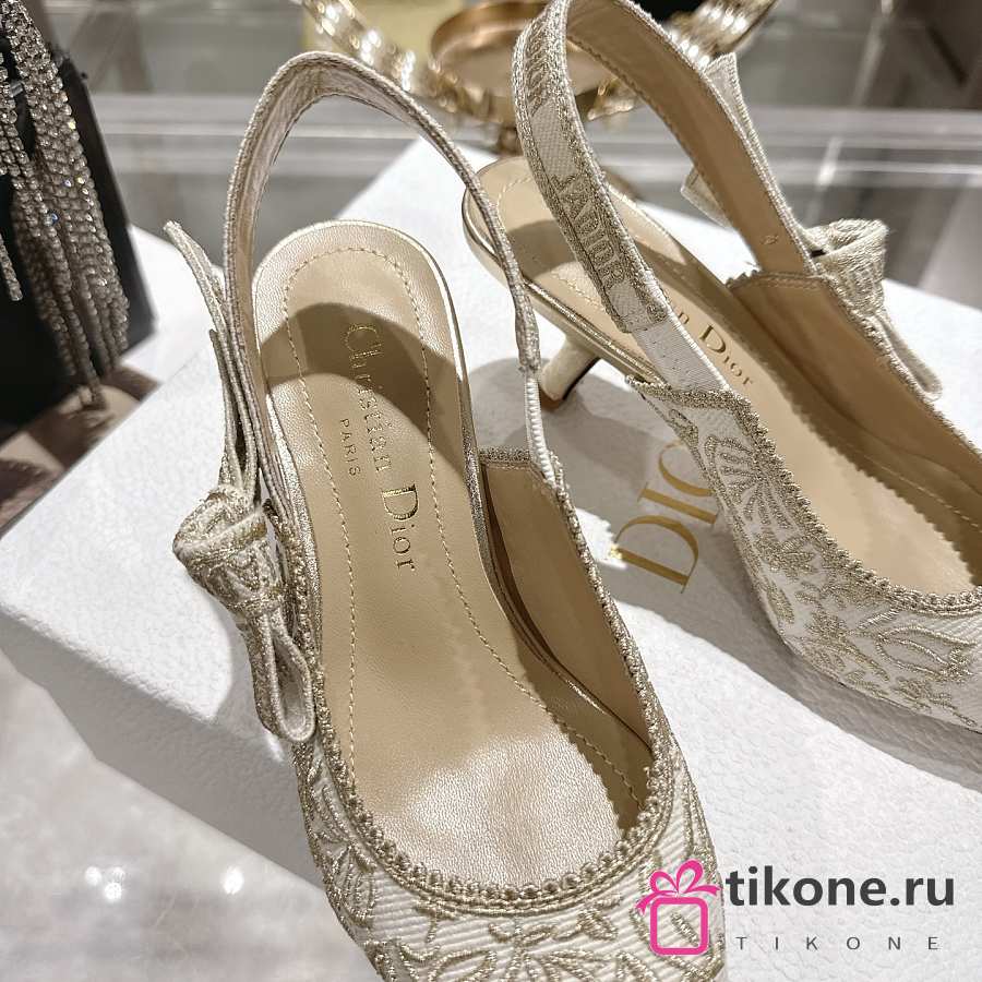 Dior J'Adior Slingback Pump White Cotton Embroidered with Millefiori Motif in Gold-Tone Metallic Thread