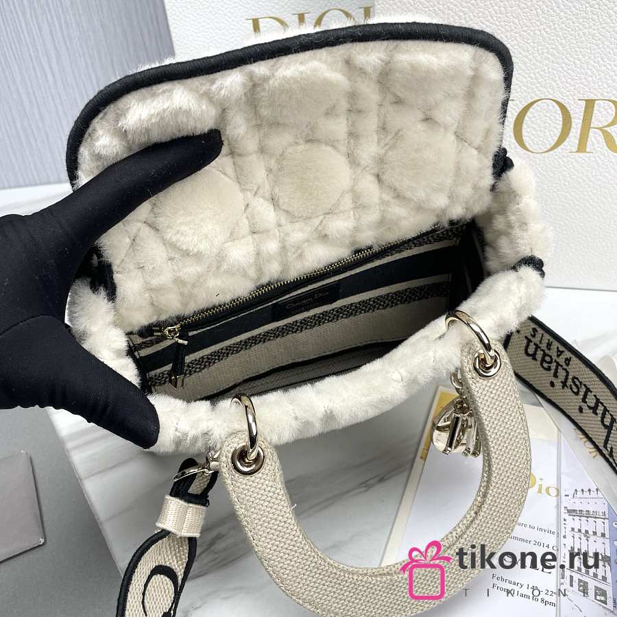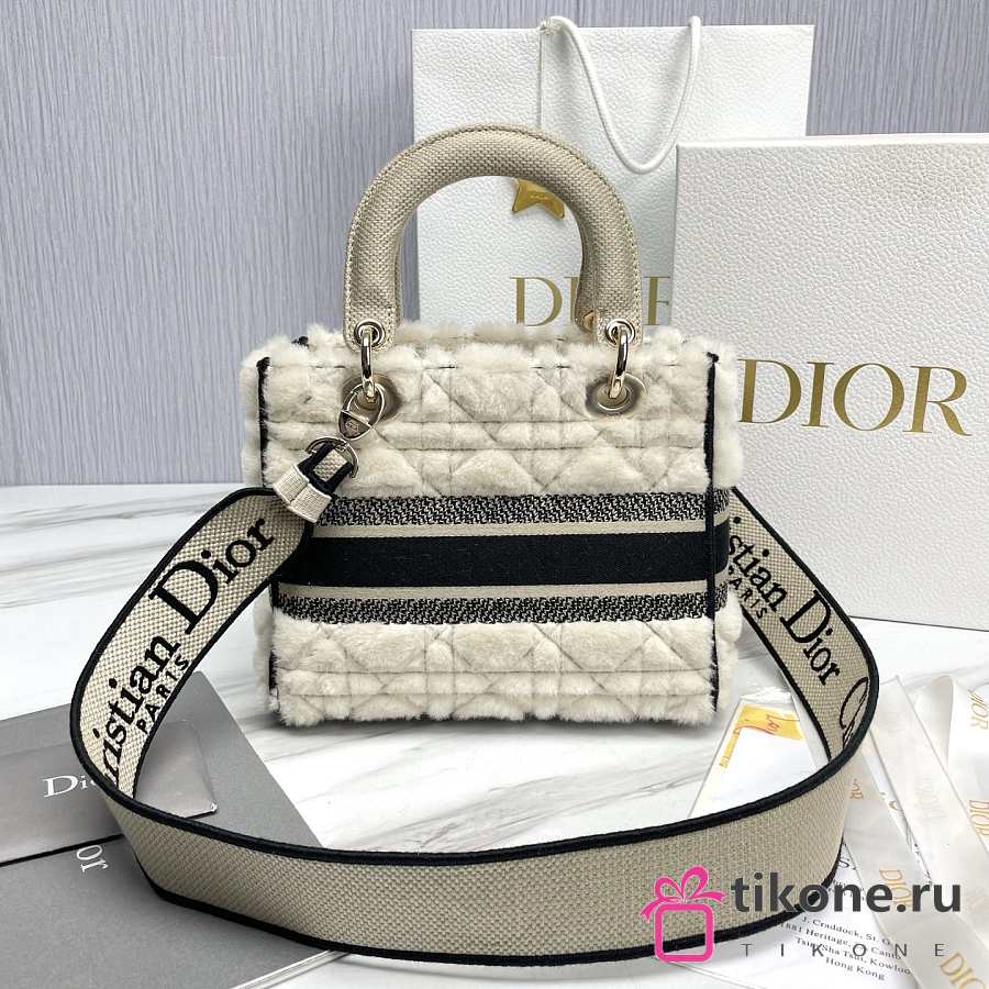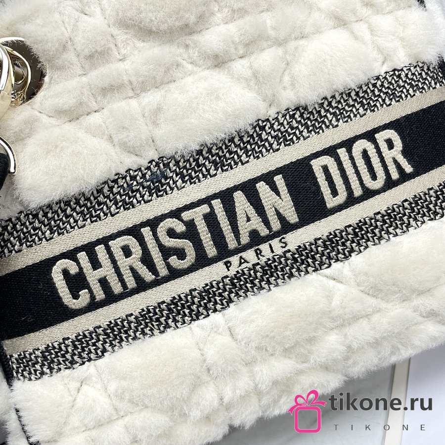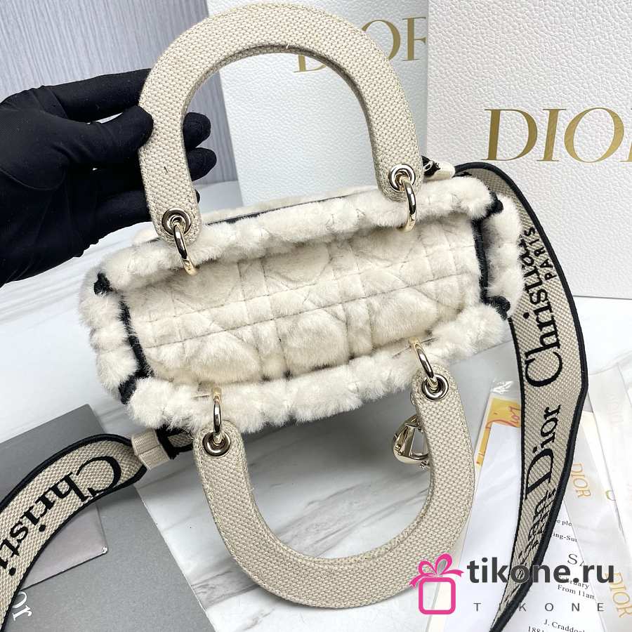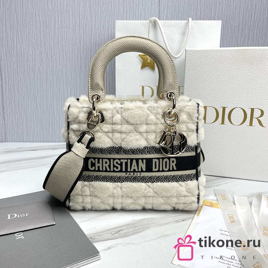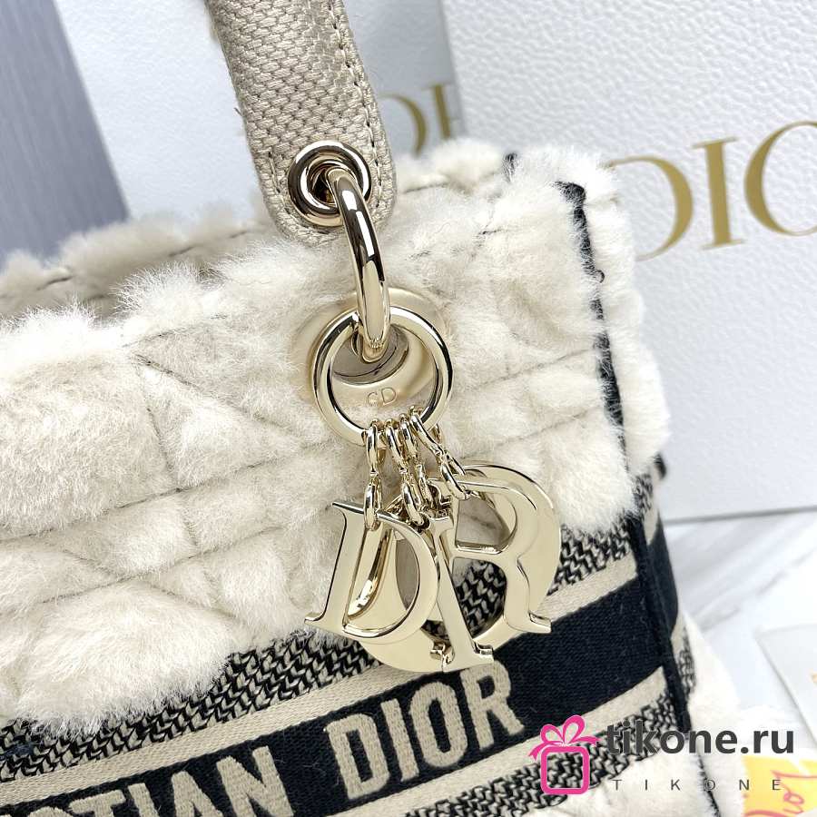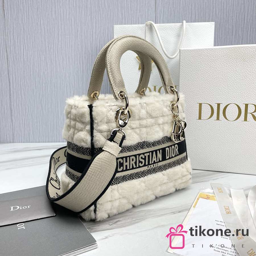 Dior Lady D-Lite Medium Bag Lambskin Wool Unbleached Caning White - 24x21x12cm