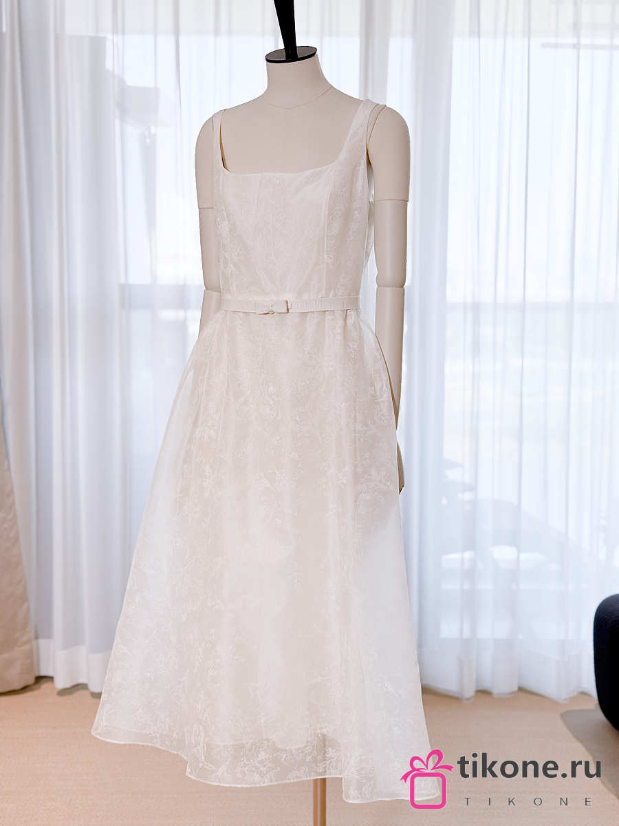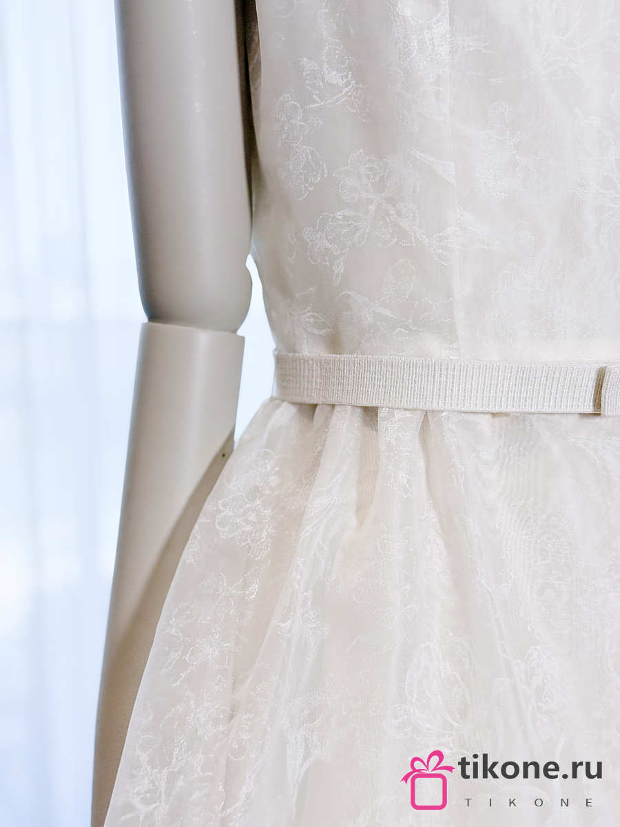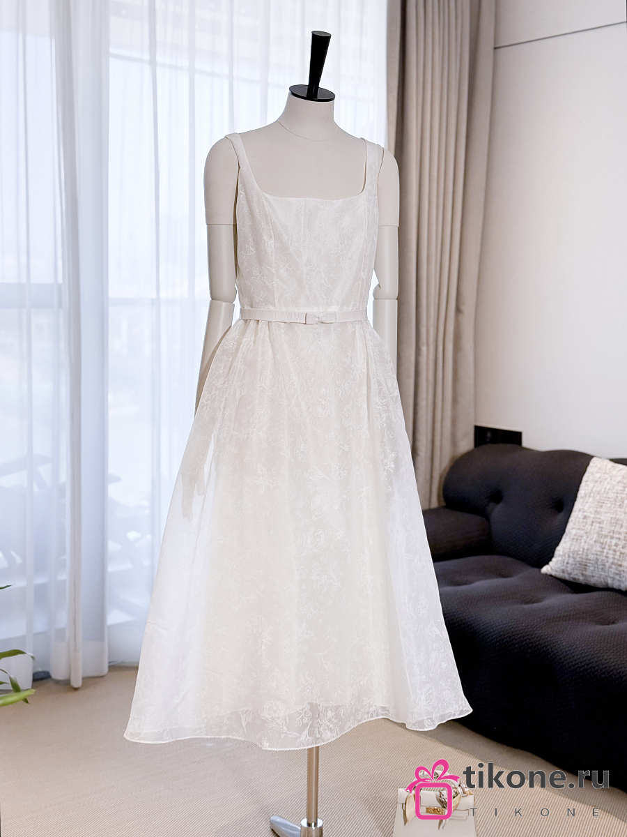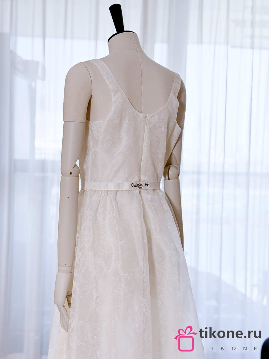 Dior Long Belted Dress Ecru Silk Organza with Millefiori Motif