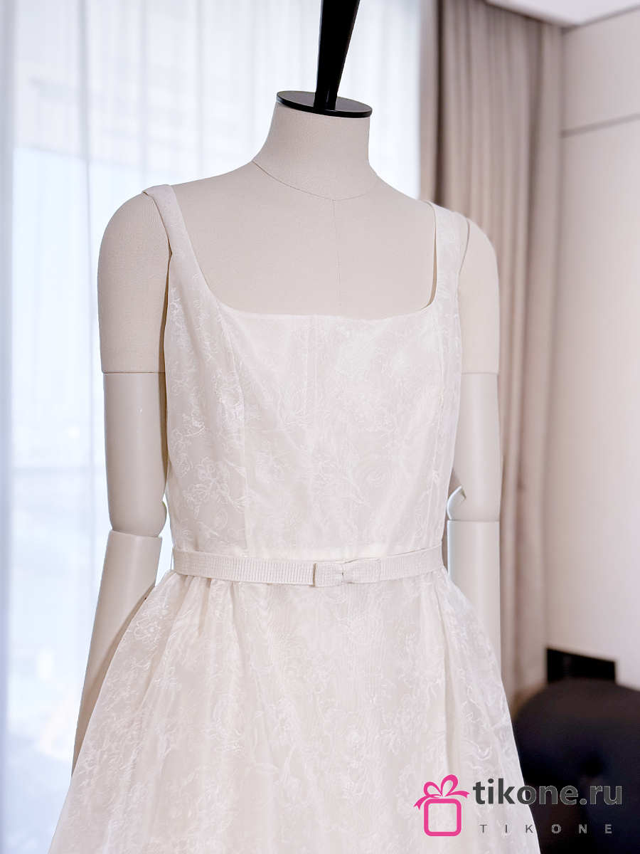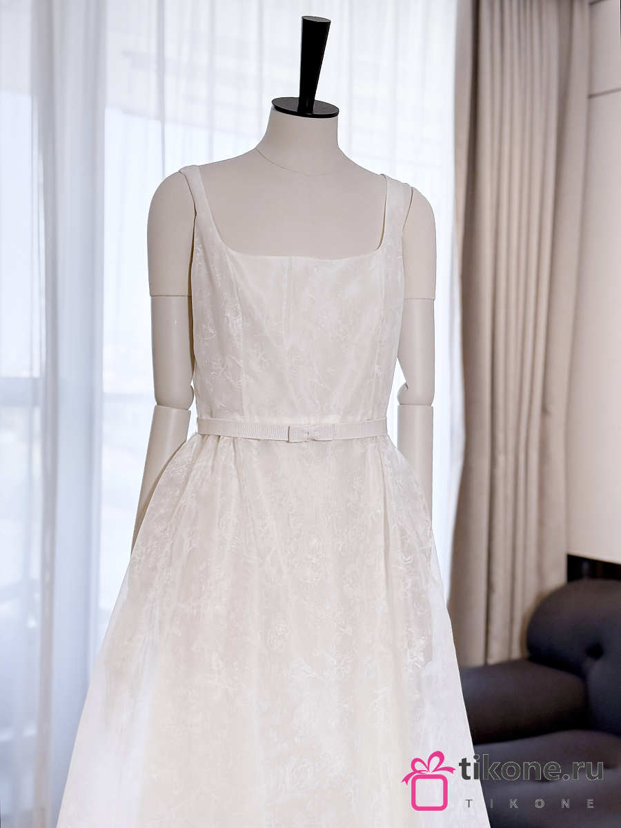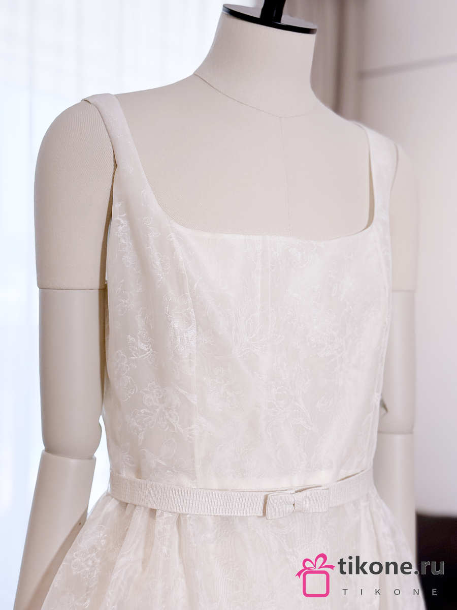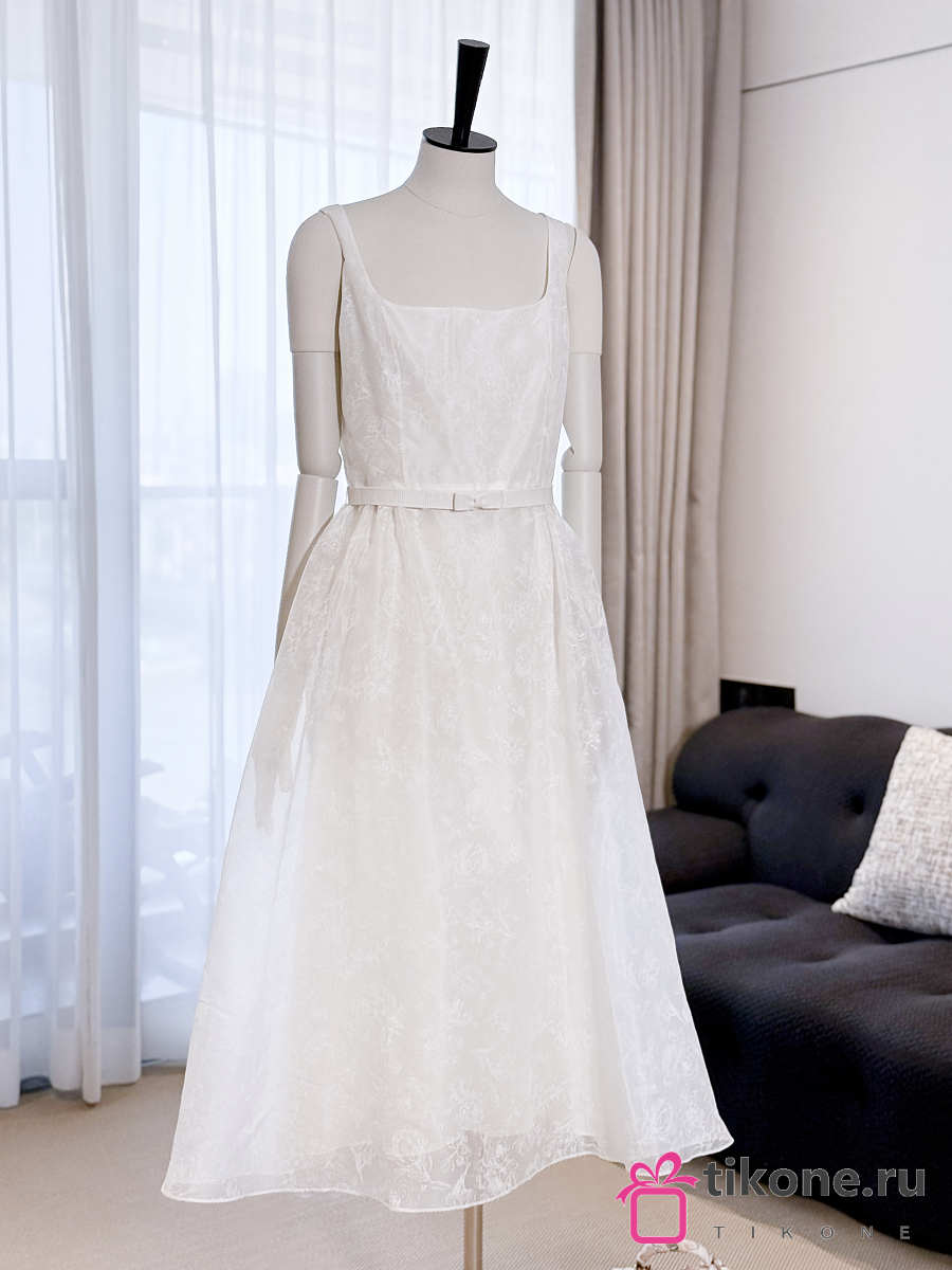 Dior Long Belted Dress Ecru Silk Organza with Millefiori Motif