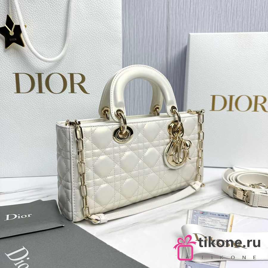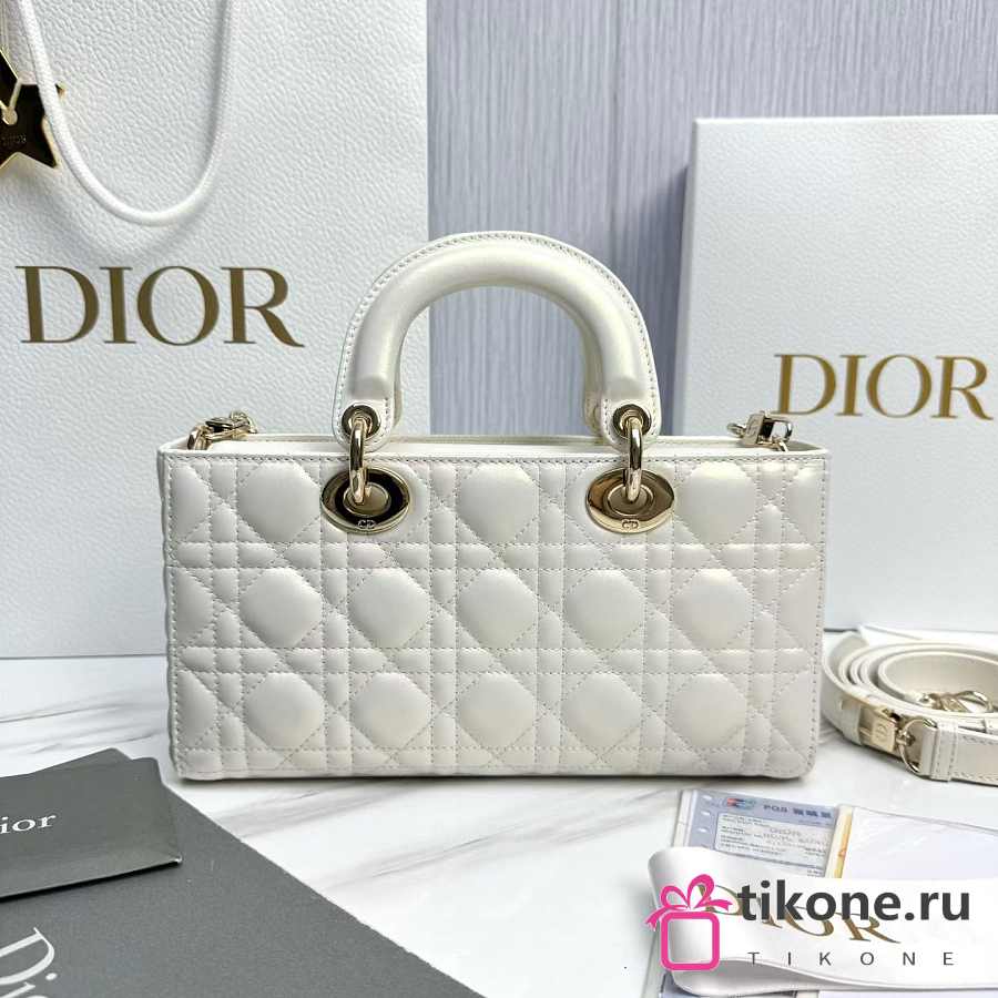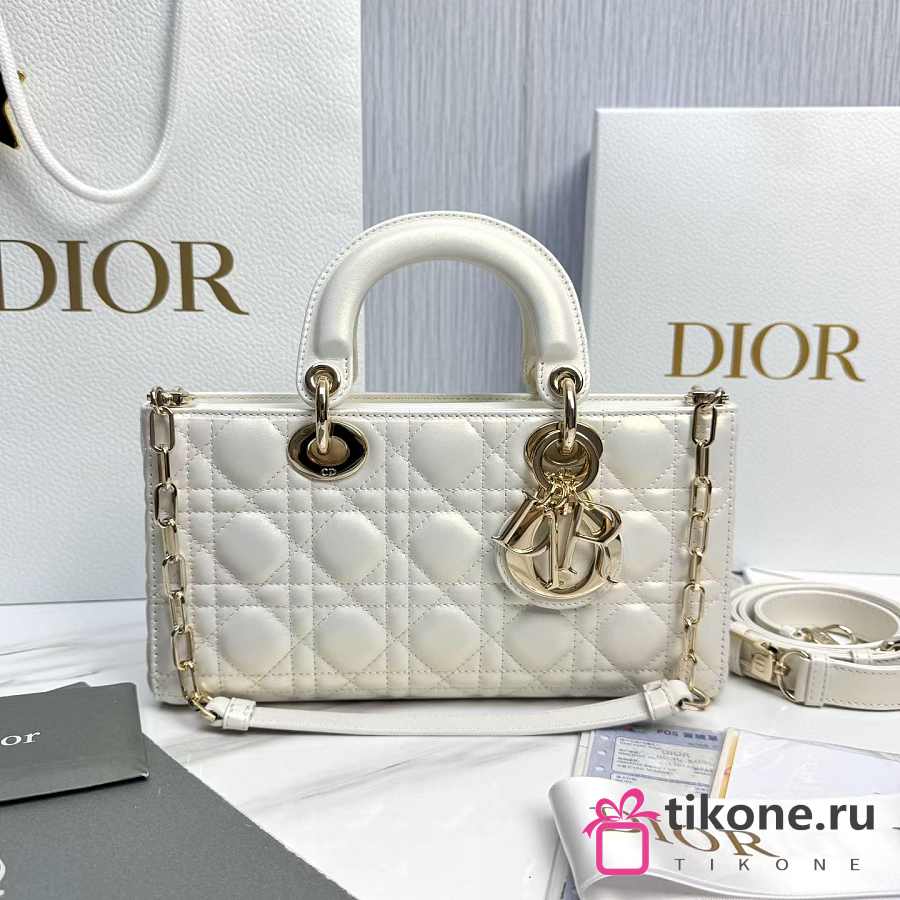 Dior Medium Lady D-Joy Bag White Cannage Lambskin - 26x13.5x5cm