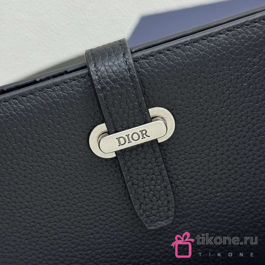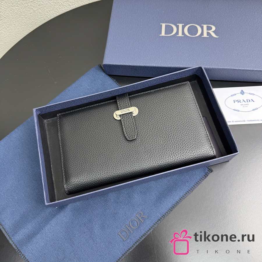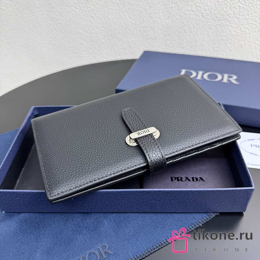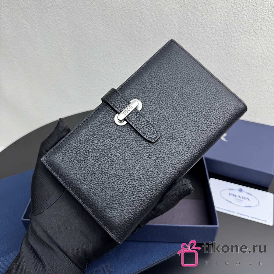 Dior Normandie Long Bifold Wallet Black Grained Calfskin - 18x9x2cm