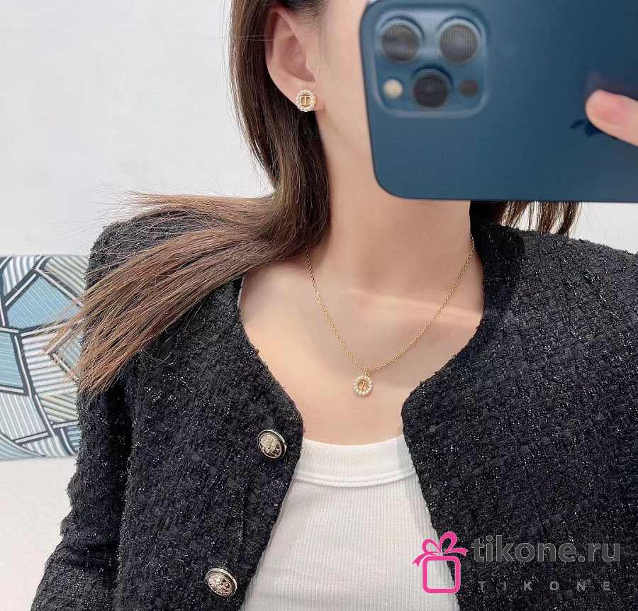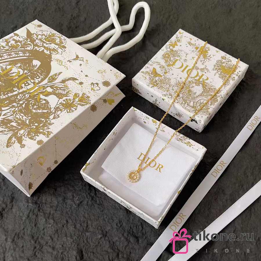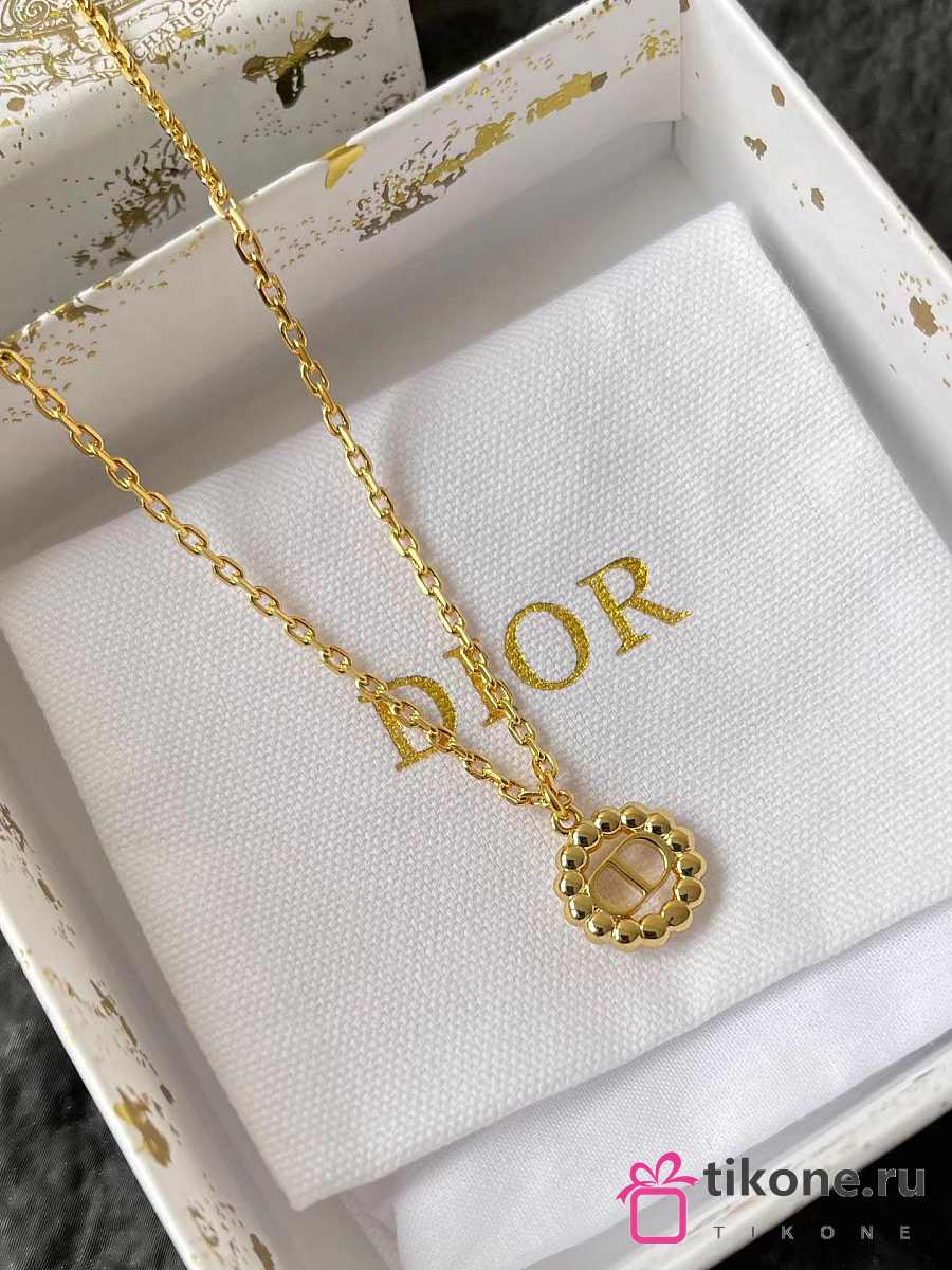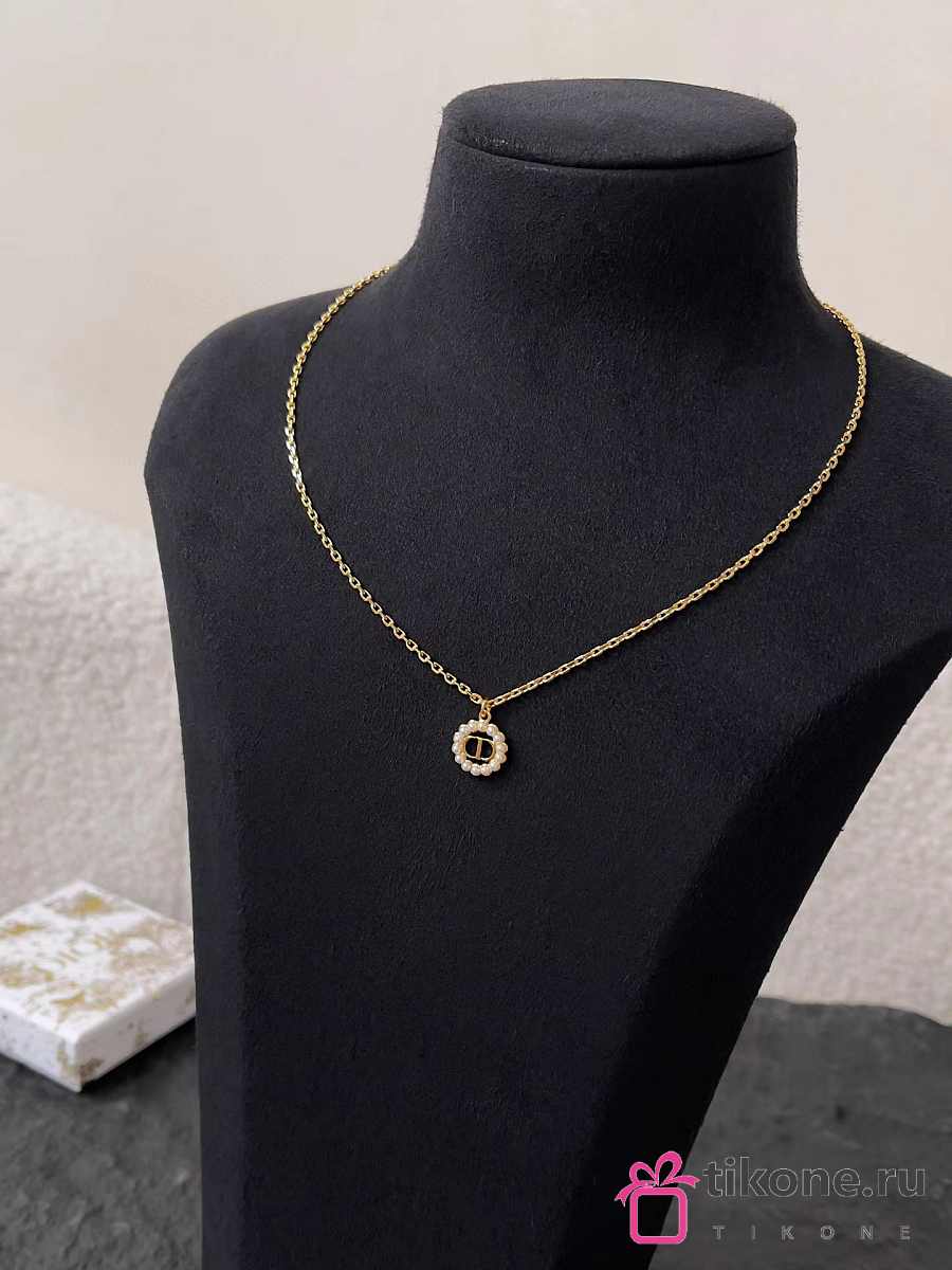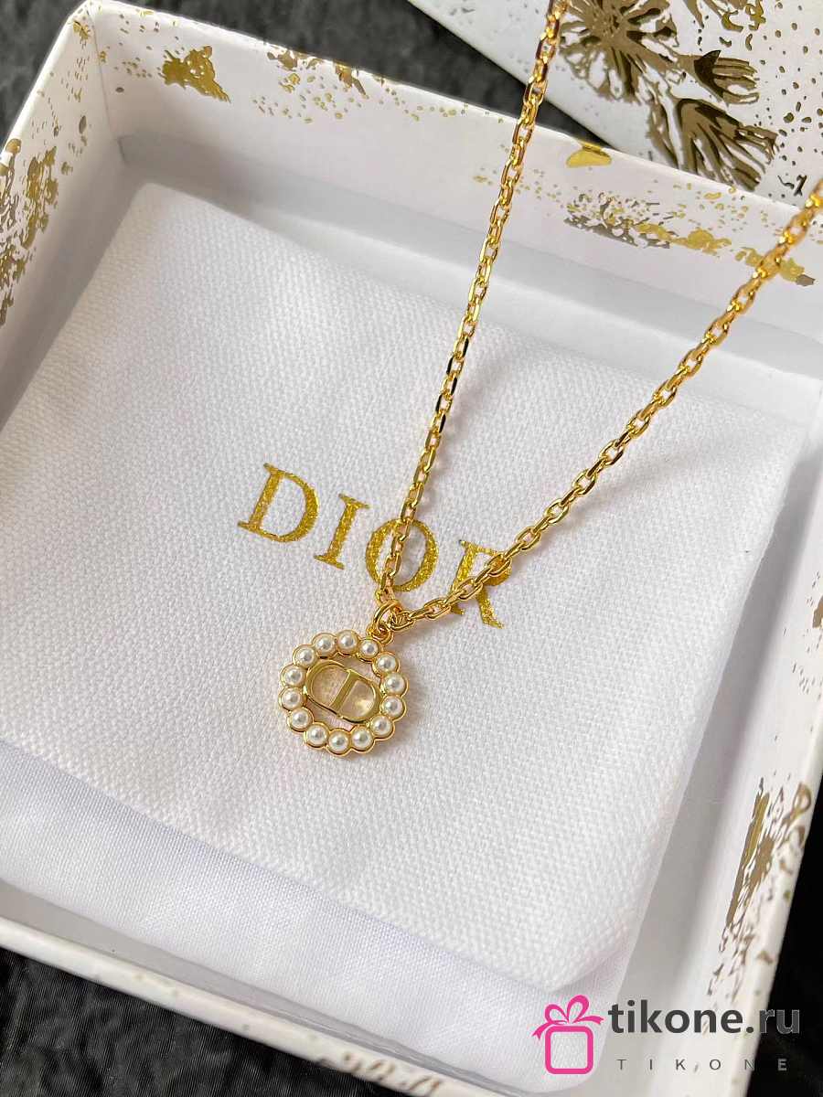 Dior Petit CD Circle Necklace Gold Finish Metal and White Resin Pearls