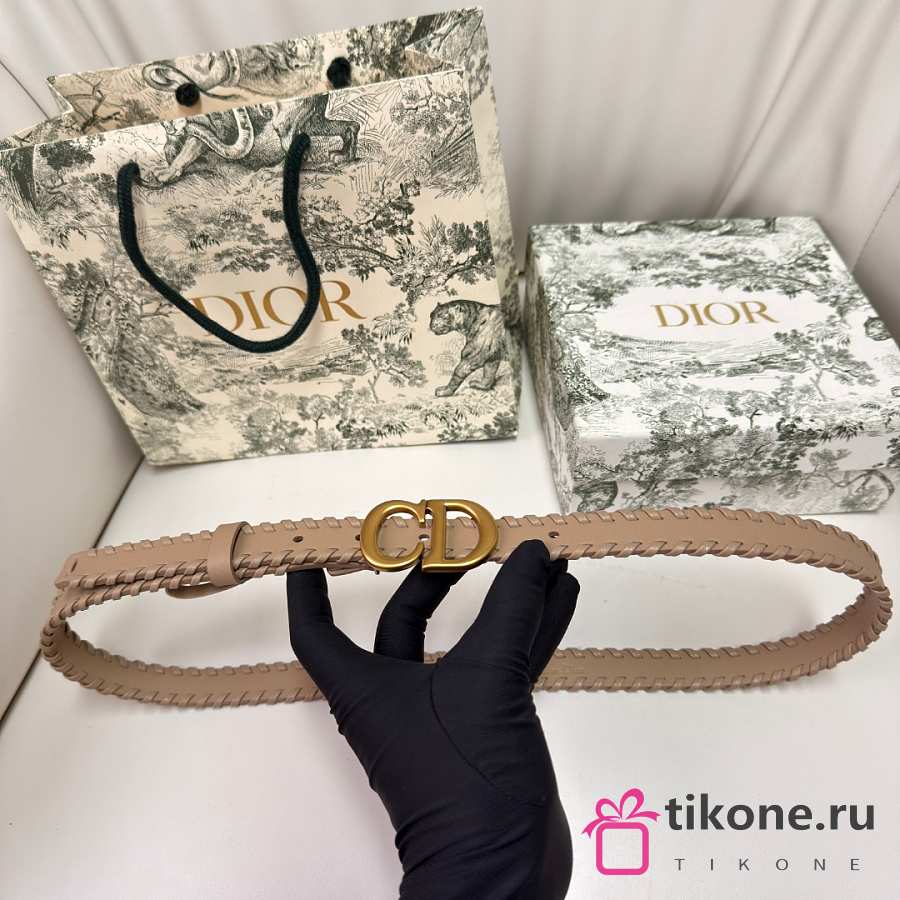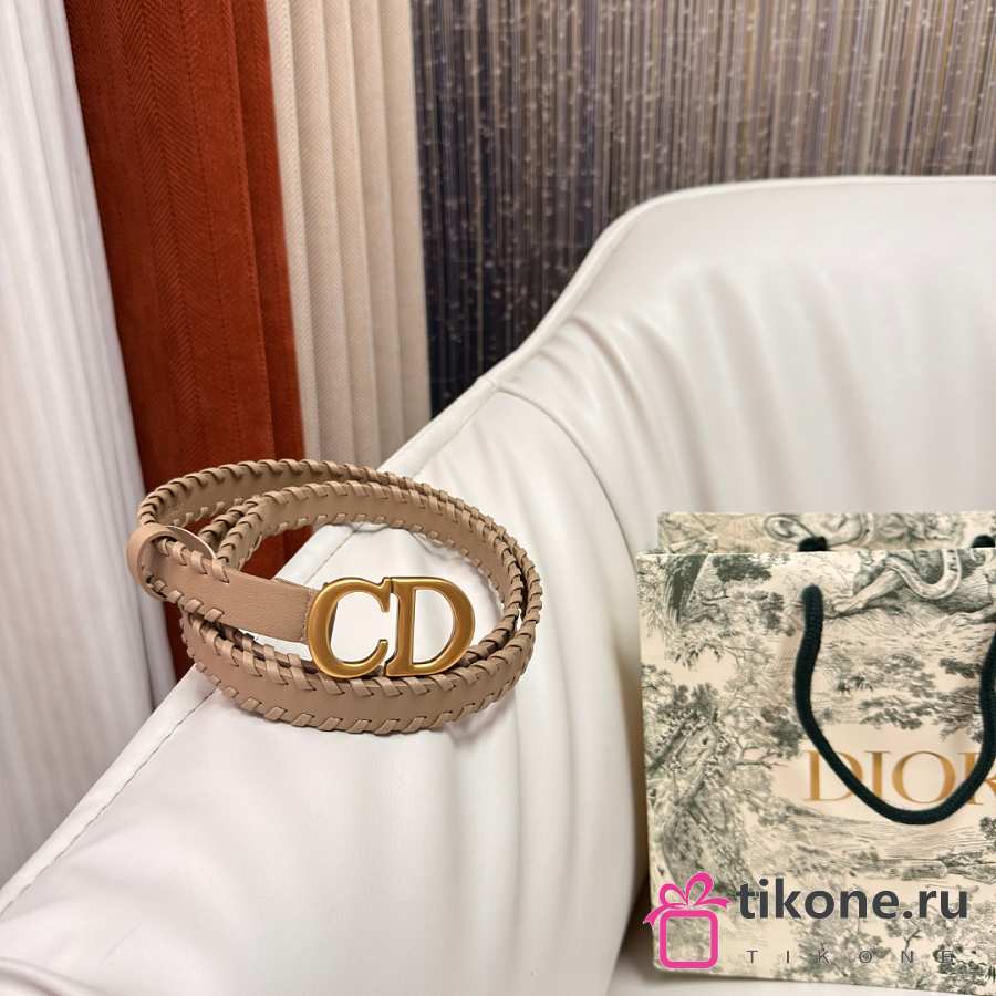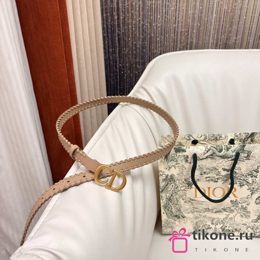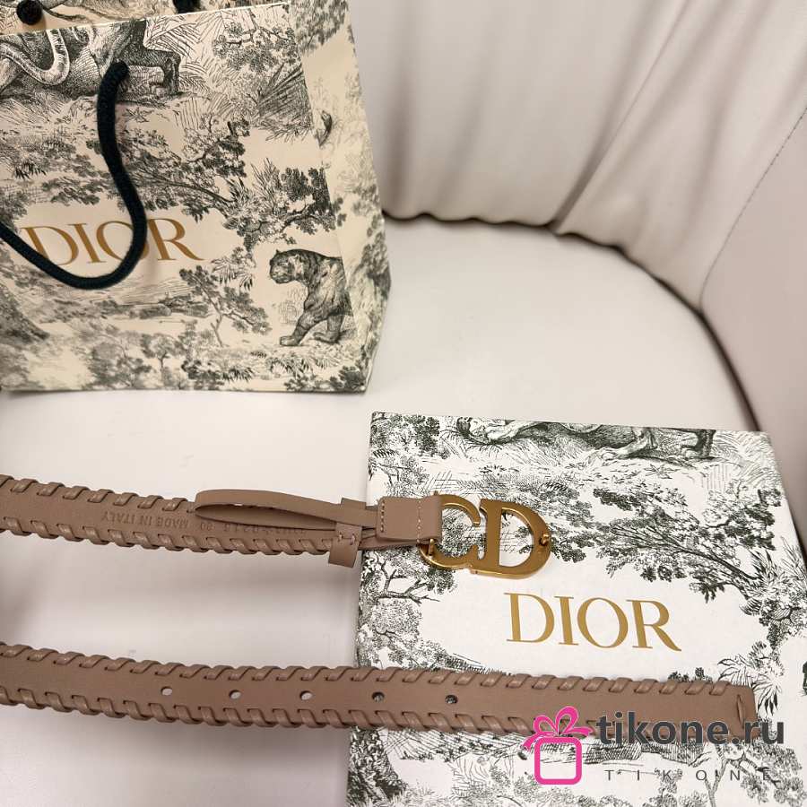 Dior Saddle Belt Beige Smooth Calfskin with Leather Whipstitching 20mm
