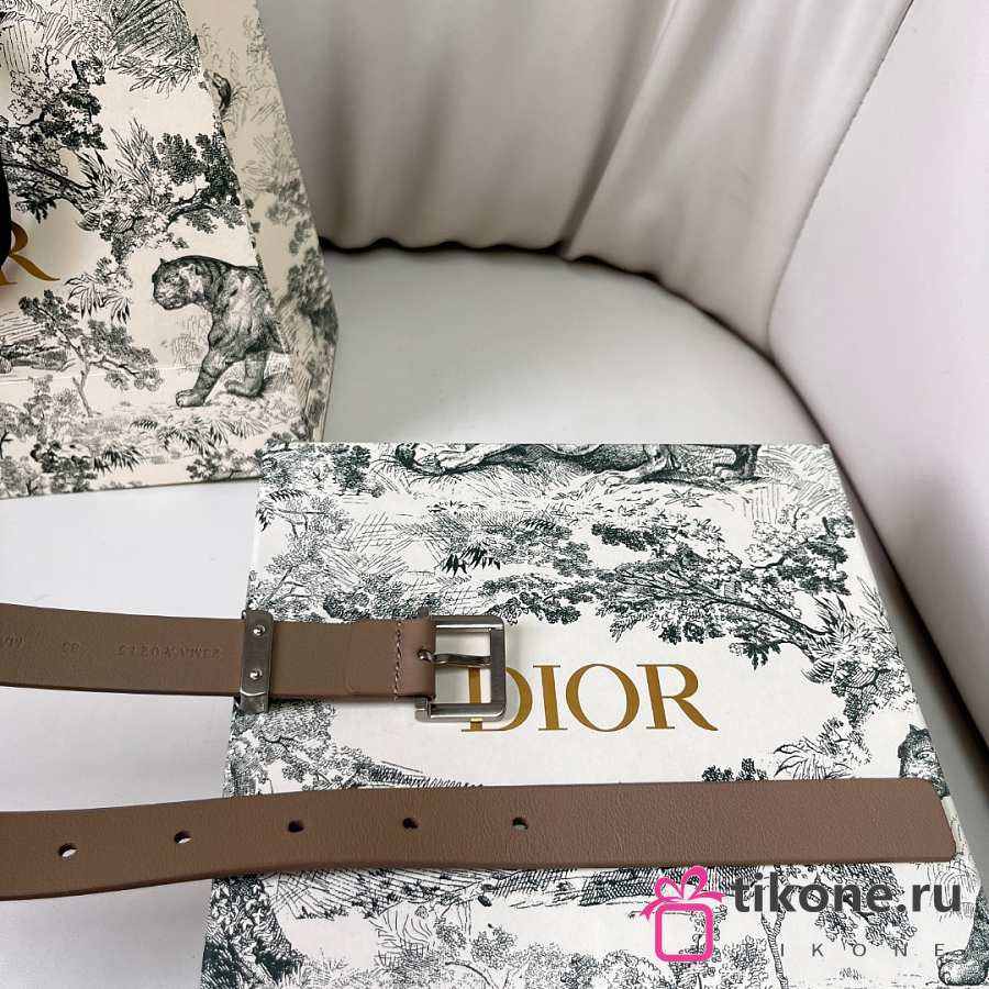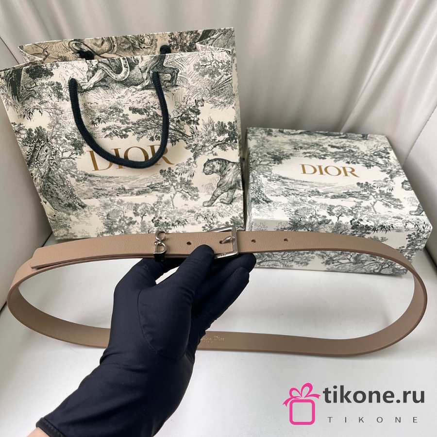 Dior Saddle Loop Belt Beige Smooth Calfskin Silver 20mm