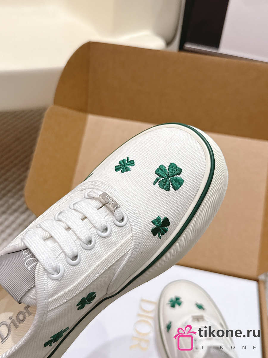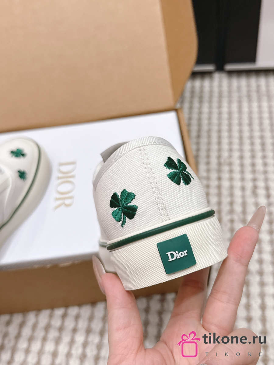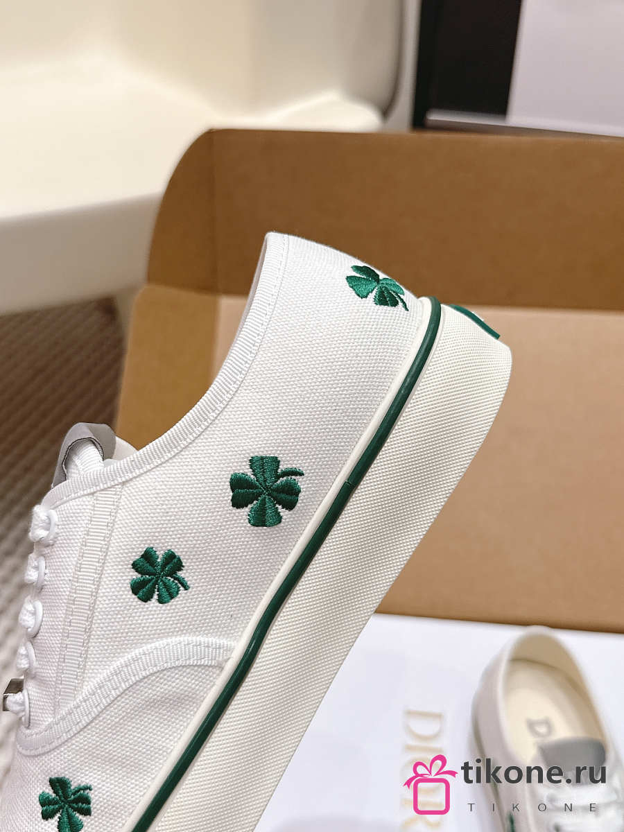 Dior Saltwind Sneaker White Cotton Embroidered with Green Dior Clover Motif