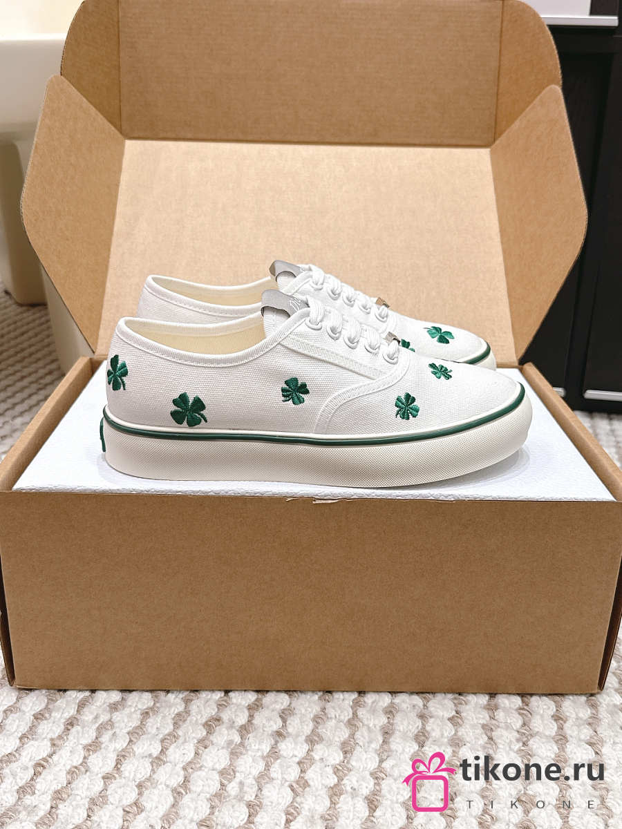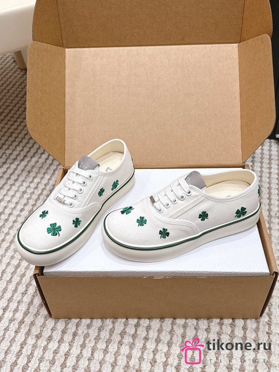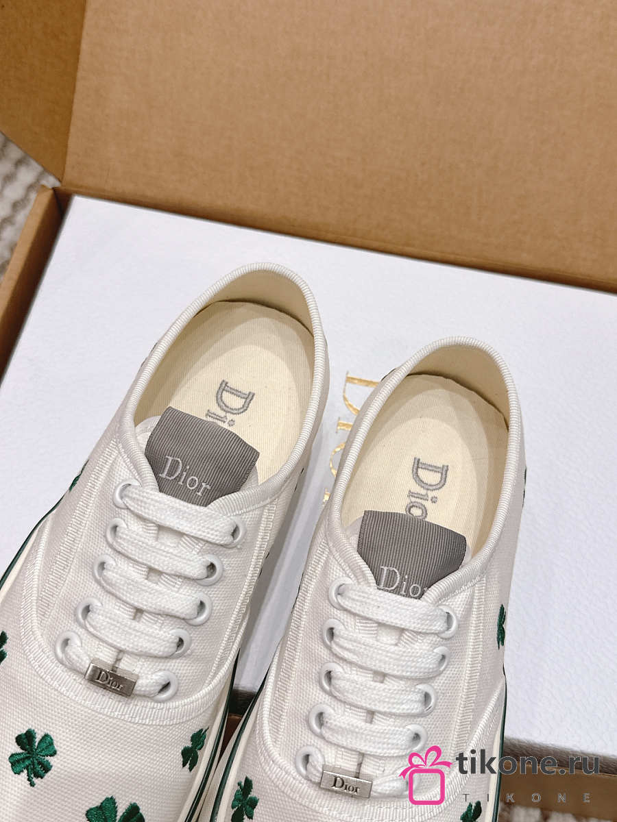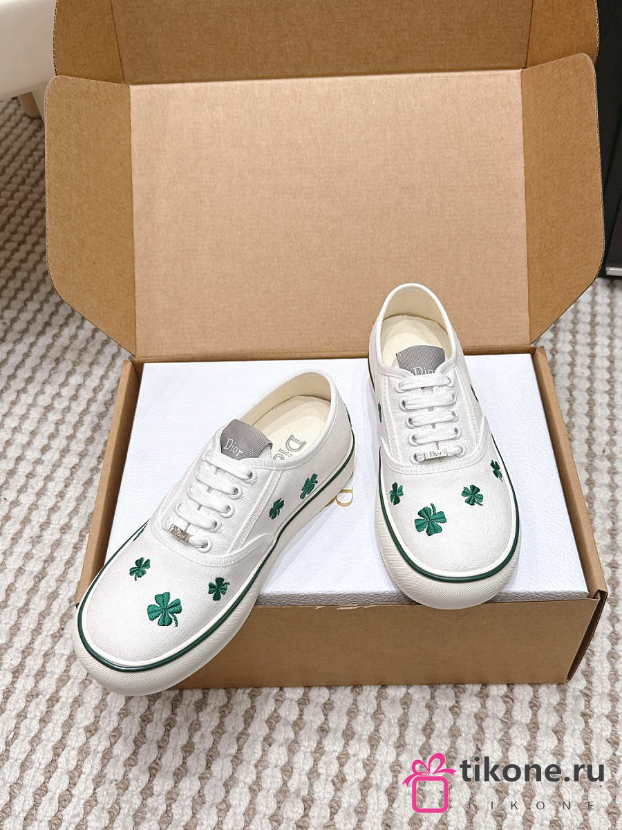 Dior Saltwind Sneaker White Cotton Embroidered with Green Dior Clover Motif