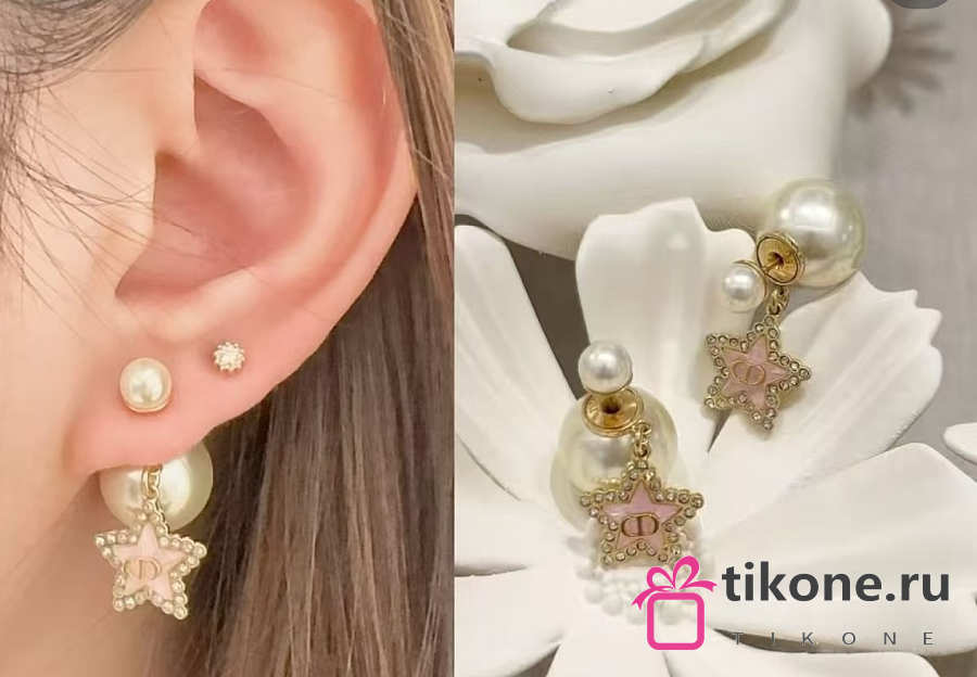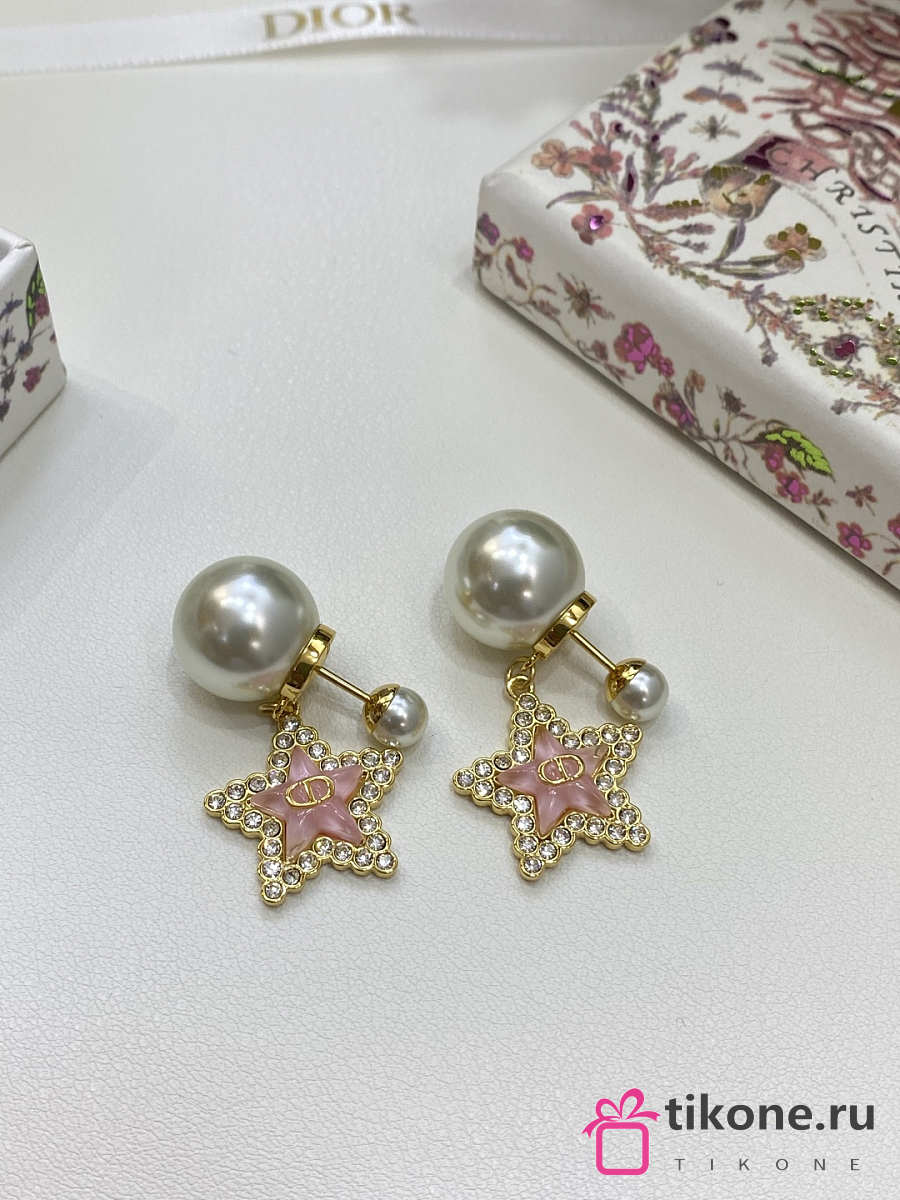 Dior Tribales Earrings Gold Finish Metal White Resin Pearls Silver Tone Crystals and Macaron Pink Glass